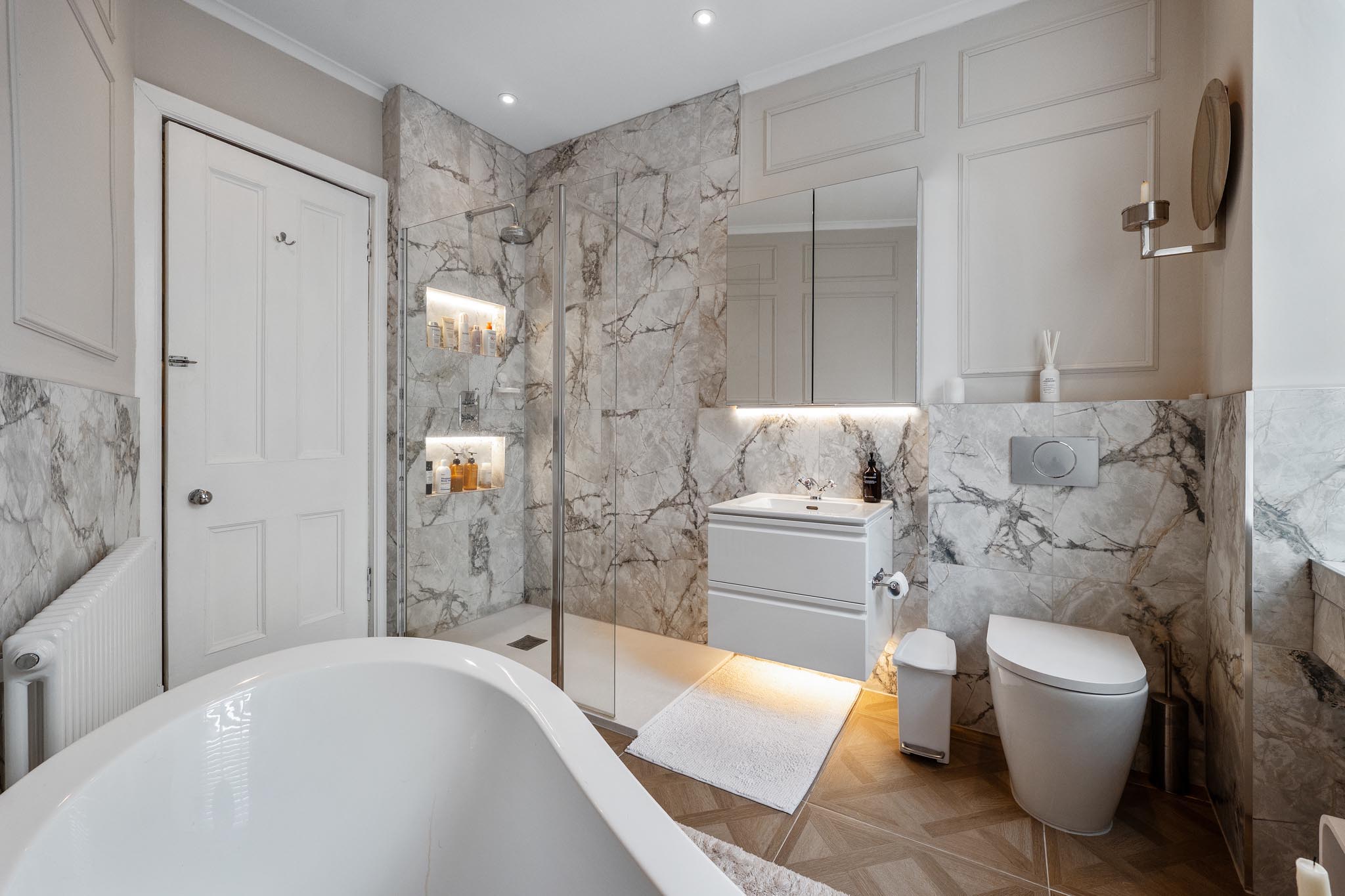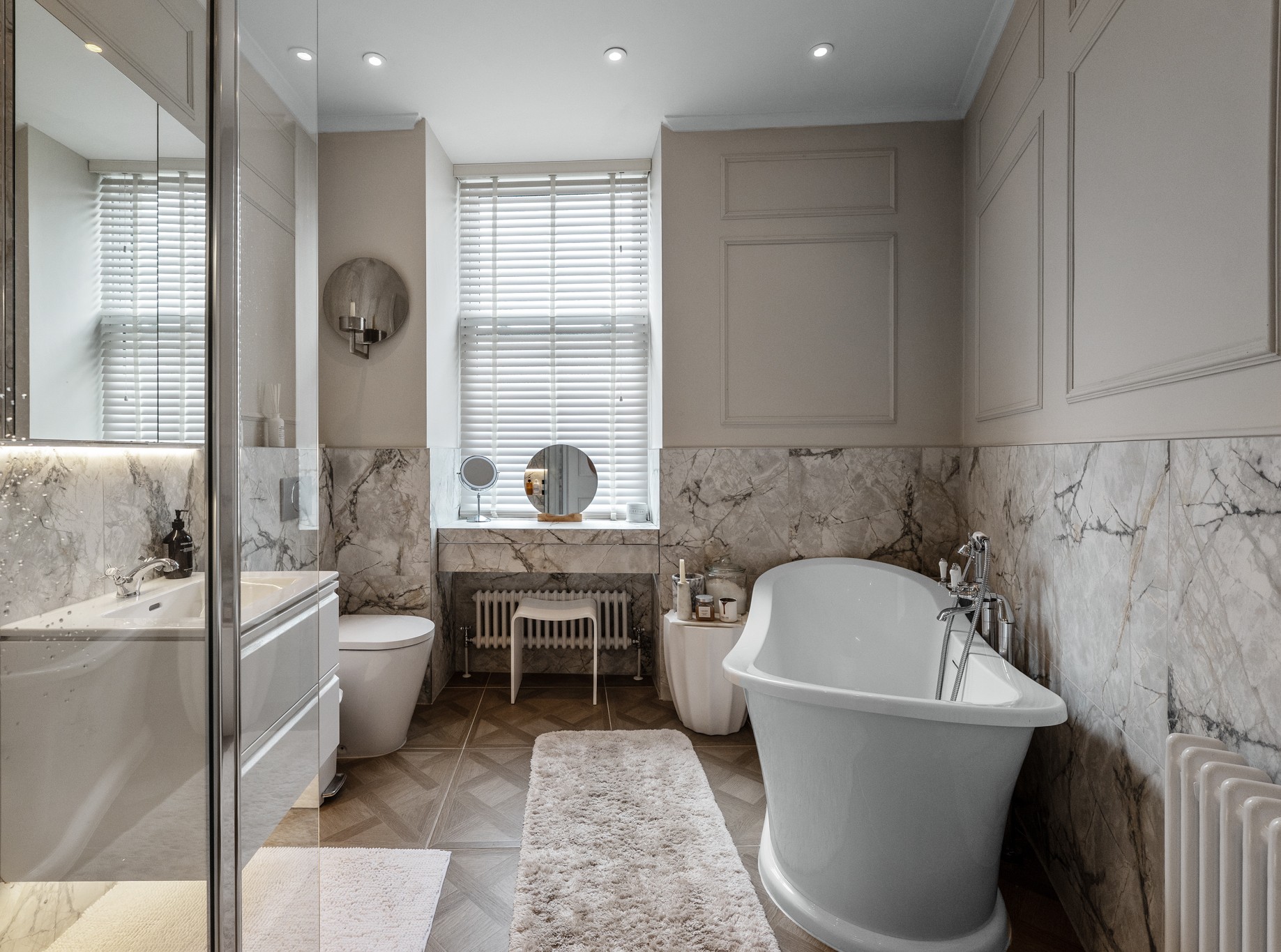 The specification includes Nest controlled gas central heating, double glazed windows, and an abundance of traditional features combined with tasteful decor/flooring. Gated access to the front of the property is controlled by a video entry system whilst an internal door under the staircase gives access into the common close for the building and out to a shared rear garden. To the front of the property is a private garden wrapping around the flat complete with cleverly maintained perimeter hedging designed to aid privacy.
