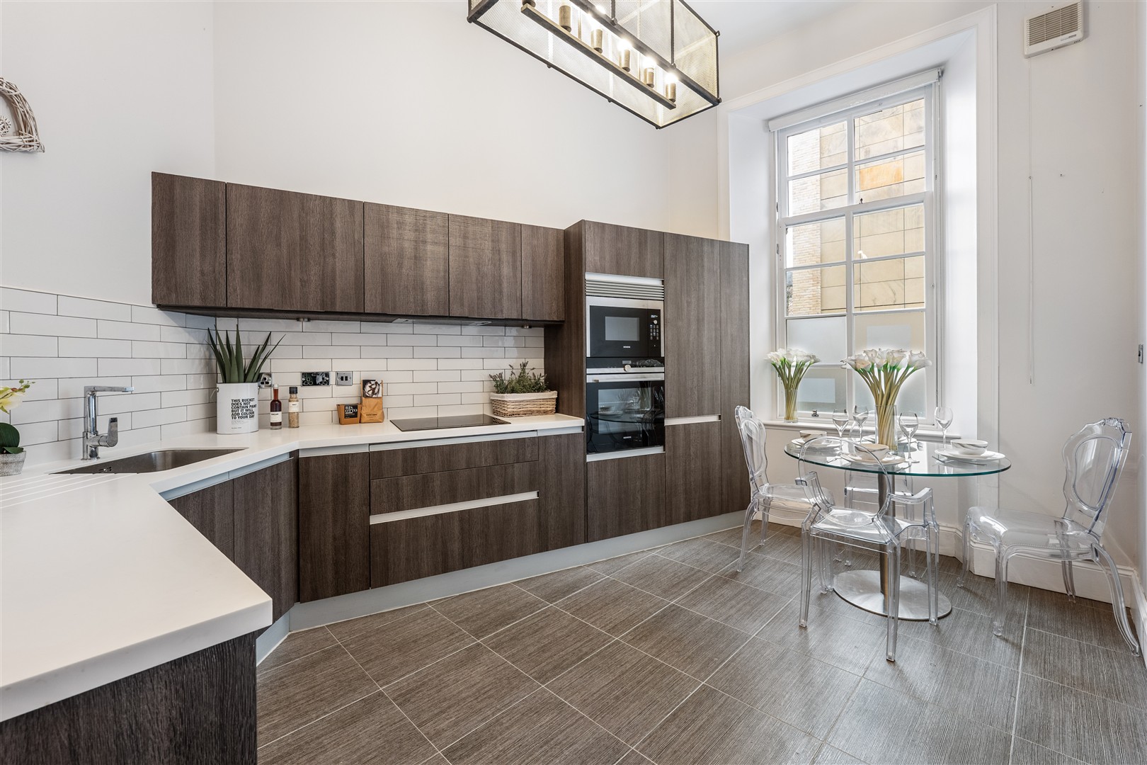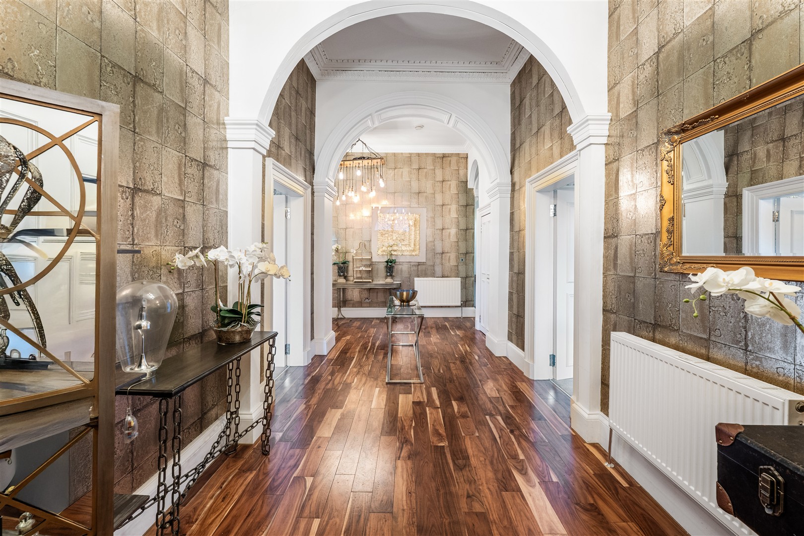 The generous, beautifully refurbished interior extends to over 1700 sq.ft and comprises of an imposing reception hallway with storage off and access to all primary apartments. The elegant formal lounge at the front has double aspects, a feature fireplace, and space for dining, and the modern kitchen to the rear also has space for dining and entertaining. There are three generous sized bedrooms, with the second bedroom benefitting from fitted wardrobes and an en suite shower room, and a large family bathroom completing the accommodation on offer.