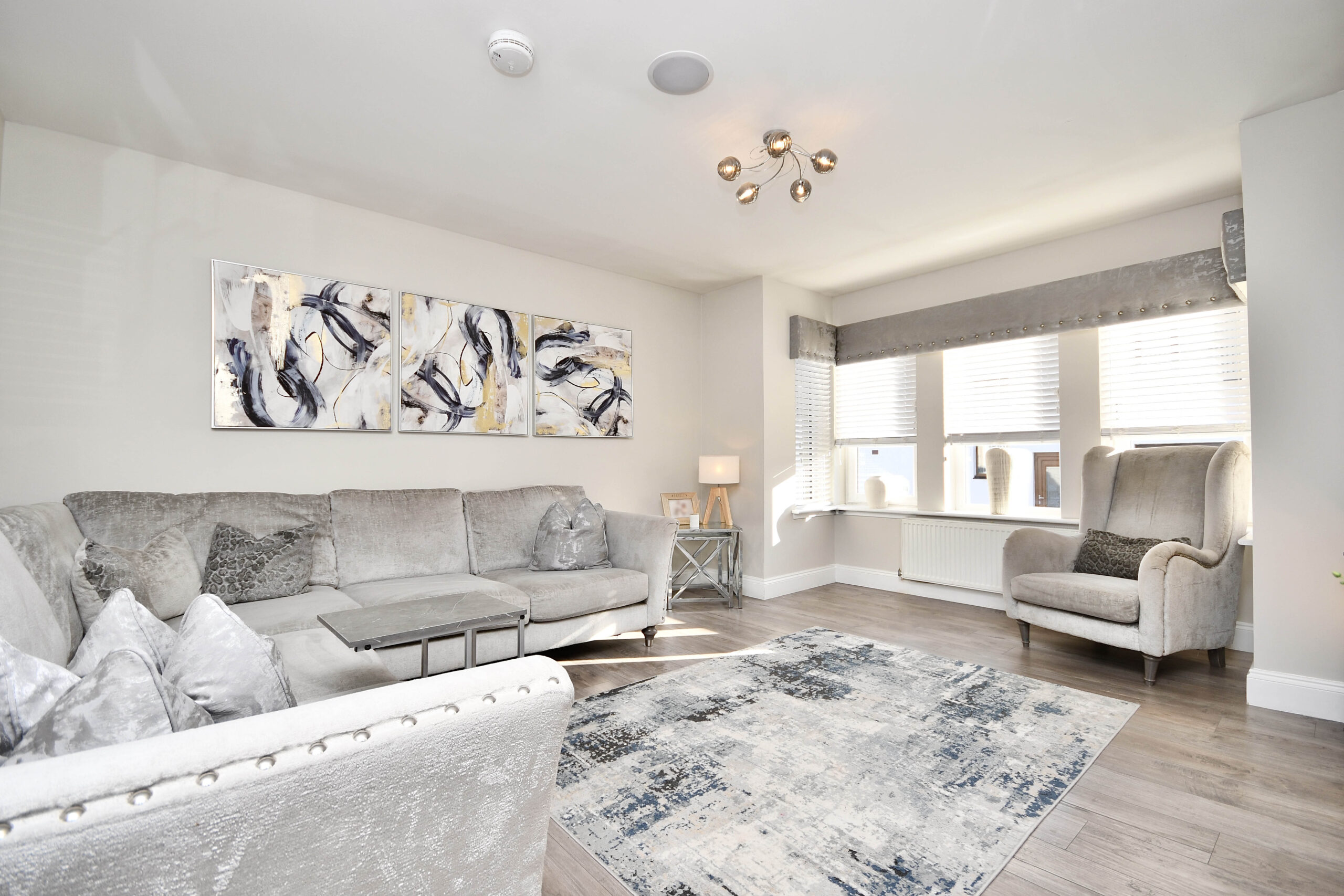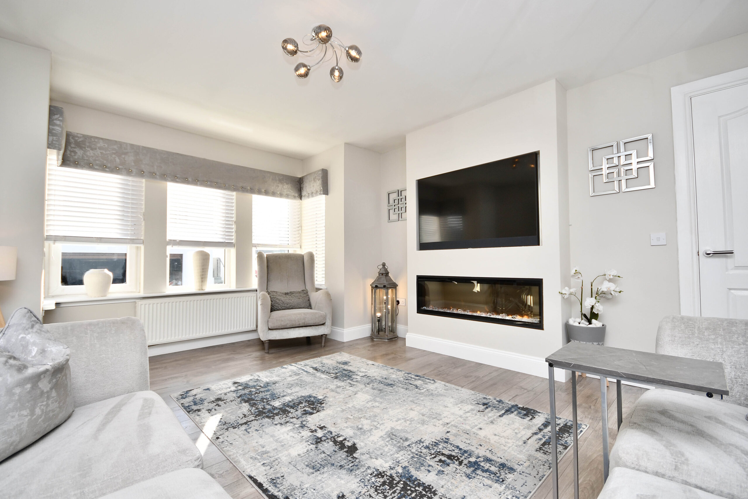 In more details, the internal accommodation extends to an entrance vestibule, a hallway with storage and loft access, a spacious bay-windowed lounge with a media wall and feature electric fireplace, a modern dining kitchen at the rear with French doors out to the garden, a gorgeous family bathroom suite and three large bedrooms, two of which have fitted mirrored wardrobes.