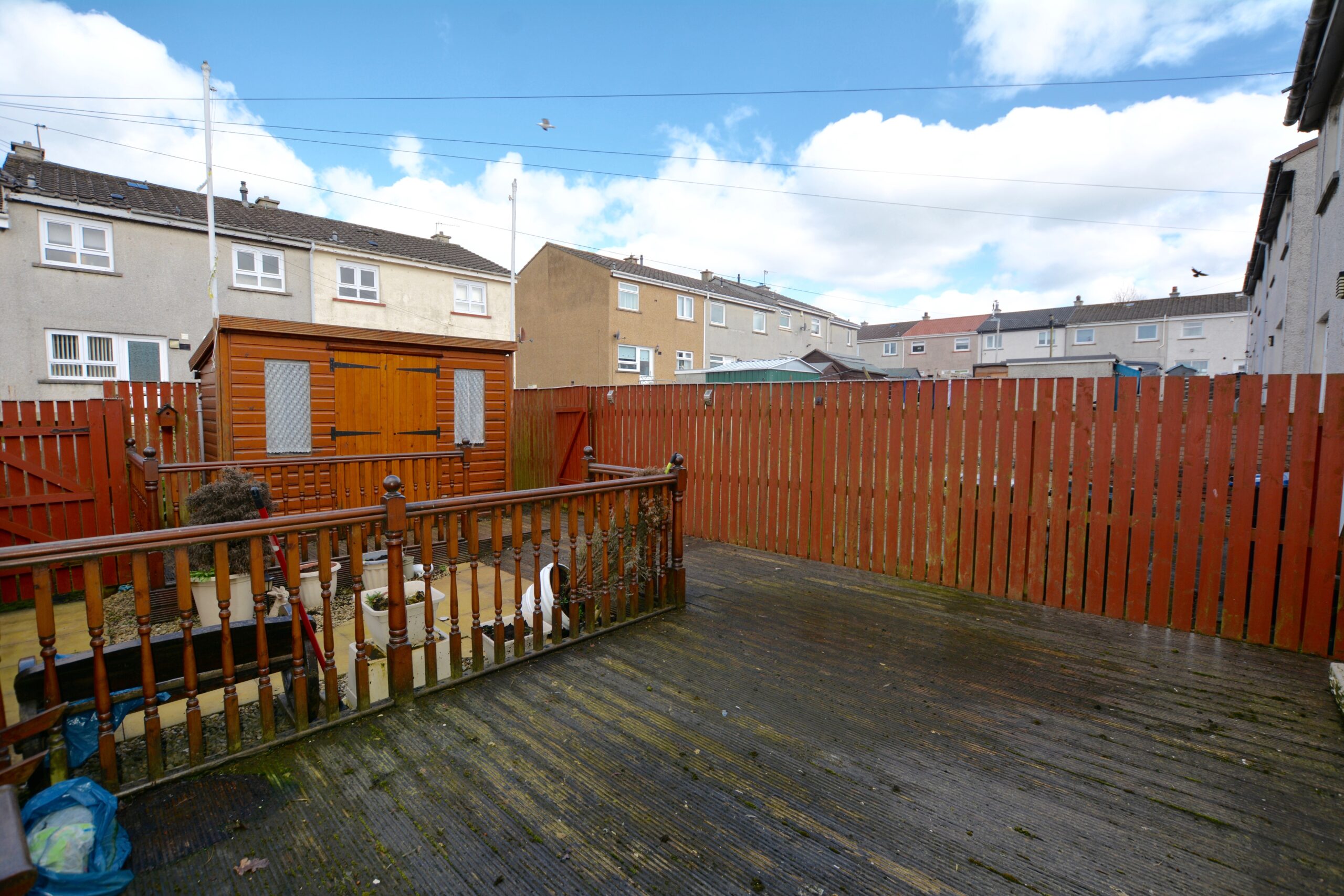 Externally the front garden is block paved providing off street parking for two vehicles. The rear garden is laid to low maintenance with decking, garden shed and gate access to the rear lane for bins etc.