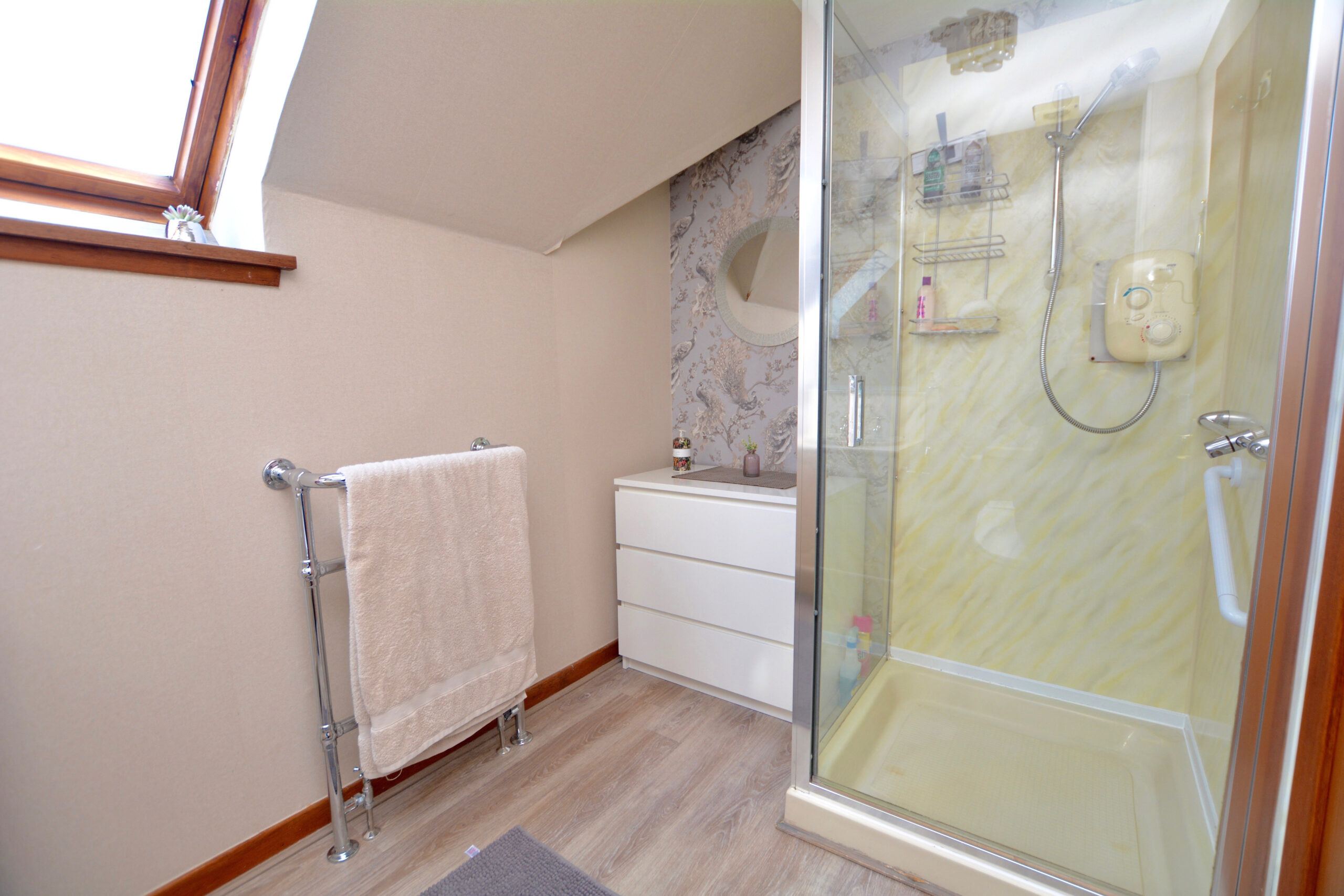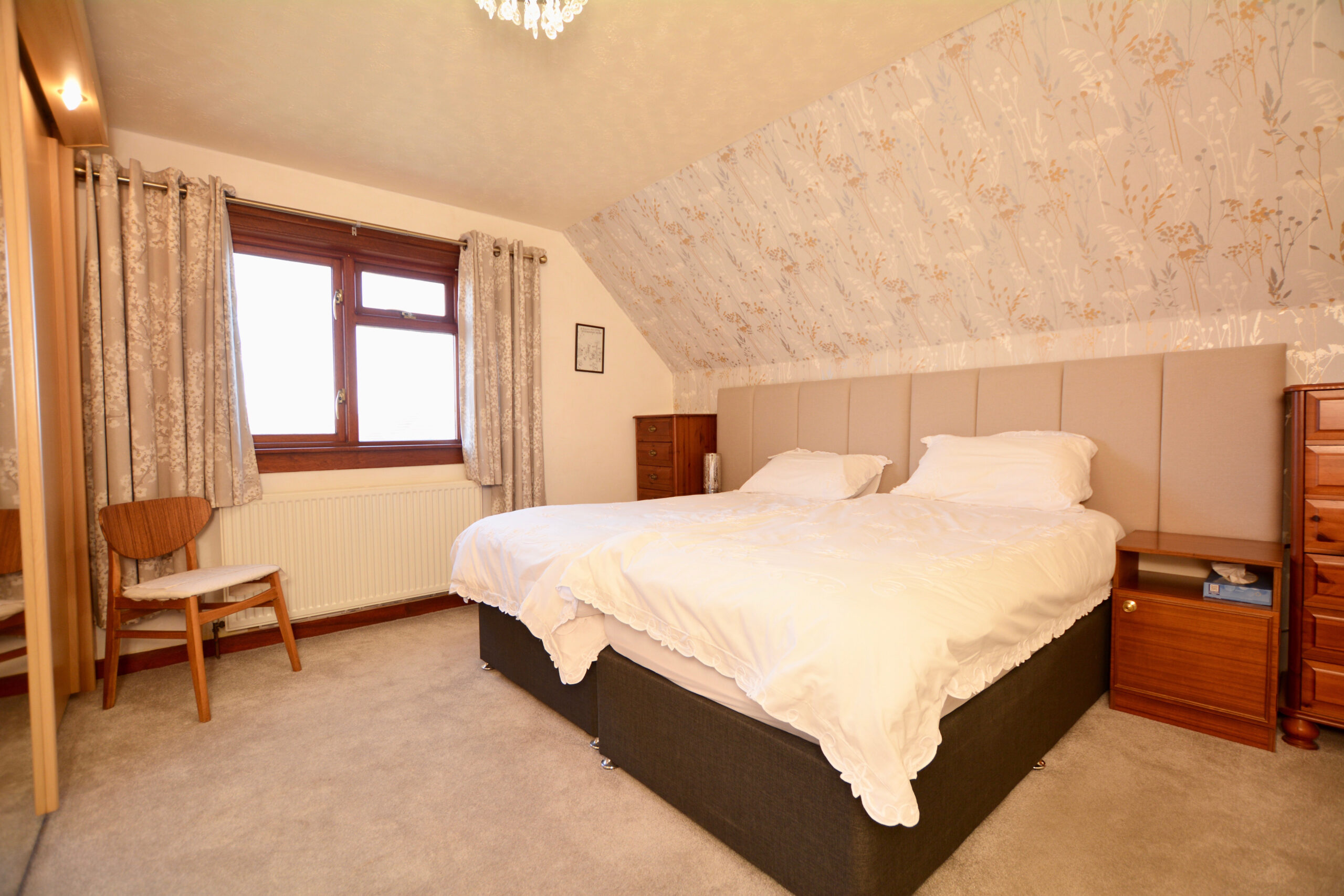 The property provides a flexible, spacious layout with benefits including a modern fitted kitchen, double glazing, gas central heating with a ‘Vokera’ boiler, fresh carpets, neutral decoration, generous storage space including extensive eaves storage, fitted bedroom furniture in the front bedroom and fitted wardrobes/storage in the other three bedrooms and quality sanitary ware.