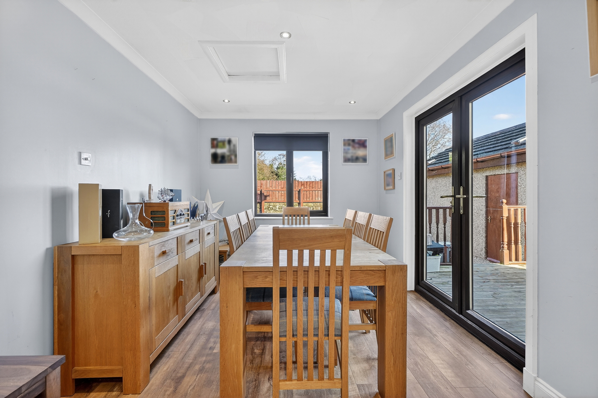 The flexible family accommodation on offer extends to the welcoming reception hallway, downstairs wc, formal lounge with access through to the sitting room, a fantastic family room which is accessed from the modern fitted kitchen. In turn the kitchen is open plan to the dining room with access to the decking and to further complement the lower floor there is the utility. On the upper level there can be found three well proportioned bedrooms and modern family bathroom. The property has gas central heating and double glazing. There are wonderful private garden grounds with feature decking, driveway, and garage. Early viewing is highly recommended to appreciate the accommodation and location on offer.