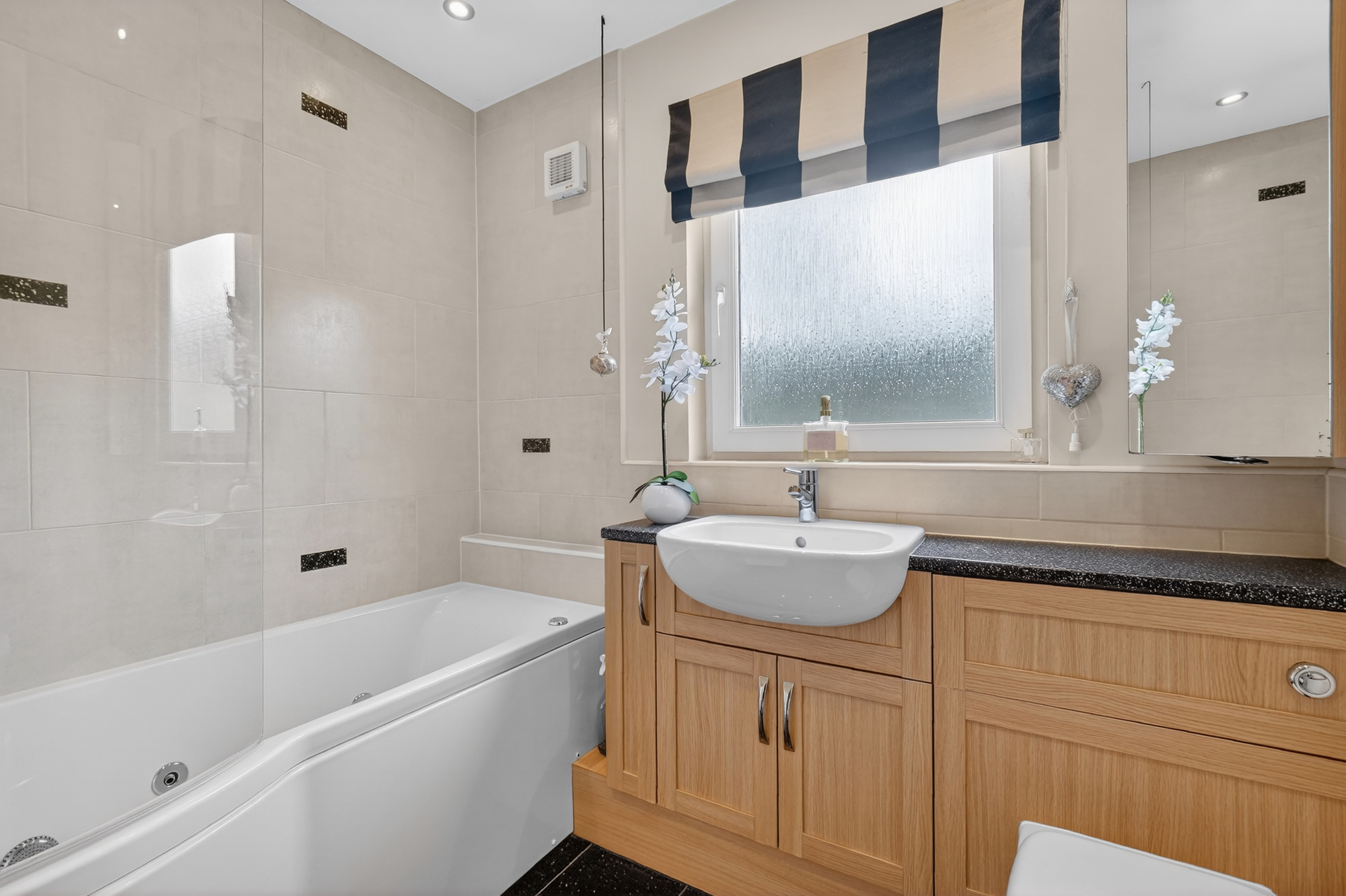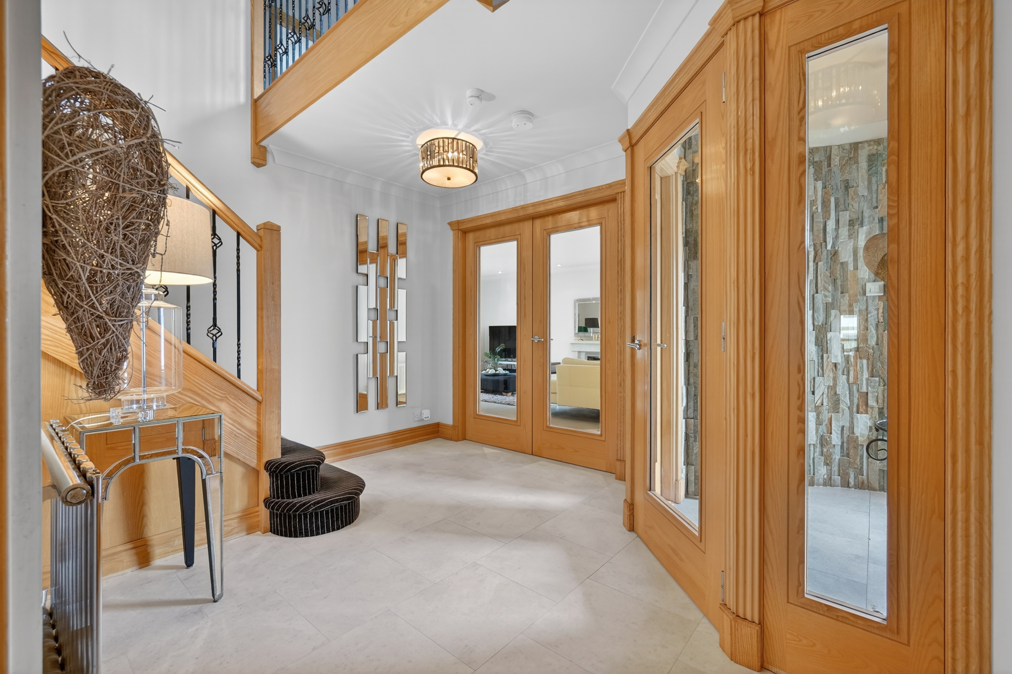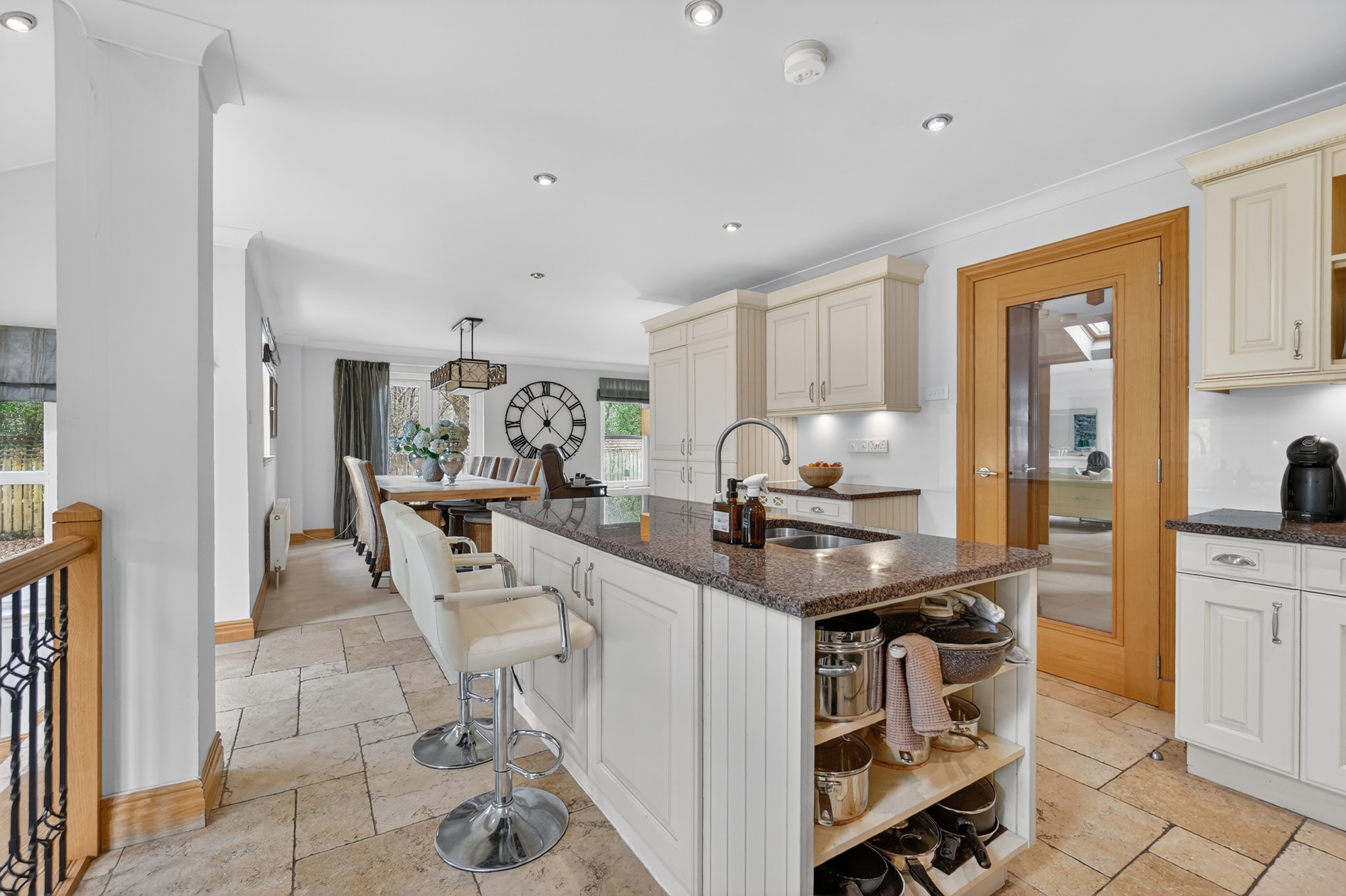 The excellent accommodation on offer extends to a beautiful entrance vestibule which leads through to the bright and welcoming reception hallway, downstairs wc, formal lounge with French door access to the garden grounds, a quite lovely contemporary open plan living space which incorporates the dining kitchen which is the ideal space to cook or enjoy a coffee, family room which is a great space and through to the relaxing breakfast area which has access out to the garden grounds and to complement the dining kitchen there is a modern utility. On the upper level of the home there is well proportioned family accommodation extending to bedroom one with its feature en-suite & walk in wardrobe, guest bedroom/bedroom two with a private en-suite, three further double bedrooms and modern family bathroom. The property has gas central heating and double glazing. There are good sized and easily maintained private garden grounds with a feature decked area. To the front of the home there is driveway which leads to double garage. Early viewing is highly recommended to appreciate the accommodation and location on offer.