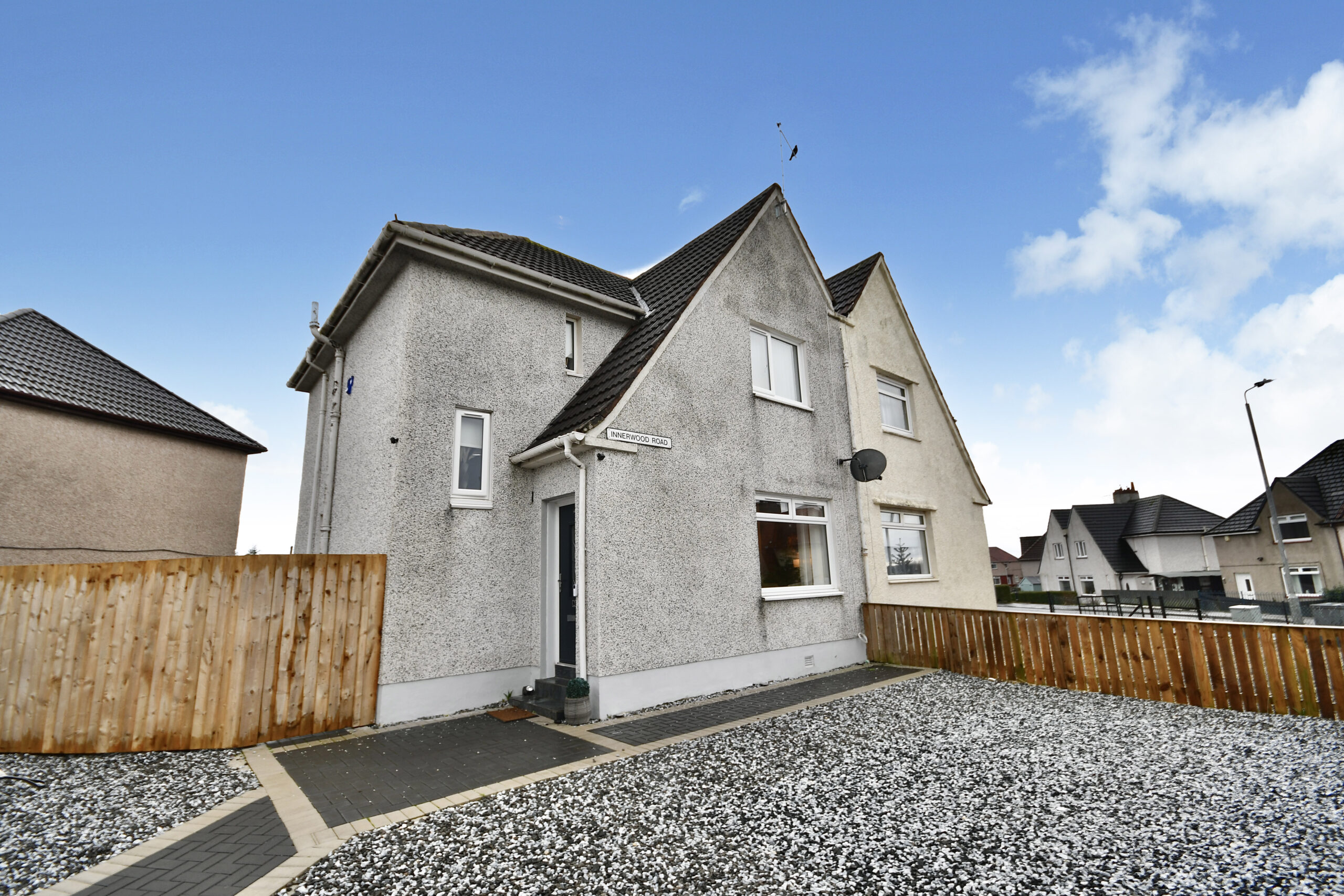 Innerwood Road is well-located within the town of Kilwinning, set just off the A737 and linking directly to Glasgow Airport and the city centre, and within walking distance of the train station, local schools and shops. Number 2 is a truly spacious and thoroughly modern semi detached family home that has luxury fixtures and fittings and a wealth of living space that will suit a range of buyers. The interior is complemented by landscaped garden grounds that extend across this preferred corner plot, with ample off road parking and secure rear gardens that are laid with low maintenance in mind.