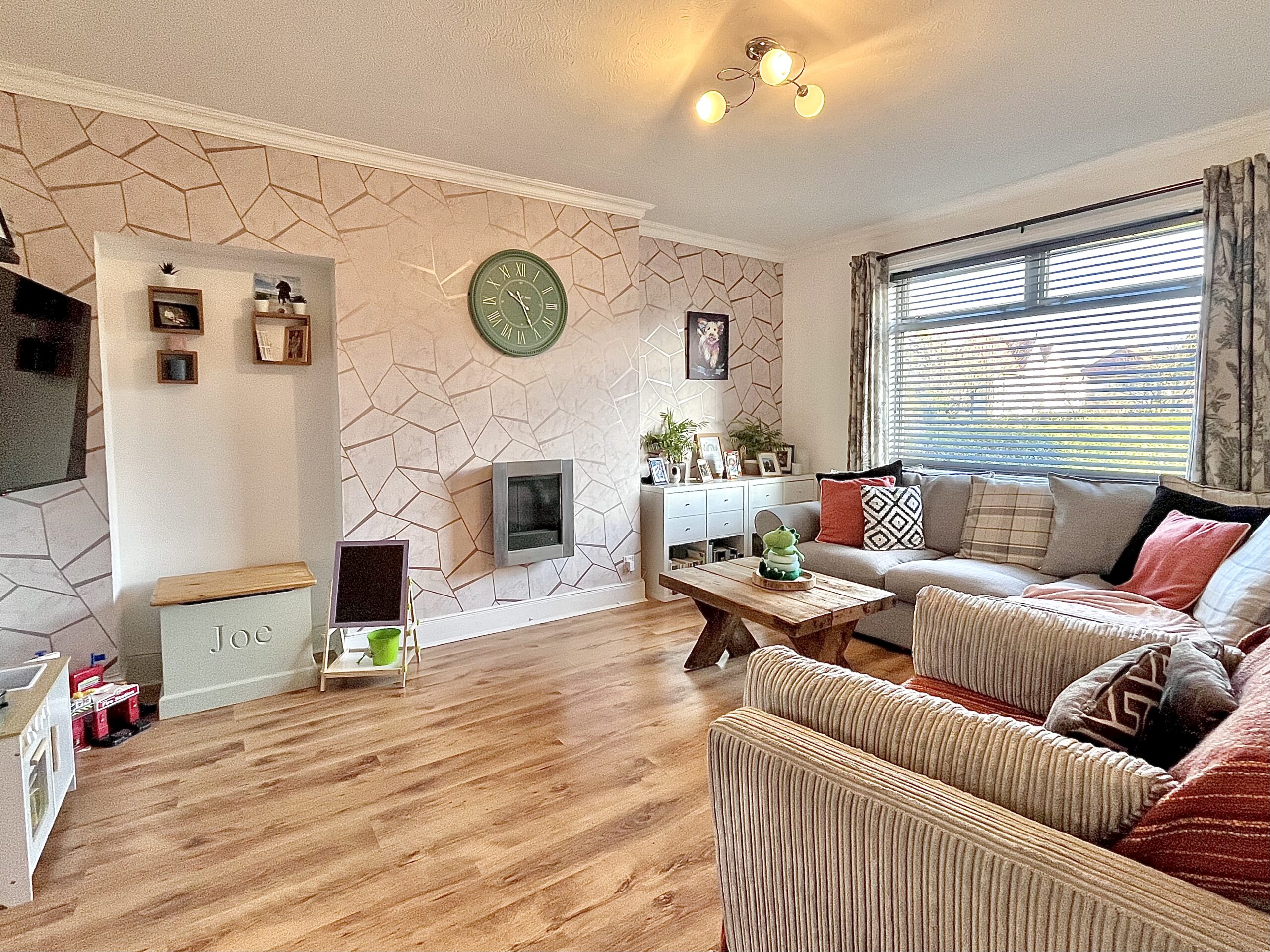 A welcoming reception hall with useful storage cupboard sets the tone for the immaculate presentation found throughout. The formal lounge offers a bright and relaxing space to unwind, enhanced by generous proportions and an inviting atmosphere. To the rear, the modern kitchen diner has been thoughtfully designed to combine style and practicality, providing ample space for everyday dining. A rear door leads directly out to the garden, creating a natural flow between indoor and outdoor living.
