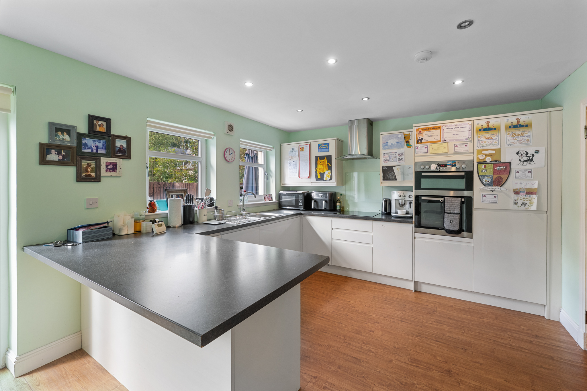 Accessed most often from the rear, the accommodation extends to an impressive and flexible layout as shown on the attached floorplan. The ground floor opens with a welcoming split level hallway, leading into a generously proportioned lounge, a bright space with a dual aspect and large front-facing window. At the rear, the kitchen and adjoining dining area combine practicality with modern family living, complemented by a utility room. A further play room/bedroom offers superb flexibility, while an additional study/fifth bedroom and a contemporary bathroom complete the lower level.