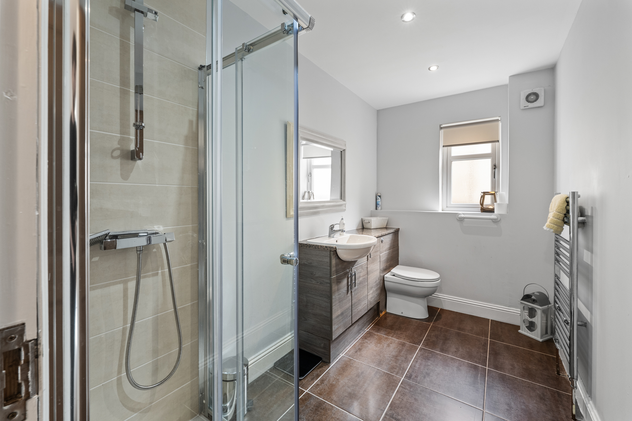 Upstairs, the accommodation continues to impress with four sizeable bedrooms, all boasting fitted storage, with two also benefitting from en-suite shower rooms. There is also a stylishly appointed family bathroom. Each room is well proportioned, with ample natural light and an adaptable layout to suit a variety of family requirements.