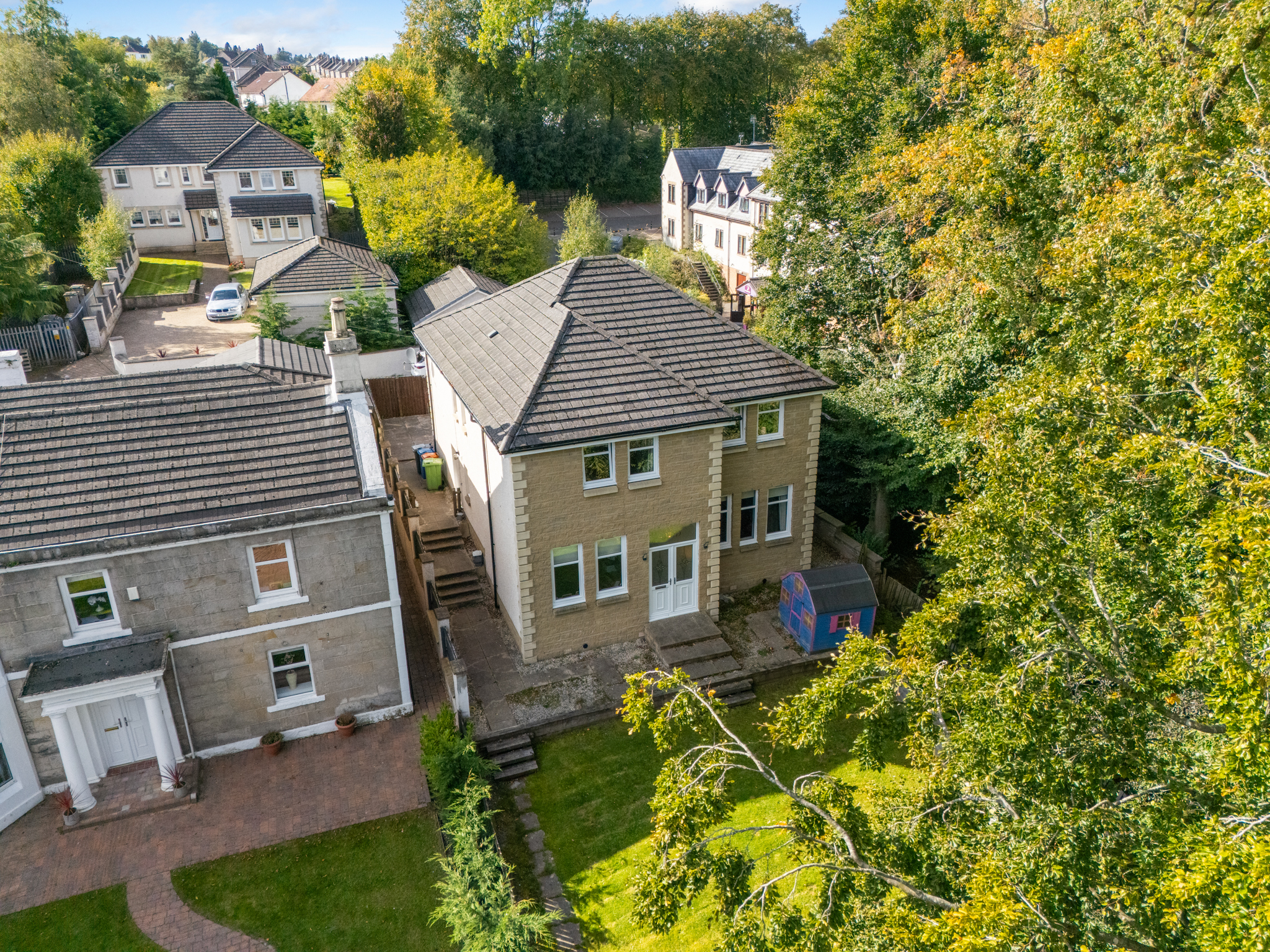 The surrounding gardens are well presented and offer a high degree of privacy. The rear garden is fully enclosed, private, and ideal for children or pets, while the front garden offers a level, secluded space laid mainly to lawn. There is pedestrian access from the front garden down to Milngavie Road.