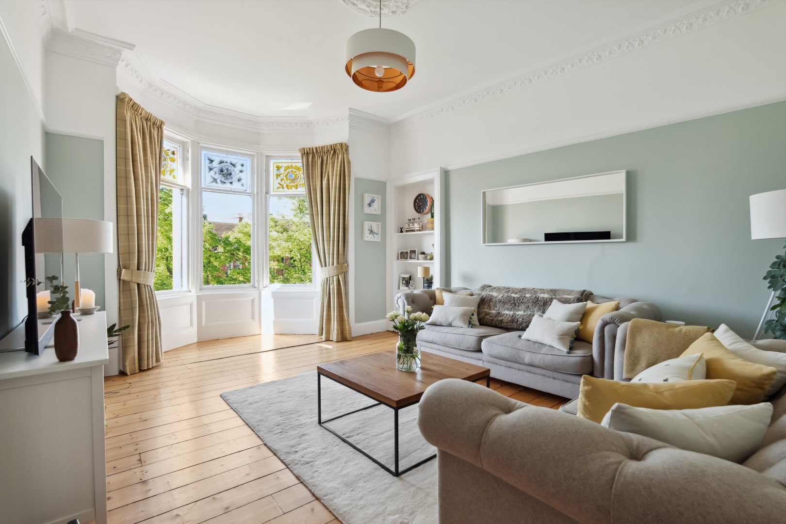 3/2 6 Caird Drive is a beautifully presented, two-bedroom top floor flat set within a recently refurbished traditional tenement. The work, completed in 2025, included a full roof replacement, new cast iron guttering, stonework repointing and re-decoration of the communal areas. This bright and welcoming home has been carefully maintained by the current owners and offers a lovely blend of period features and modern comfort.