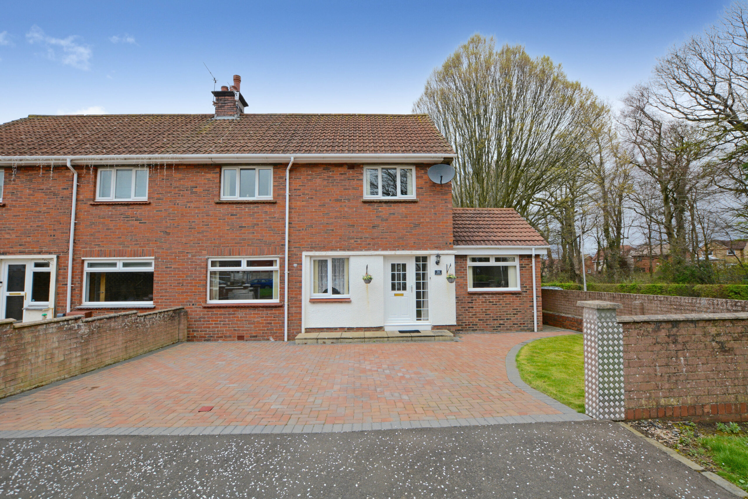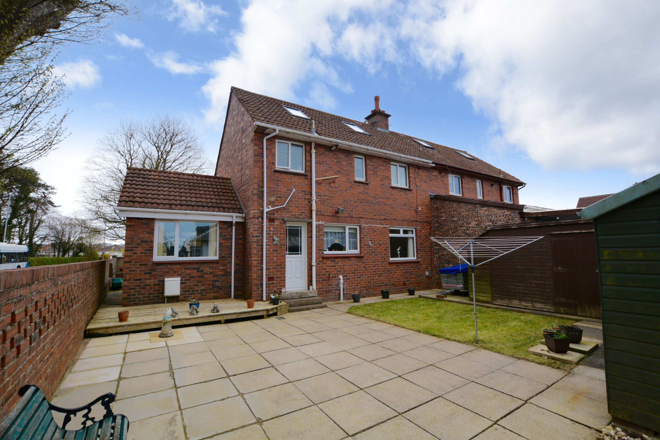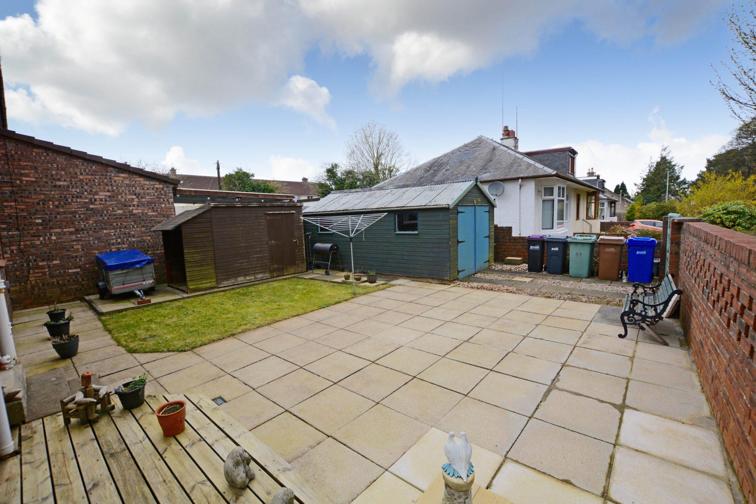 Externally the front garden is laid to lawn with block paved driveway parking providing off street parking for several vehicles. The enclosed rear garden also has an area laid to lawn with decked patio area and detached timber garage with gated entry from Dalmellington Road.