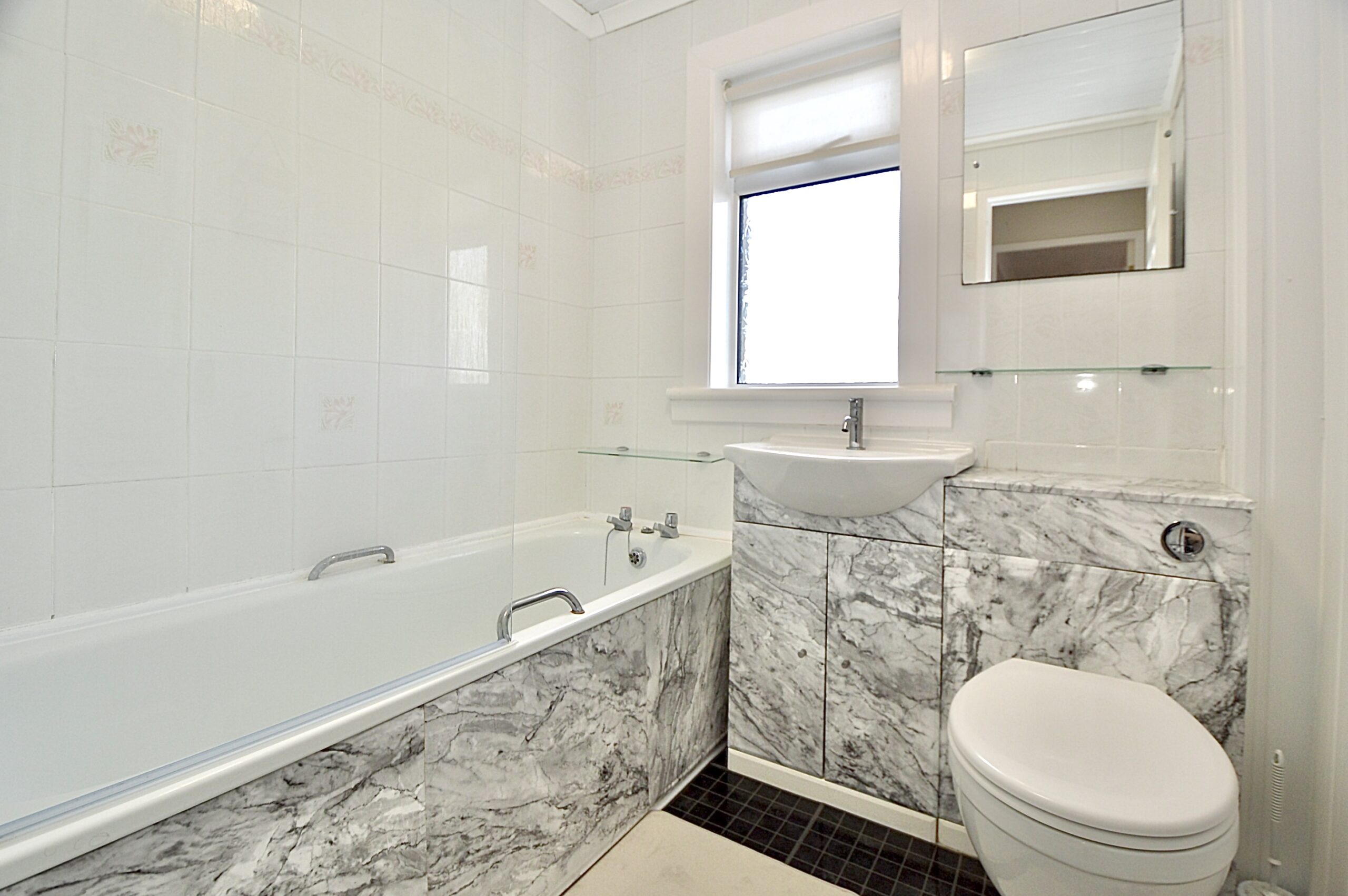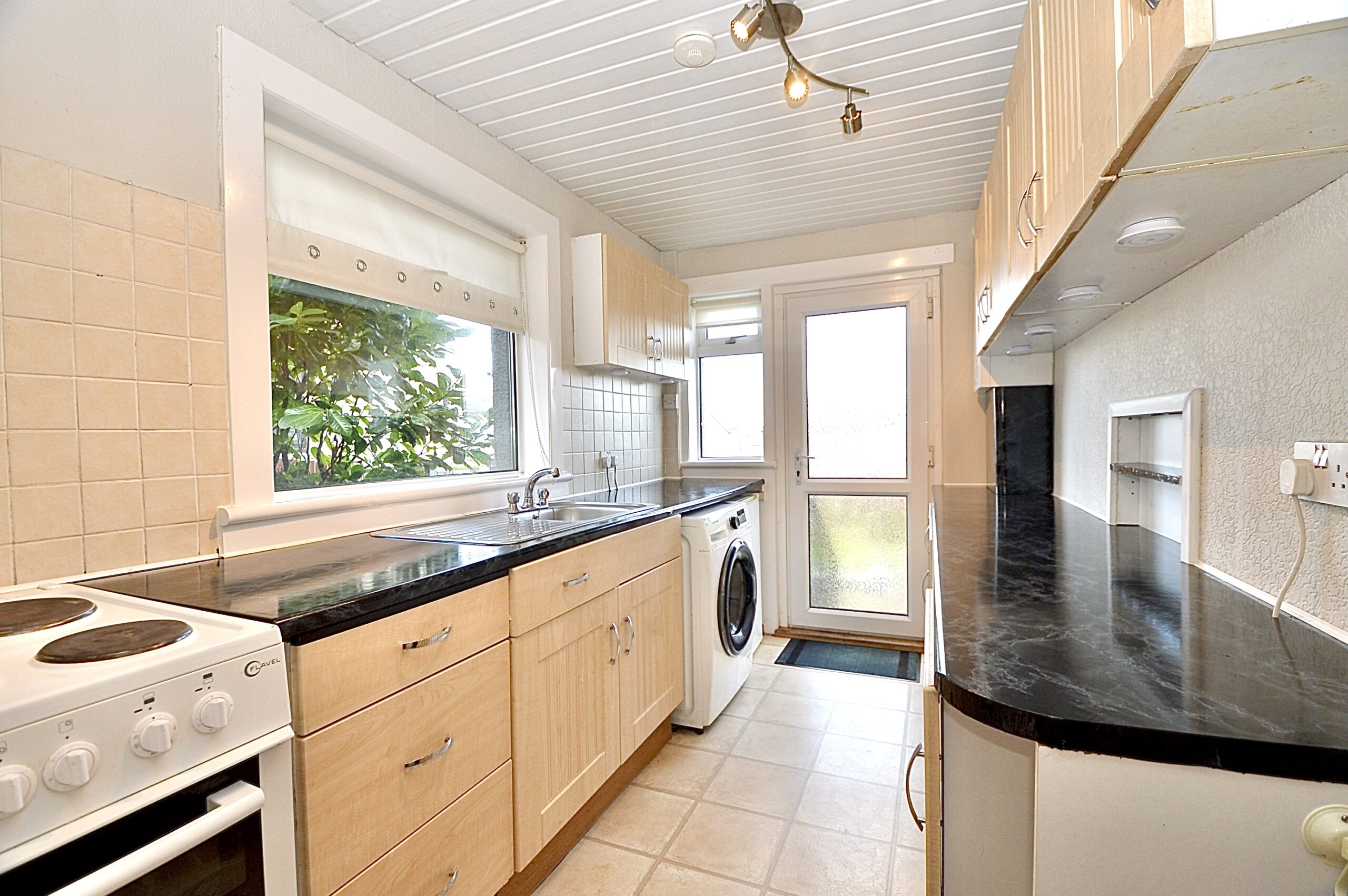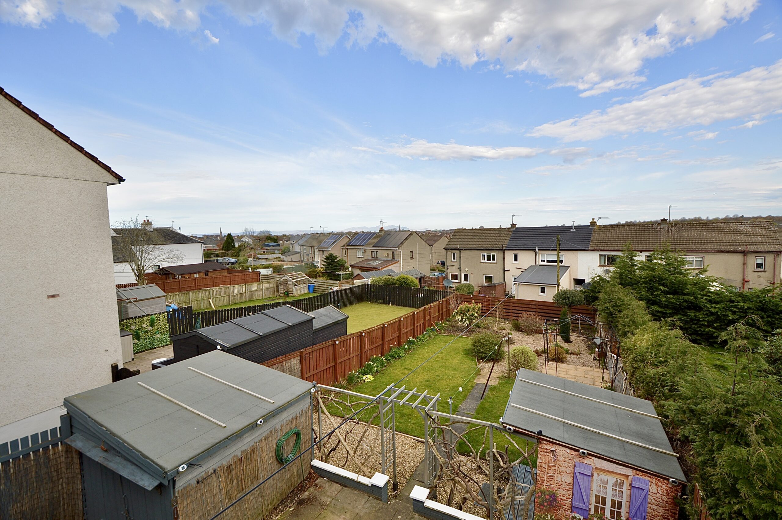 Upstairs, you’ll find two generous double bedrooms, each offering comfortable proportions and flexibility for home working or guest accommodation. The rear bedroom enjoys charming open views across gardens towards Arran, adding a special touch. A family bathroom with a three-piece suite and electric shower over the bath completes the upper level.