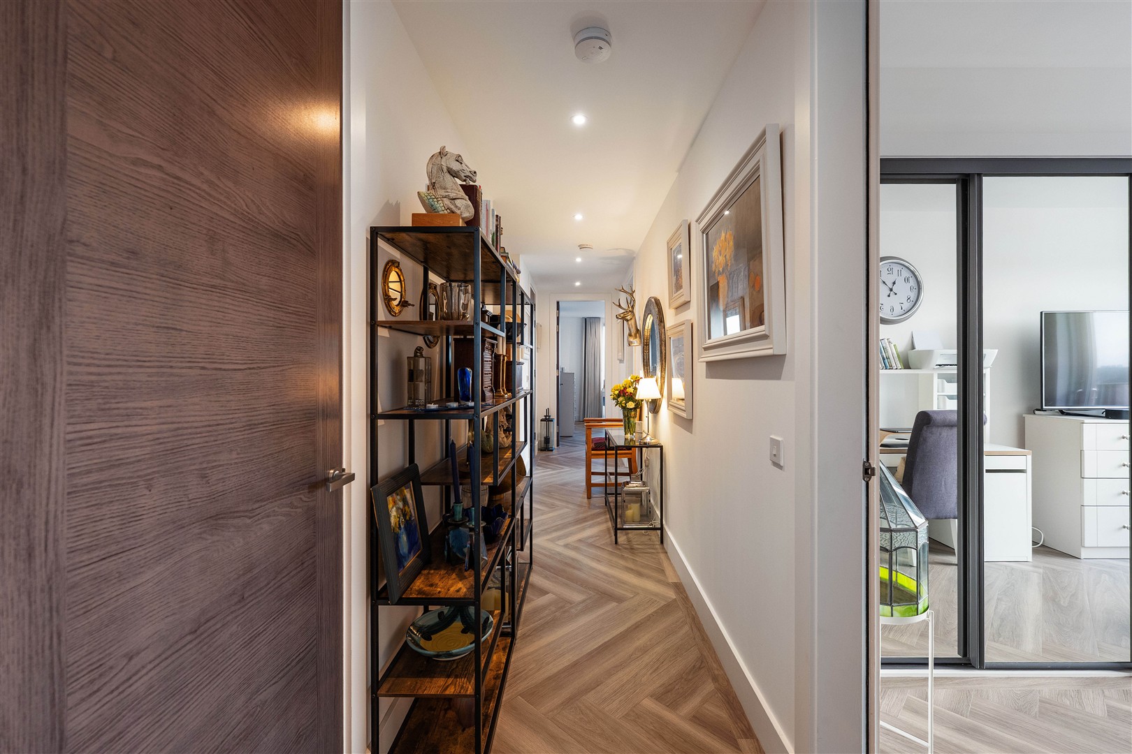 Accessed via lift or stair, the apartment is situated on the top floor and immediately impresses with a generous, light-filled entrance hallway that runs the full length of the home, creating a wonderful sense of space and flow with all principal rooms leading off.