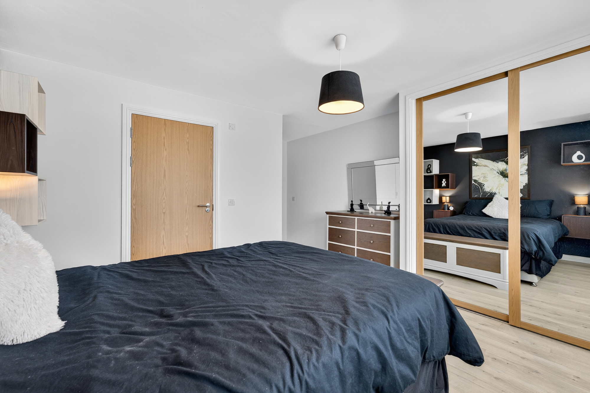 The spacious accommodation comprises a welcoming entrance hallway with a walk-in storage cupboard, a bright open-plan lounge and dining area with patio access, a stylish contemporary kitchen with integrated appliances, two generous double bedrooms (the master featuring an en-suite shower room) and a well-appointed main bathroom.