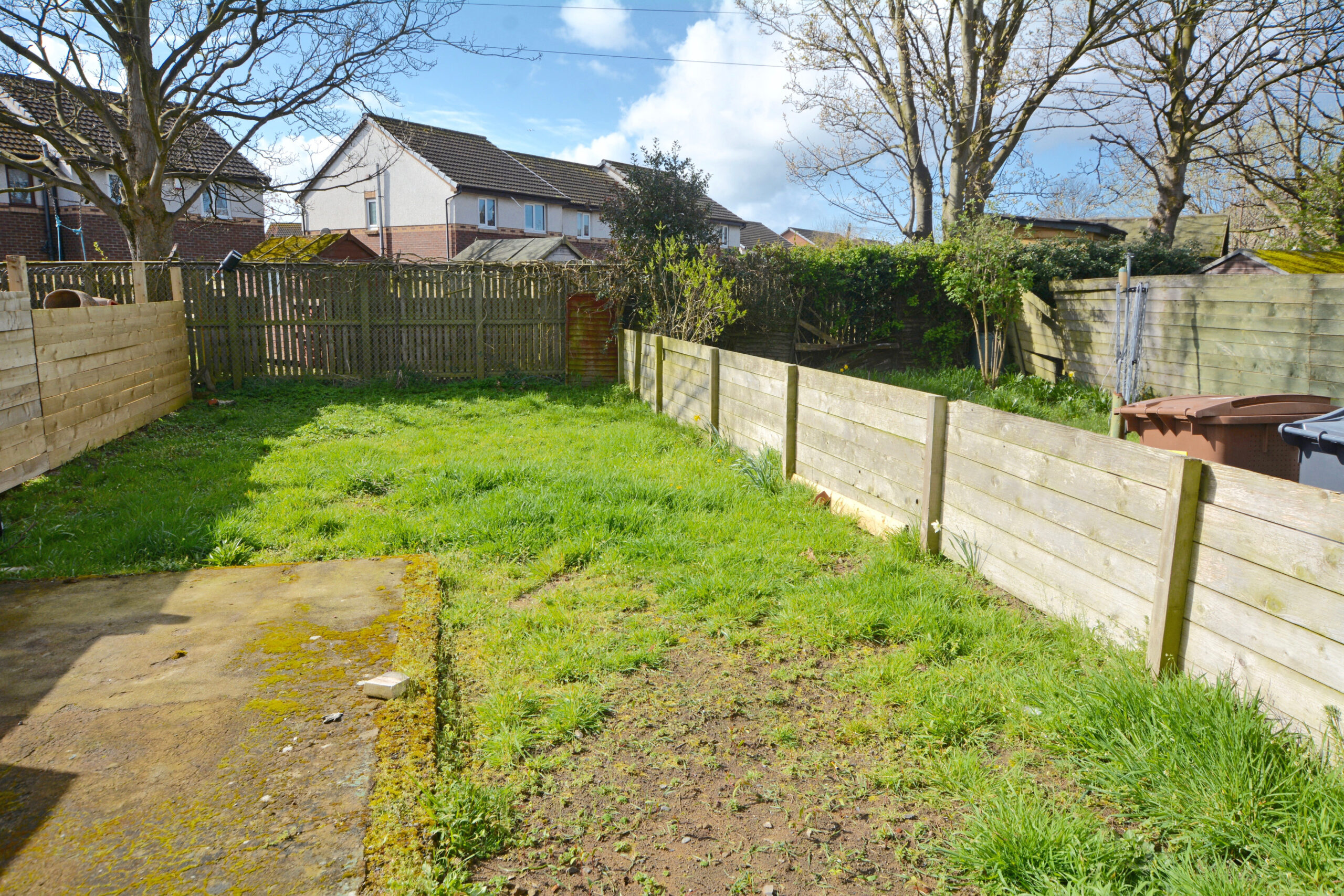 The south facing rear garden is predominantly laid to lawn with a slabbed patio area. The driveway to the side provides private, off street parking for several vehicles.