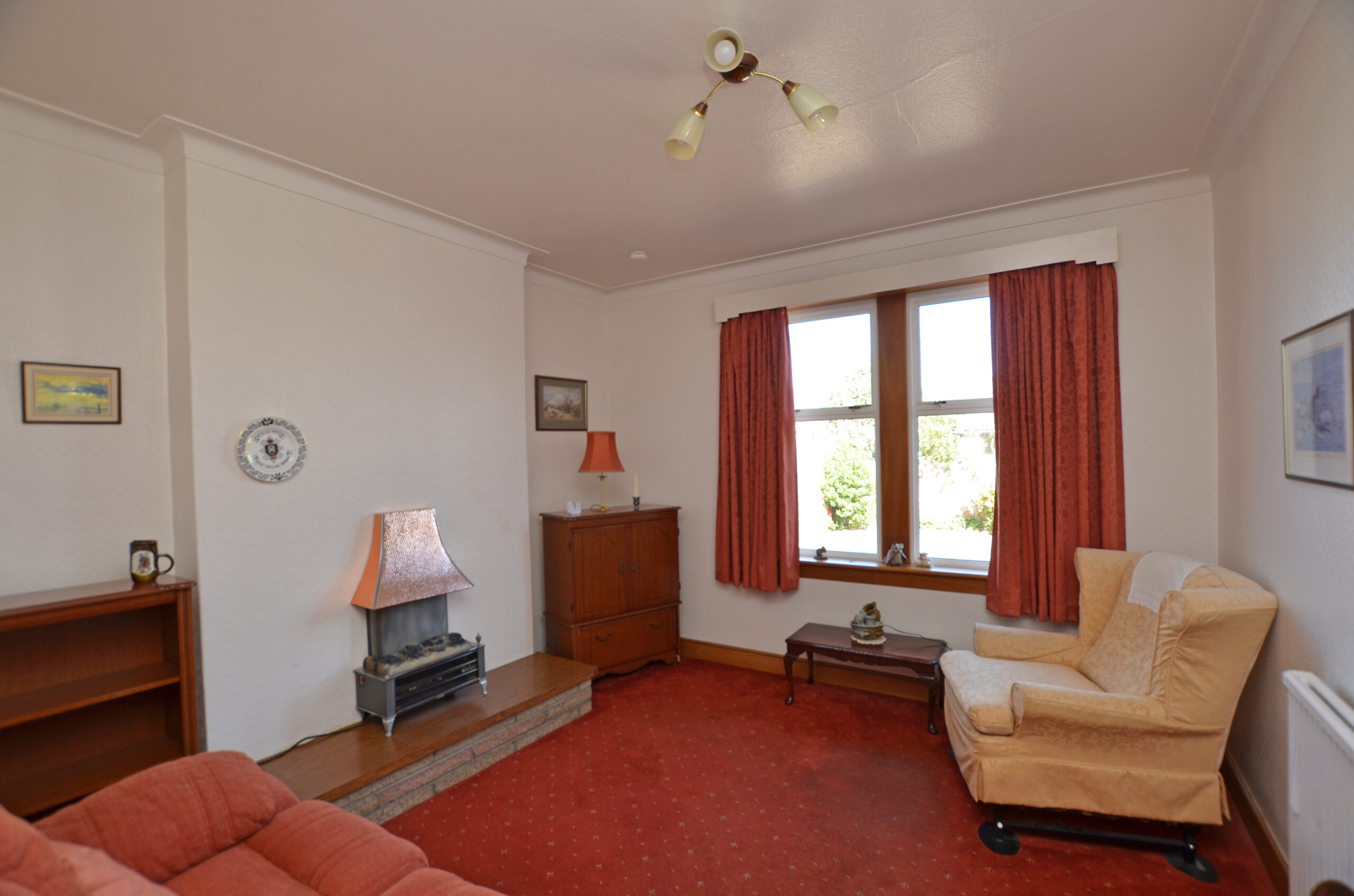 In more detail, the accommodation comprises: entrance vestibule, broad reception hall, formal bay-windowed lounge with feature fireplace, formal bay-windowed dining room, rear sitting room/bedroom four, older-style open-plan kitchen/utility, downstairs bathroom, three double bedrooms, separate WC, and ample storage to the eaves.