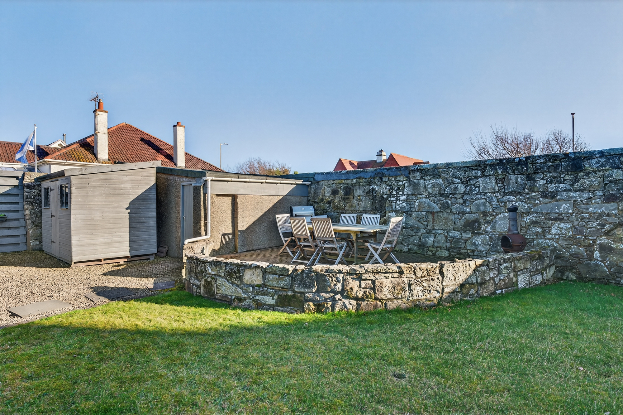 In more detail, the internal accommodation extends to an entrance vestibule leading into a grand welcoming hallway, with under stairs storage, a spacious and bright bay-windowed lounge with a feature fireplace and Butler’s Pantry, a downstairs double bedroom, a modern downstairs shower room, a dining room with fitted storage, a stunning dining kitchen by JS Geddes with an array of high quality integrated appliances and a garden room with French doors out to the rear garden. On the upper floor there are four large double bedrooms, including a bay-windowed front facing bedroom, currently utilised as an upper lounge due to the incredible views out to sea, a fitted bathroom suite and loft access.