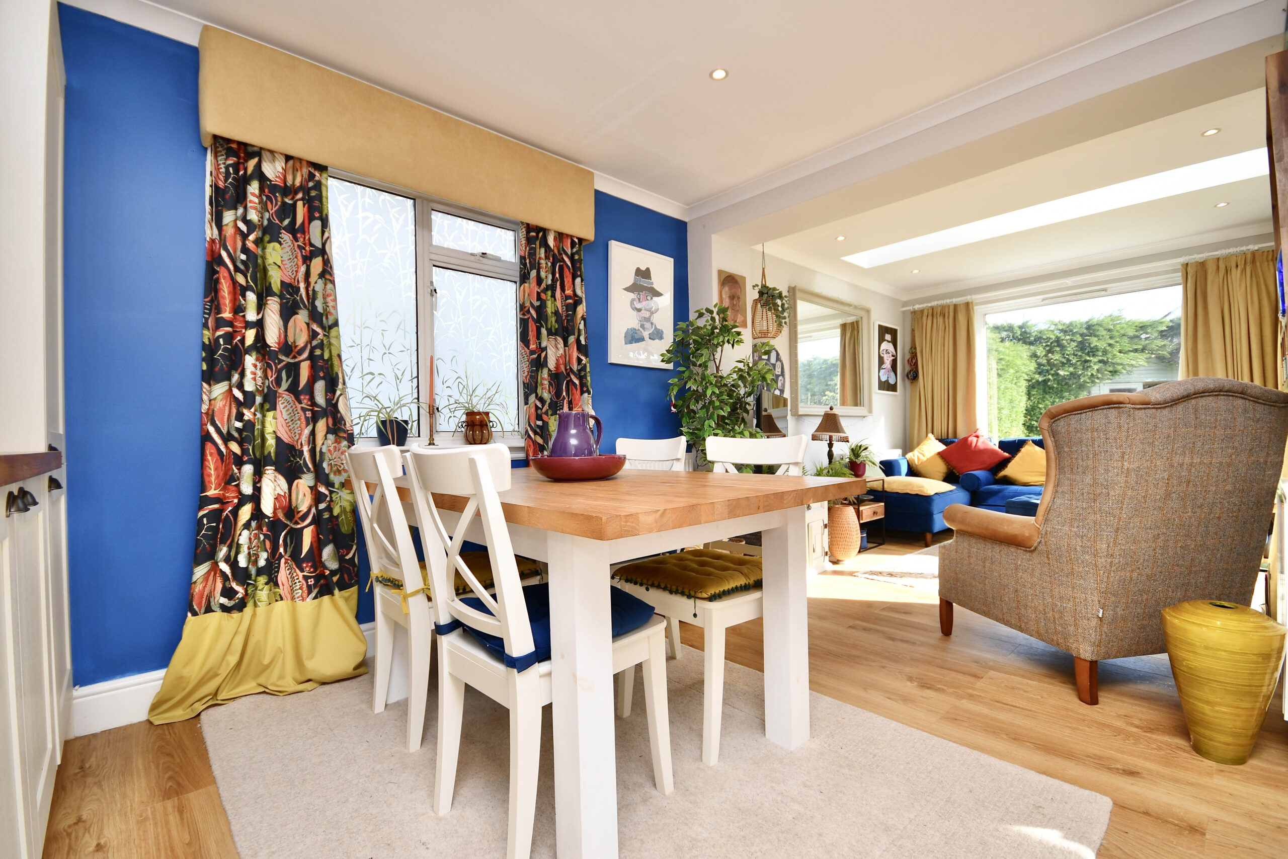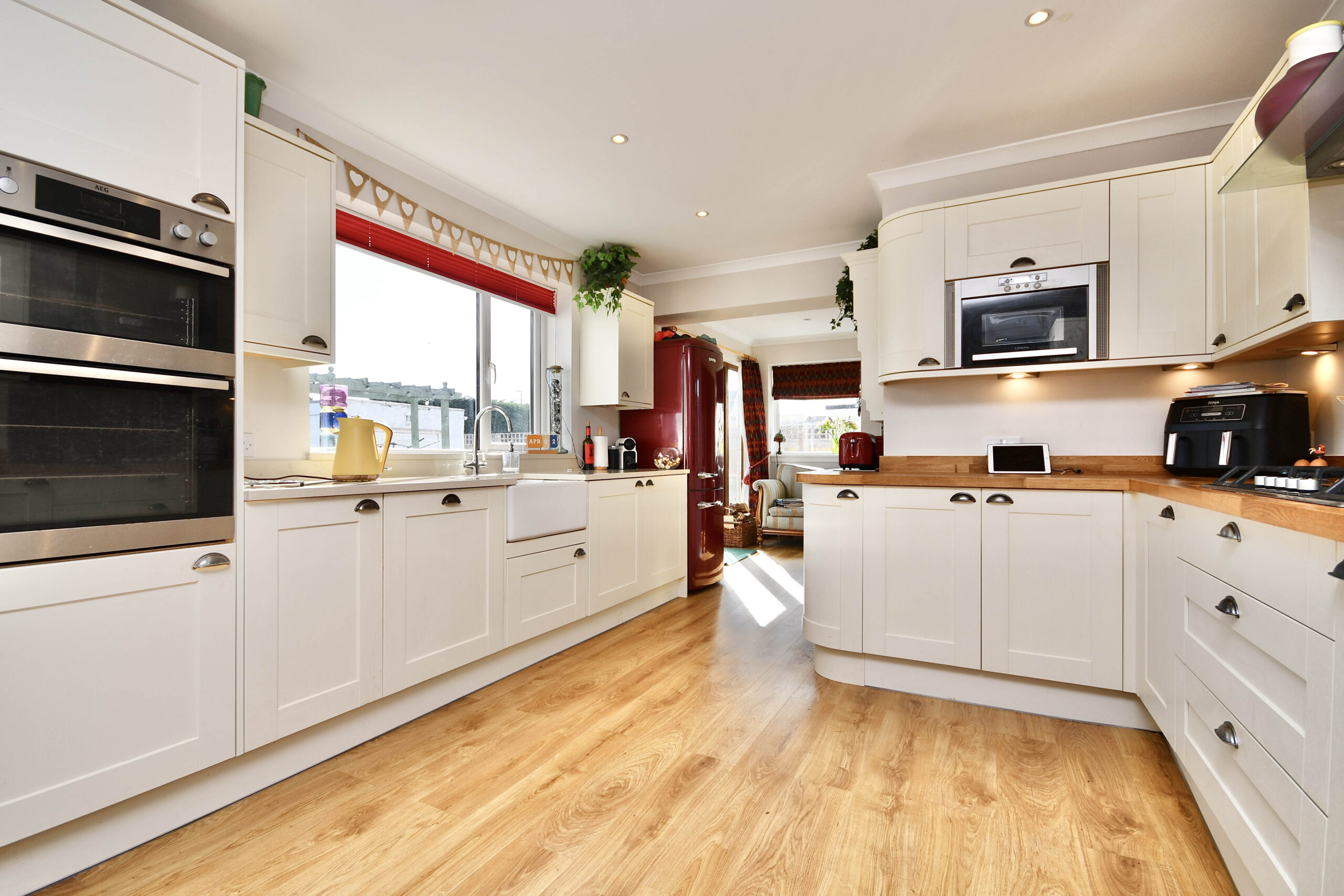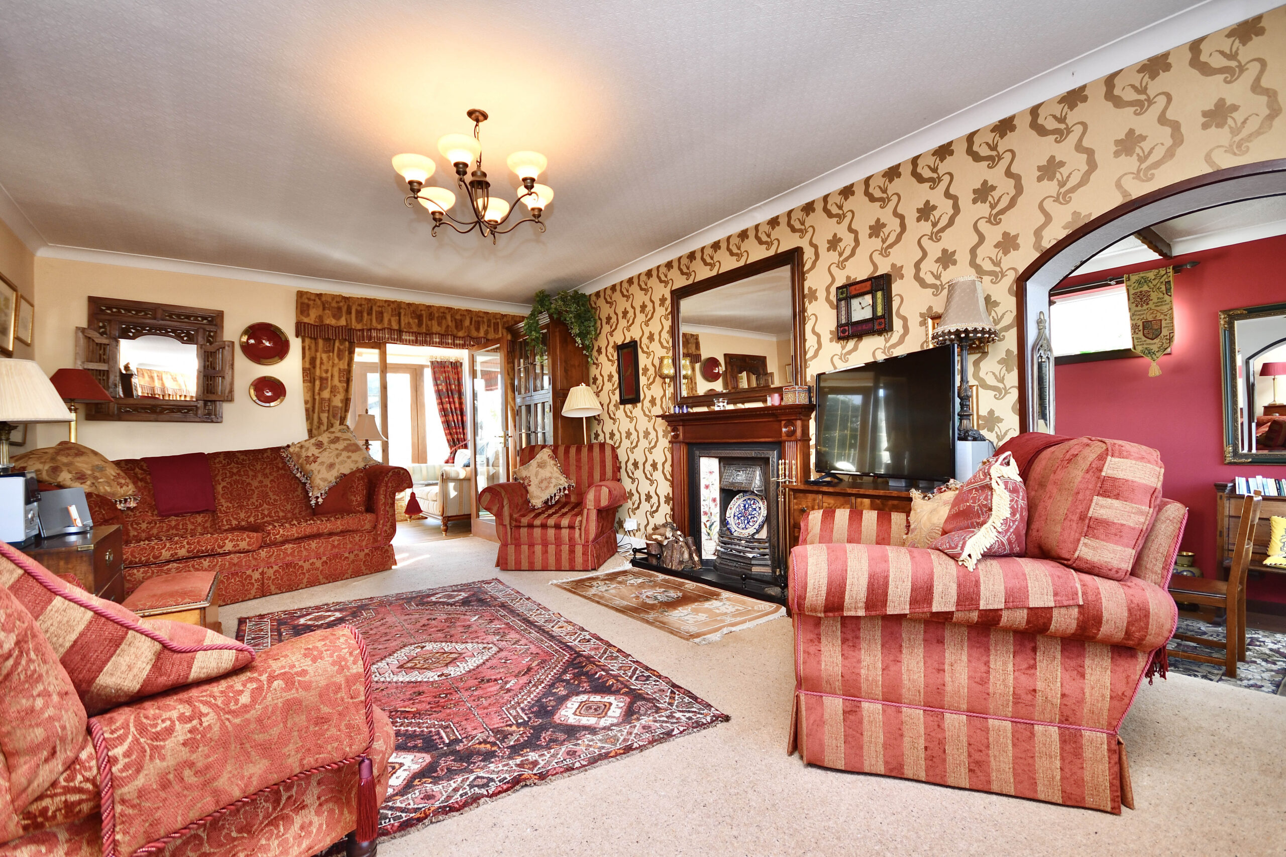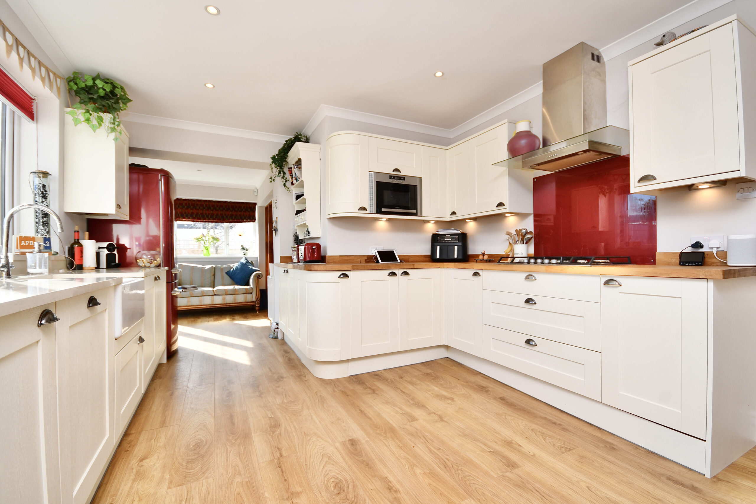 In more detail, the internal accommodation extends to a welcoming entrance hallway with stairs leading to the upper floor and an under stairs storage cupboard, a spacious lounge with a feature open fireplace, an open doorway leading down into a large extended dining room, and a glass door leading through to a sitting area, which has French doors out to the garden and open plan into an incredible luxury dining kitchen, with ample wall and base units, space for dining and a family room extension off the dining area, with Velux windows and French doors out to the garden. There is also a large double bedroom and a fitted shower room on the ground floor. On the upper floor there is a fantastic master bedroom suite, with fitted wardrobes and a luxury en suite shower room suite, a family bathroom and loft access off the landing, and two further double bedrooms, including one with fitted storage and one with access into eaves storage.