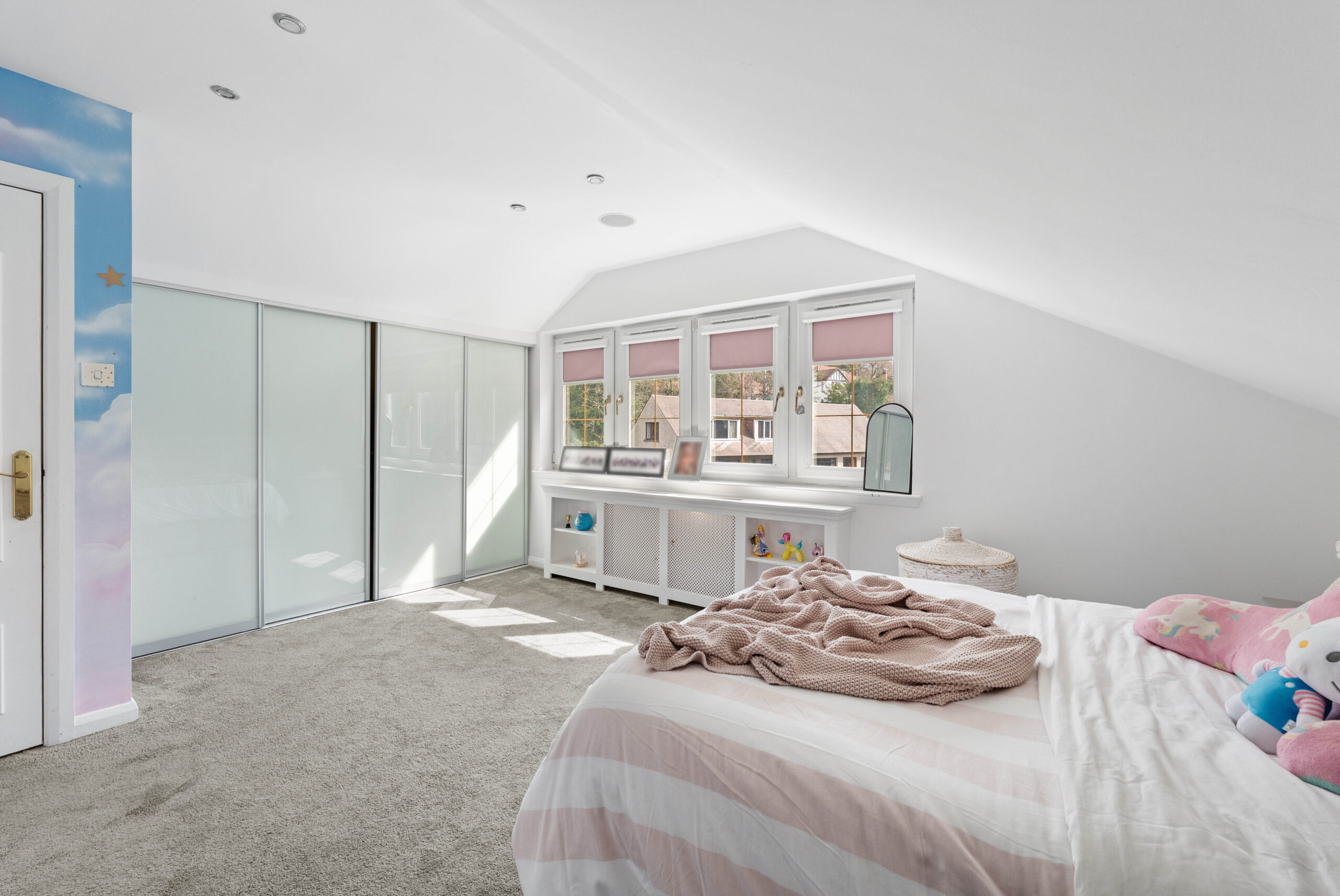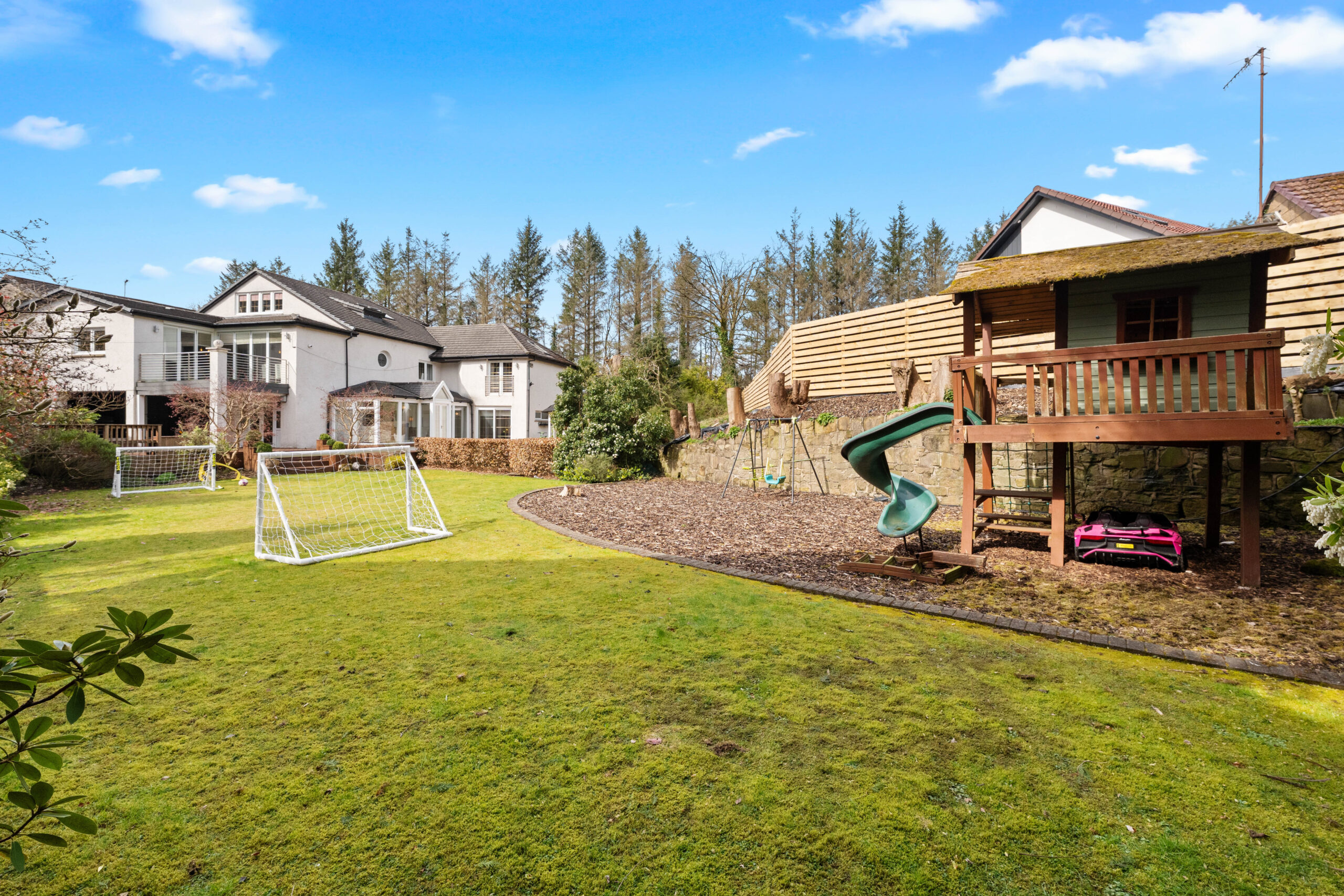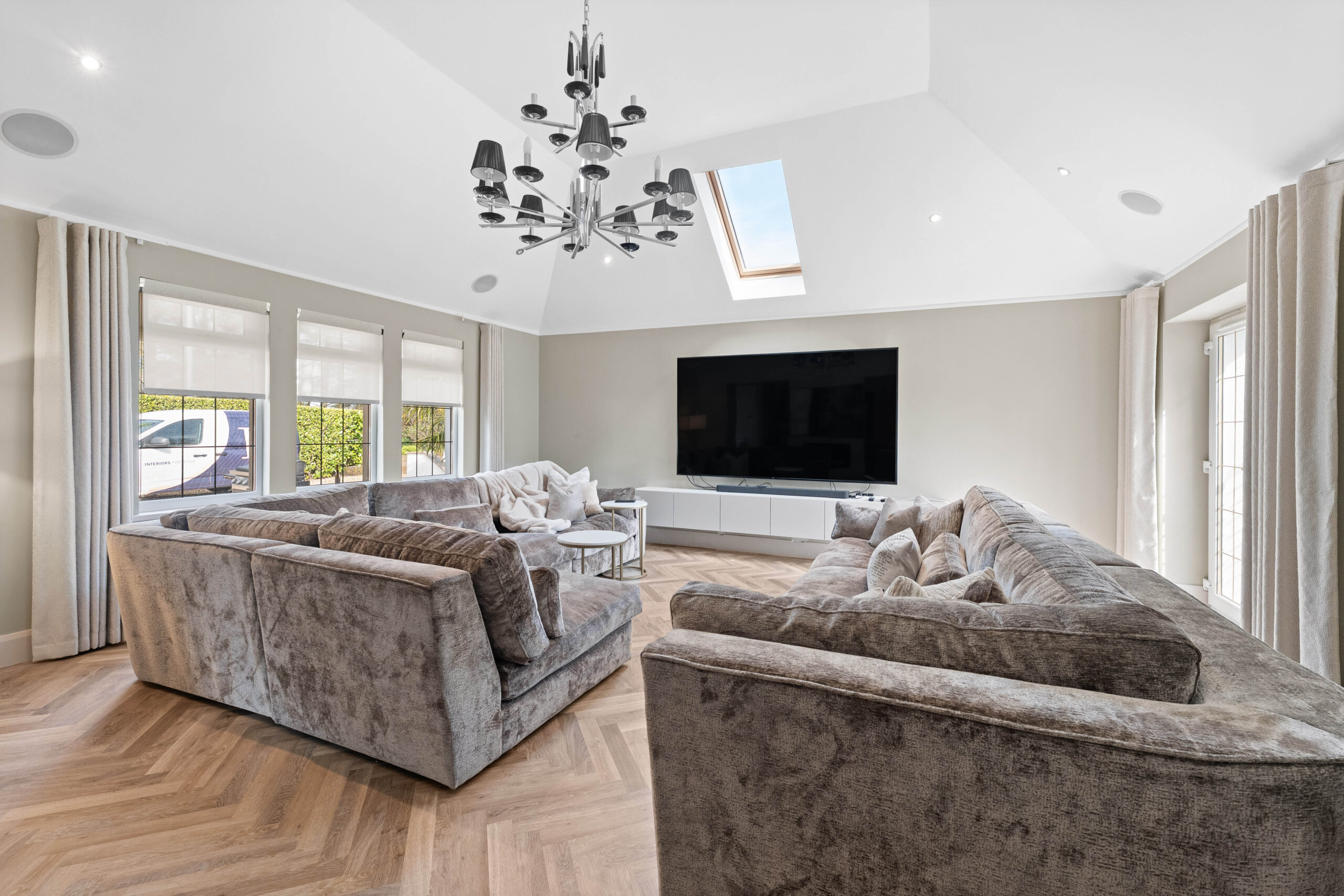 The property has a gas fired central heating system controlled by the Nest app, a security alarm system and double glazed windows. Driveway parking to the front affords space for several vehicles and is accessed through two electric gates. An electric vehicle charger is found on the side of the building. Landscaped garden grounds to the rear are a combination of lawns, stocked beddings, a children’s play area, patios, a timber deck and a Japanese garden/pond area. A sheltered composite deck adjacent to the building houses a hot tub that our clients are keen to include in the sale.