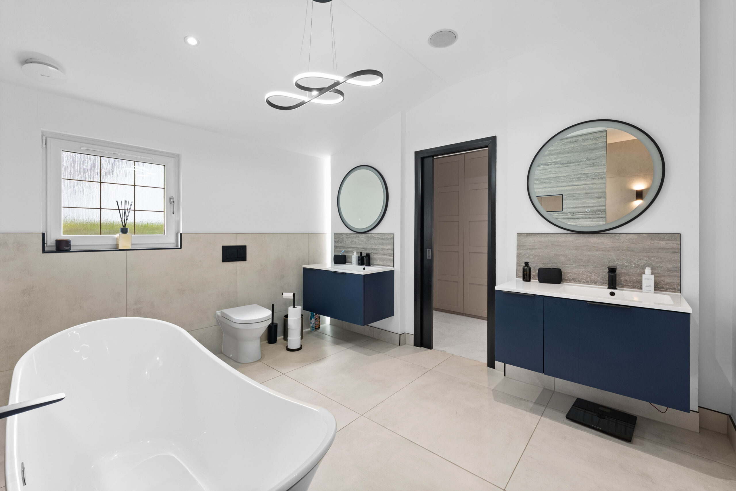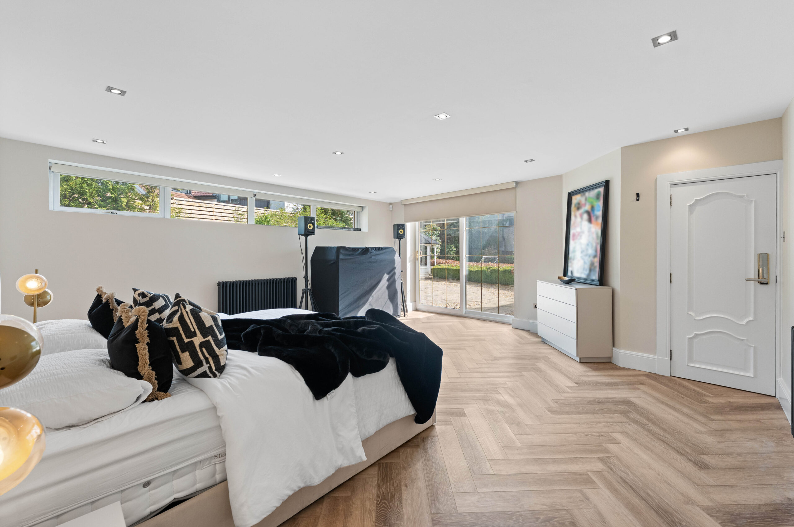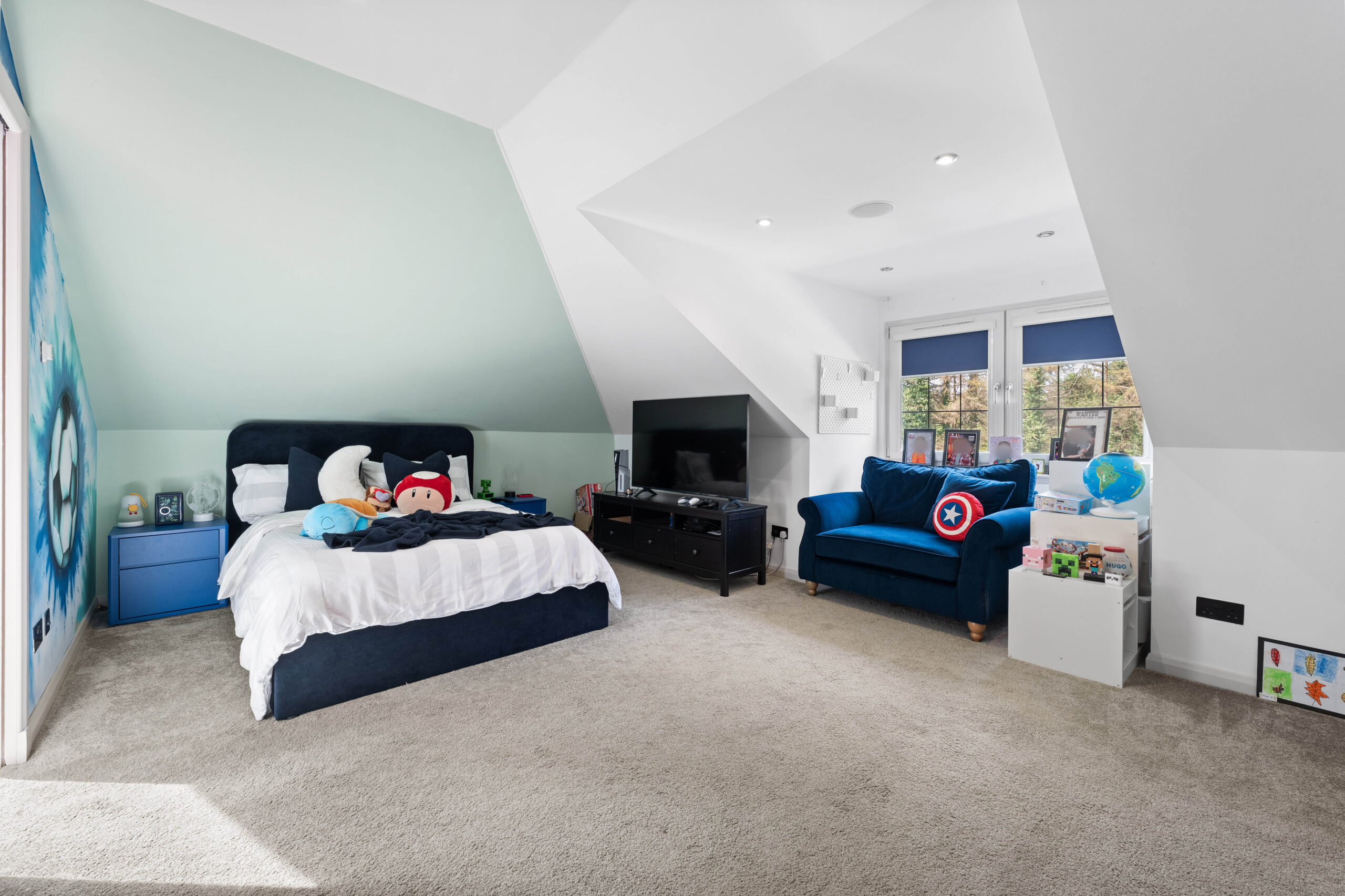 The property has a gas fired central heating system controlled by the Nest app, a security alarm system and double glazed windows. Driveway parking to the front affords space for several vehicles and is accessed through two electric gates. An electric vehicle charger is found on the side of the building. Landscaped garden grounds to the rear are a combination of lawns, stocked beddings, a children’s play area, patios, a timber deck and a Japanese garden/pond area. A sheltered composite deck adjacent to the building houses a hot tub that our clients are keen to include in the sale.