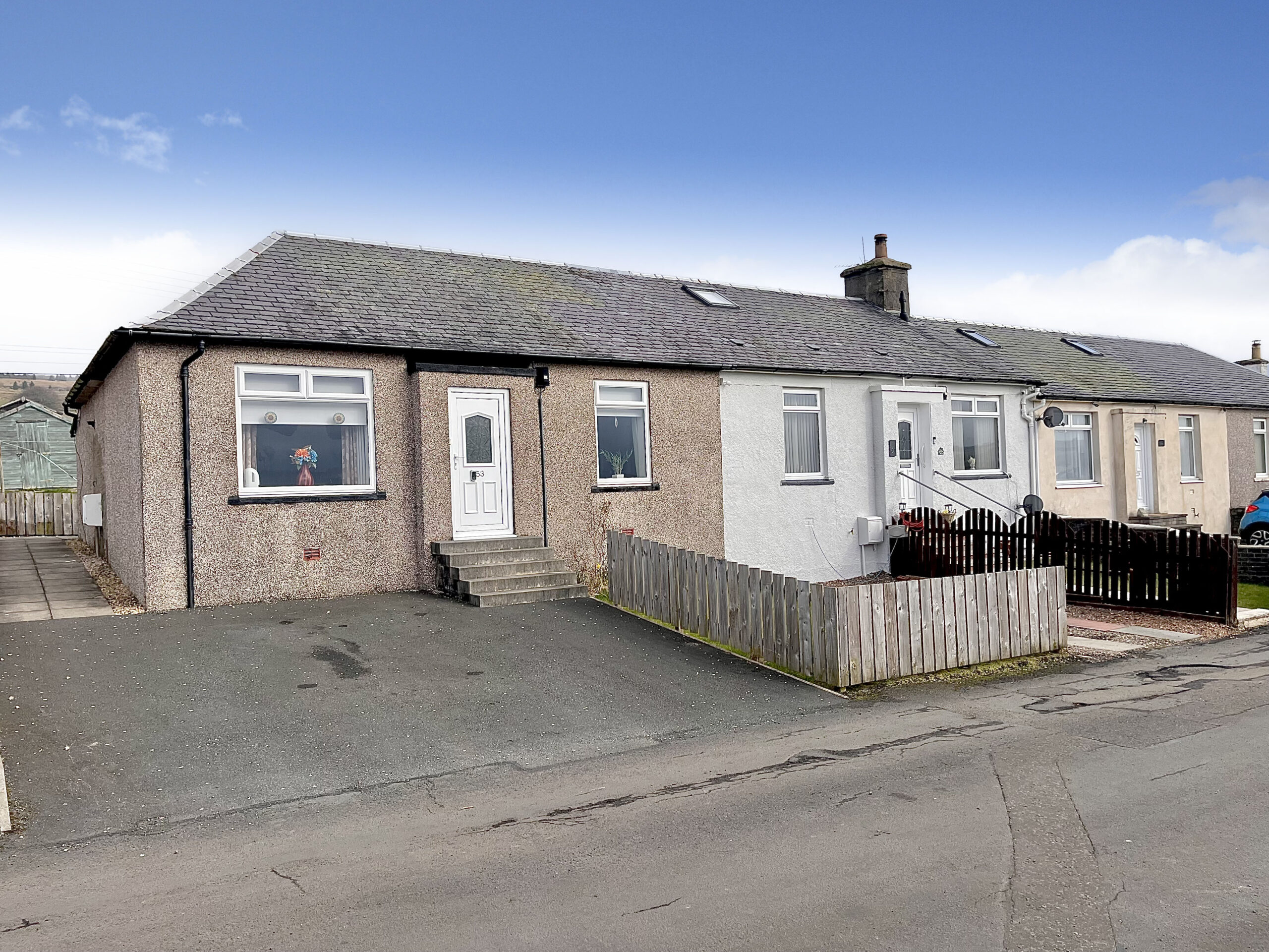 Number 53 is a traditional end terrace cottage which enjoys a lovely position on the edge of Dalmellington with far reaching views across to the Straiton Hills and The Merrick, the highest summit in southern Scotland. The property has undergone a comprehensive program of upgrading and modernisation resulting in a charming, immaculate home that you can move straight into
