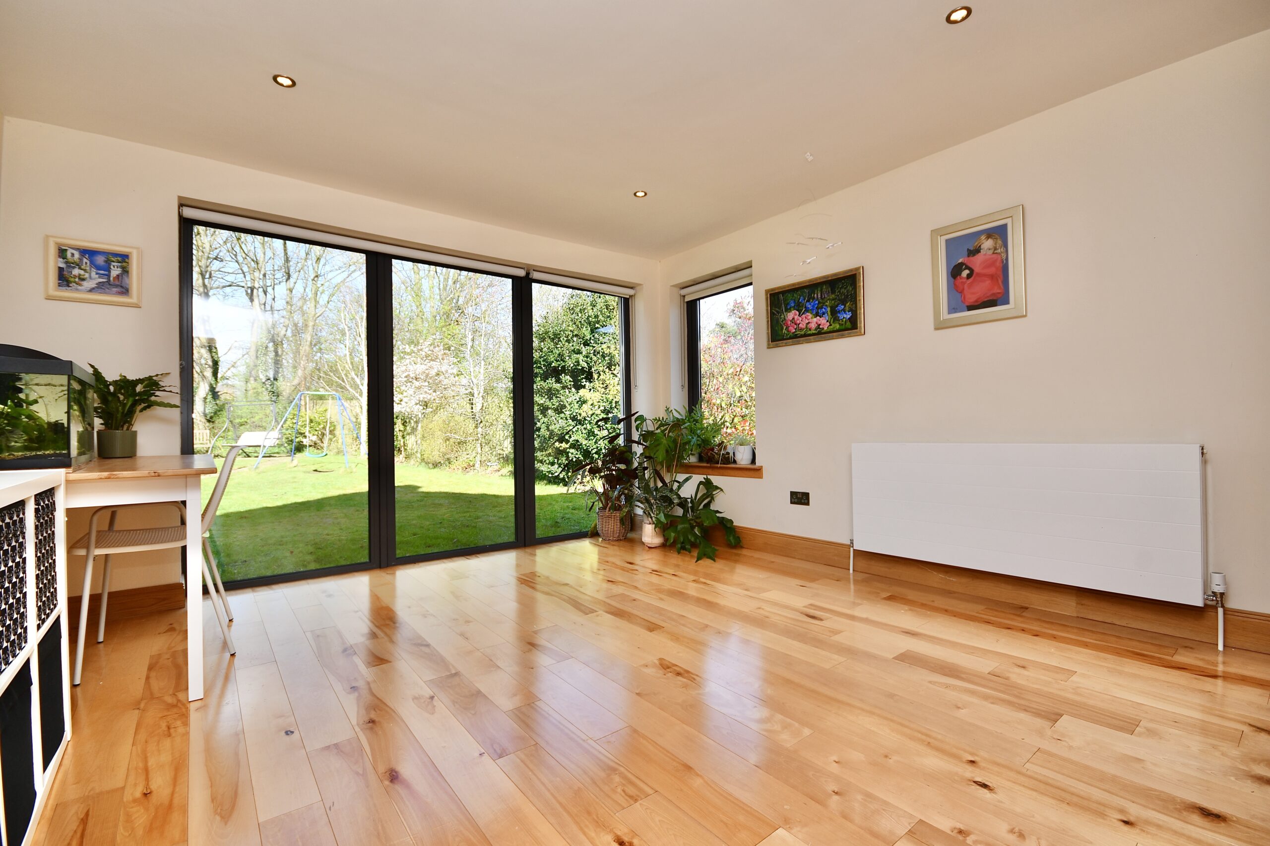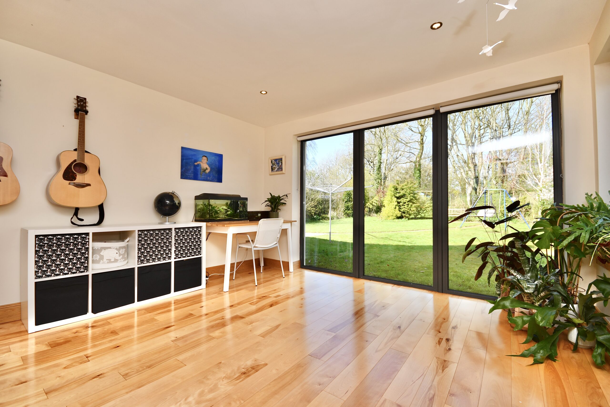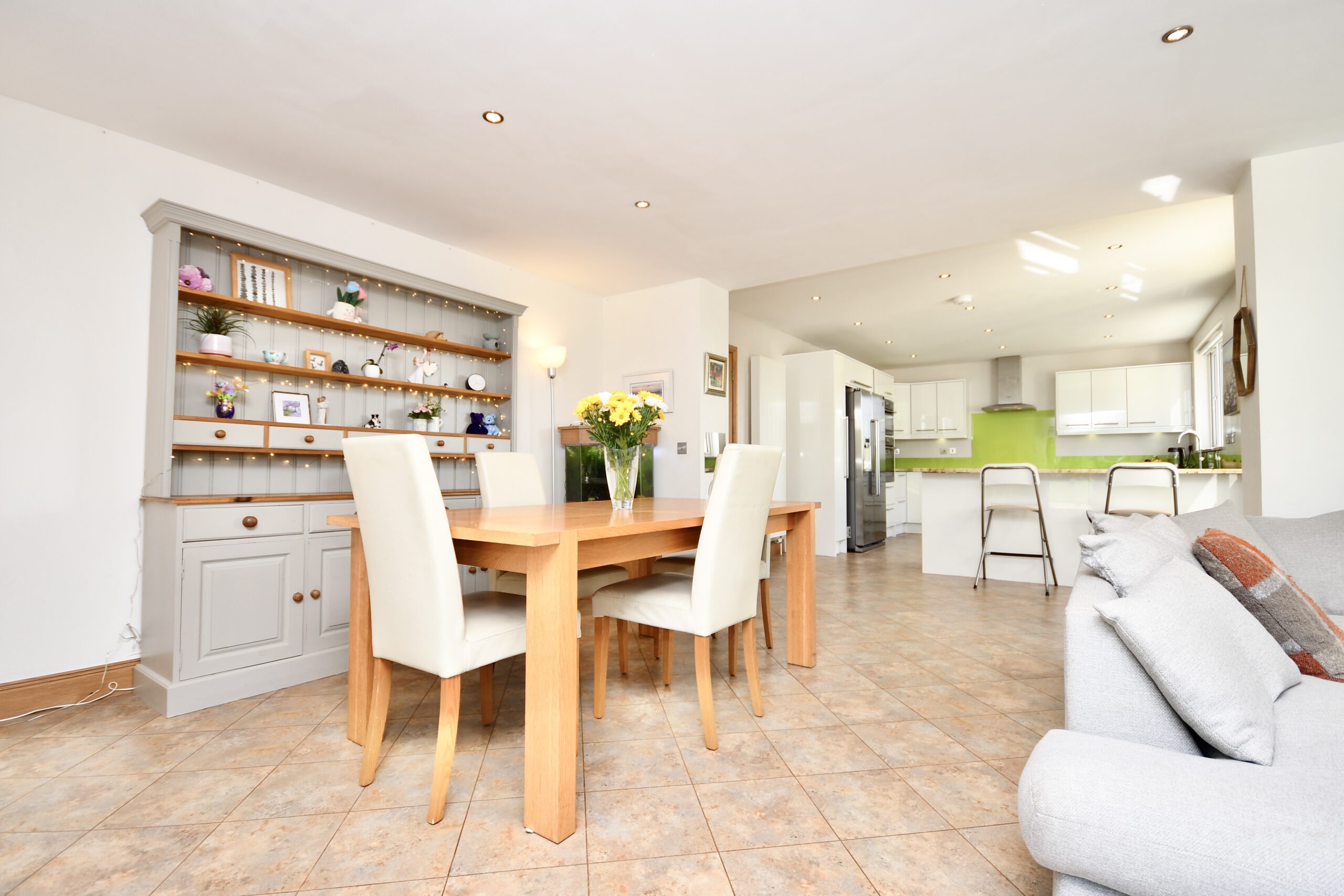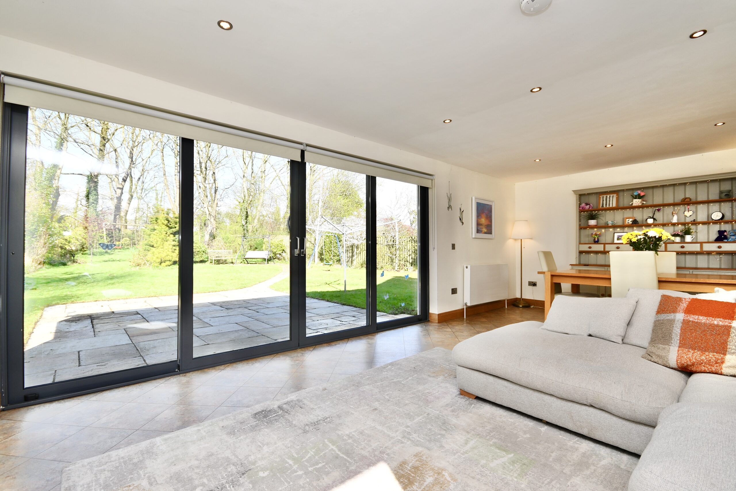 In more detail, the internal accommodation extends to a bright welcoming entrance porch with a storage cupboard housing the boiler, an inner hallway with under stairs storage, a formal lounge to the front with double aspect windows, a downstairs shower room suite, a large room at rear with picture windows that could be utilised as an office or double bedroom, a luxury modern fitted kitchen with a breakfast bar and ample wall and base units with a door to the side, and an open plan extended family room and dining area with sliding patio doors out to the rear garden. On the upper floor there are two large double bedrooms with fitted wardrobes, a four piece modern bathroom suite with a separate shower, loft access off the landing into a large undeveloped attic and two single bedrooms, including one with fitted wardrobes.