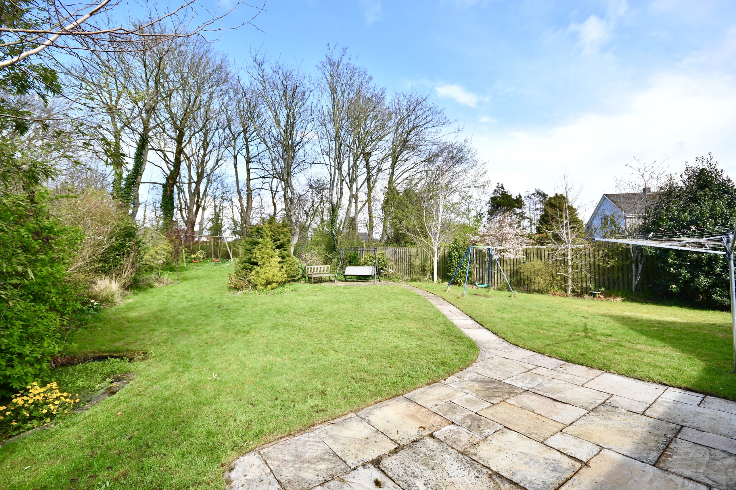 Externally there is a sweeping driveway to the front leading to the double garage with an electric up-and-over door and a separate door out to the rear garden. There is also mature hedging and lawn to the front. The generous rear garden is fully enclosed with a range of hard and soft landscaping, including mature trees, lawn, paved patio areas, a garden shed and decorative borders.