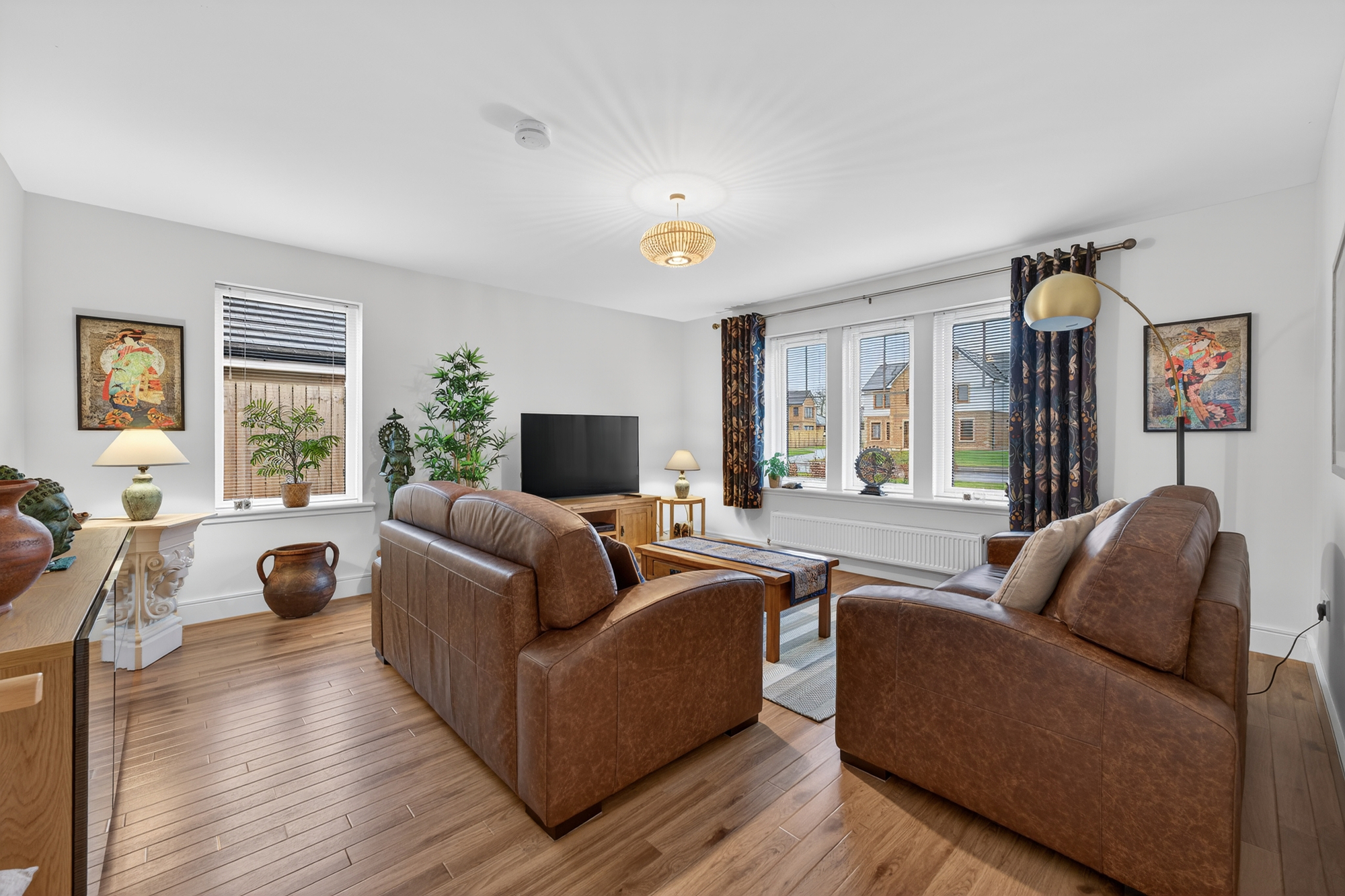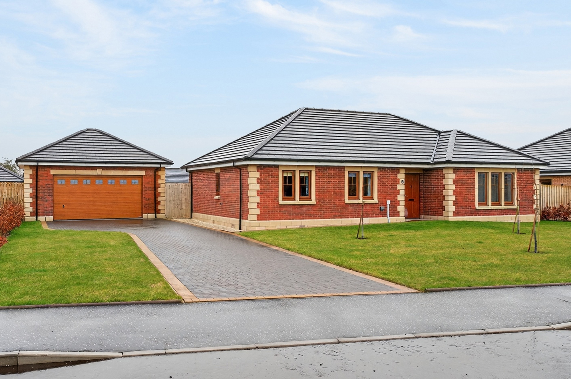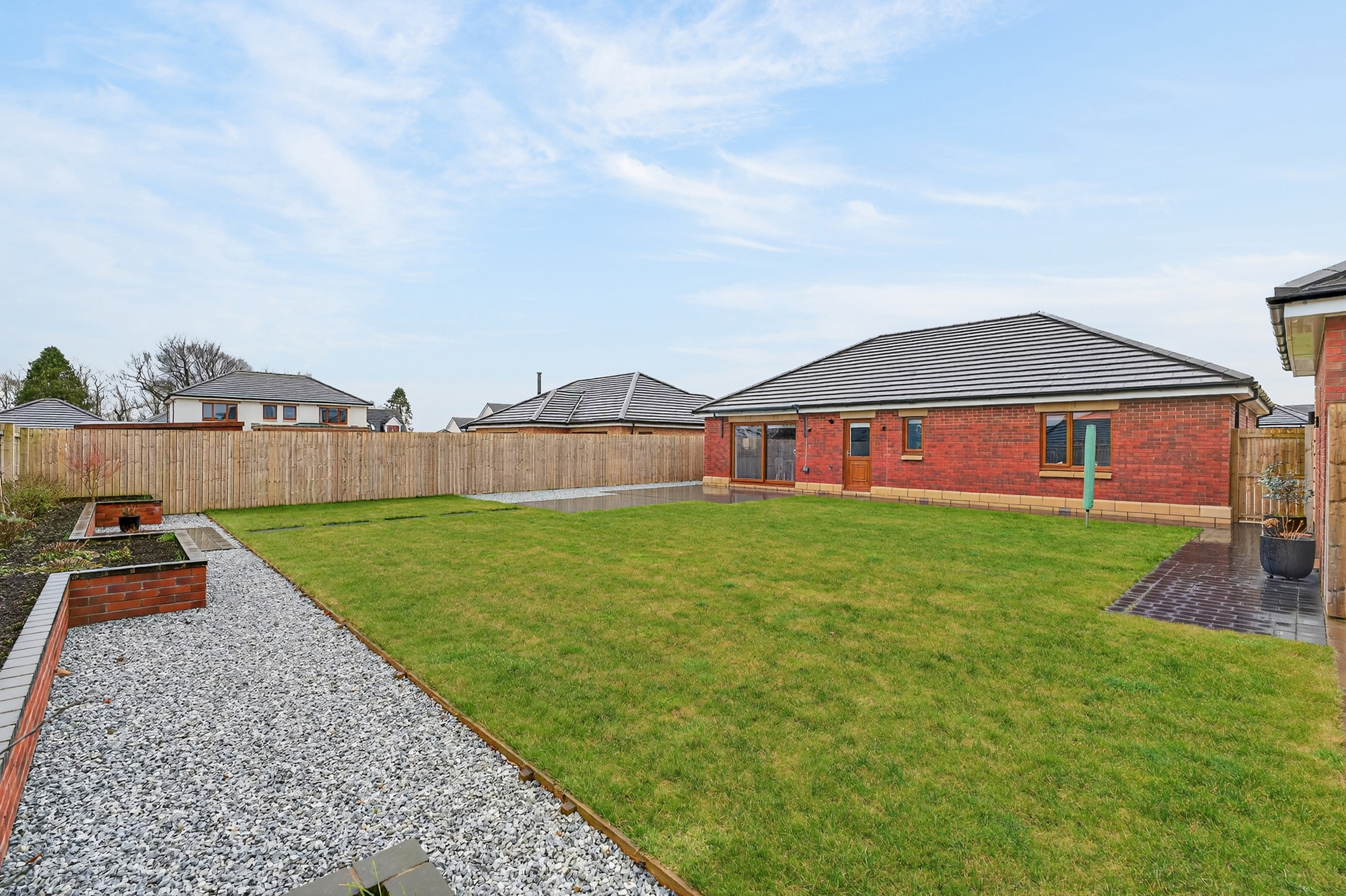 Set within the prestigious Ballochmyle Estate, 6 Northgate is an immaculate, all-on-the-level detached bungalow occupying an impressive plot with landscaped gardens and a separate garage. Finished to a high standard throughout, the property boasts beautiful Karndean flooring, generous room proportions and a flexible layout ideal for modern living. A rare opportunity to enjoy stylish, low-maintenance living in an exclusive setting.