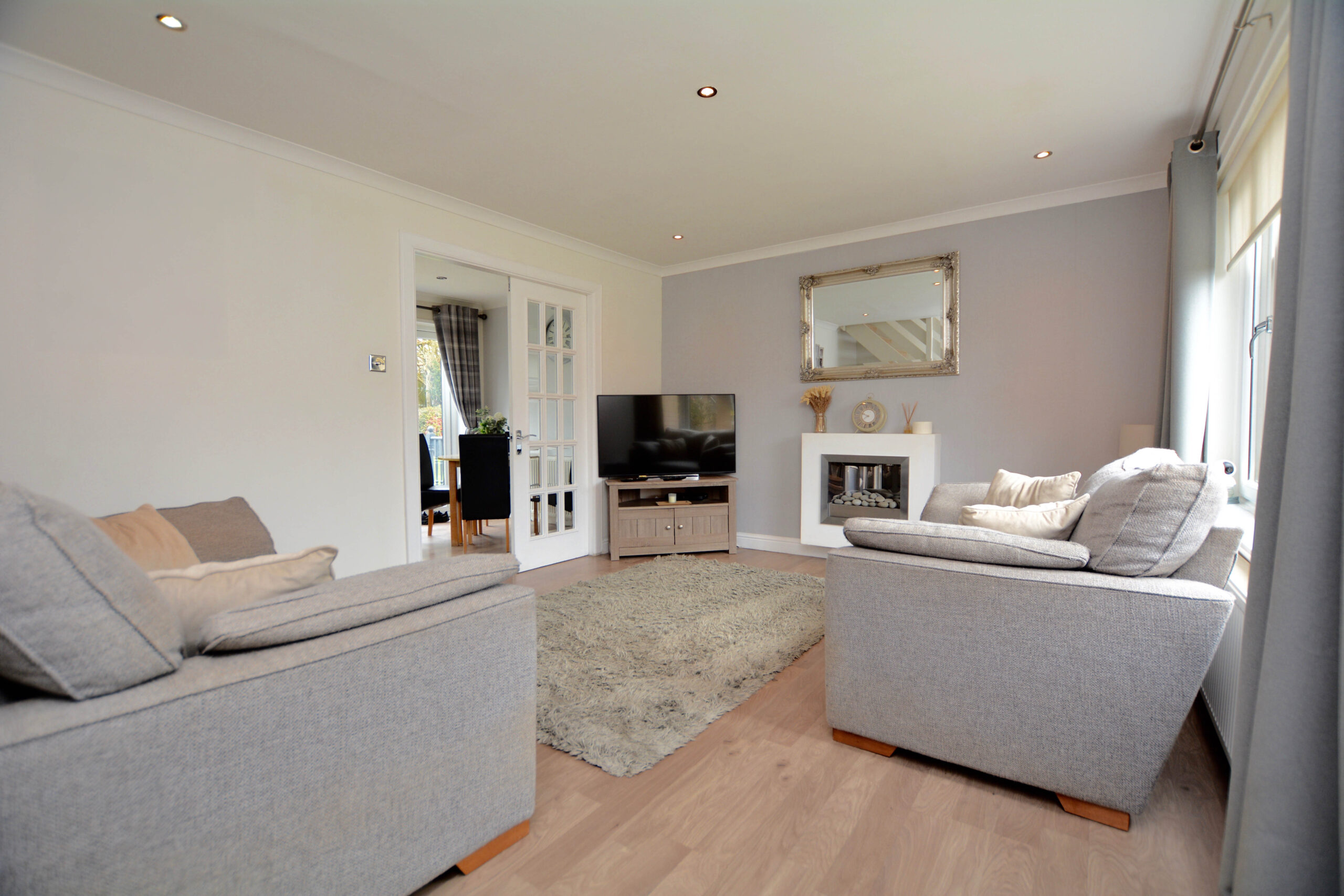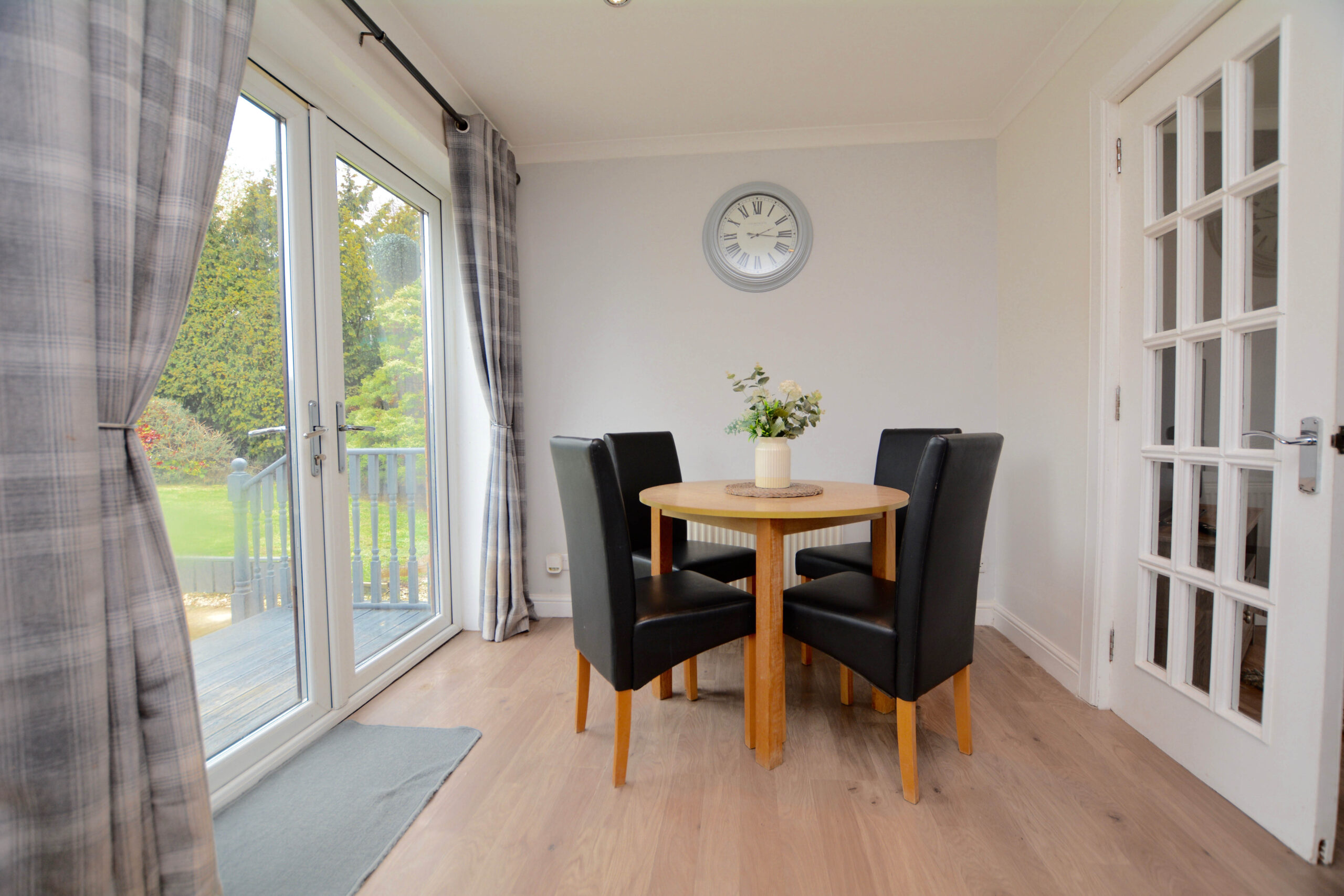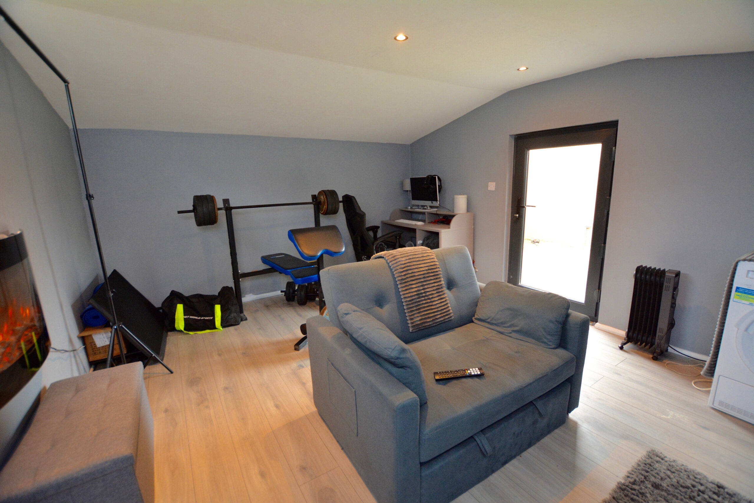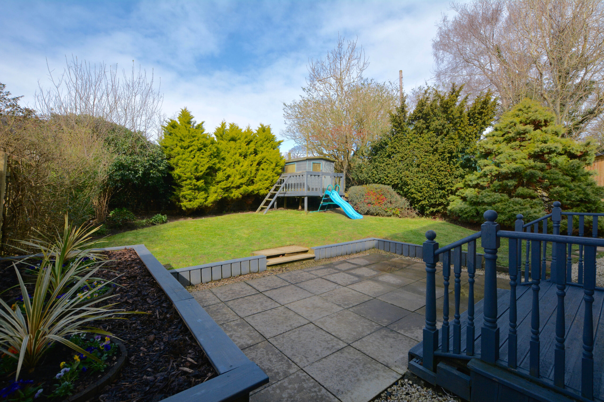 Externally the front garden is laid to lawn with surrounding shrubbery borders with a driveway to the rear. To the side of the property is a generous area of lawn. The enclosed rear garden is also predominately laid to lawn with patio area, raised shrubbery borders and mature plants and trees. To the side is a purpose built garden room/home office.