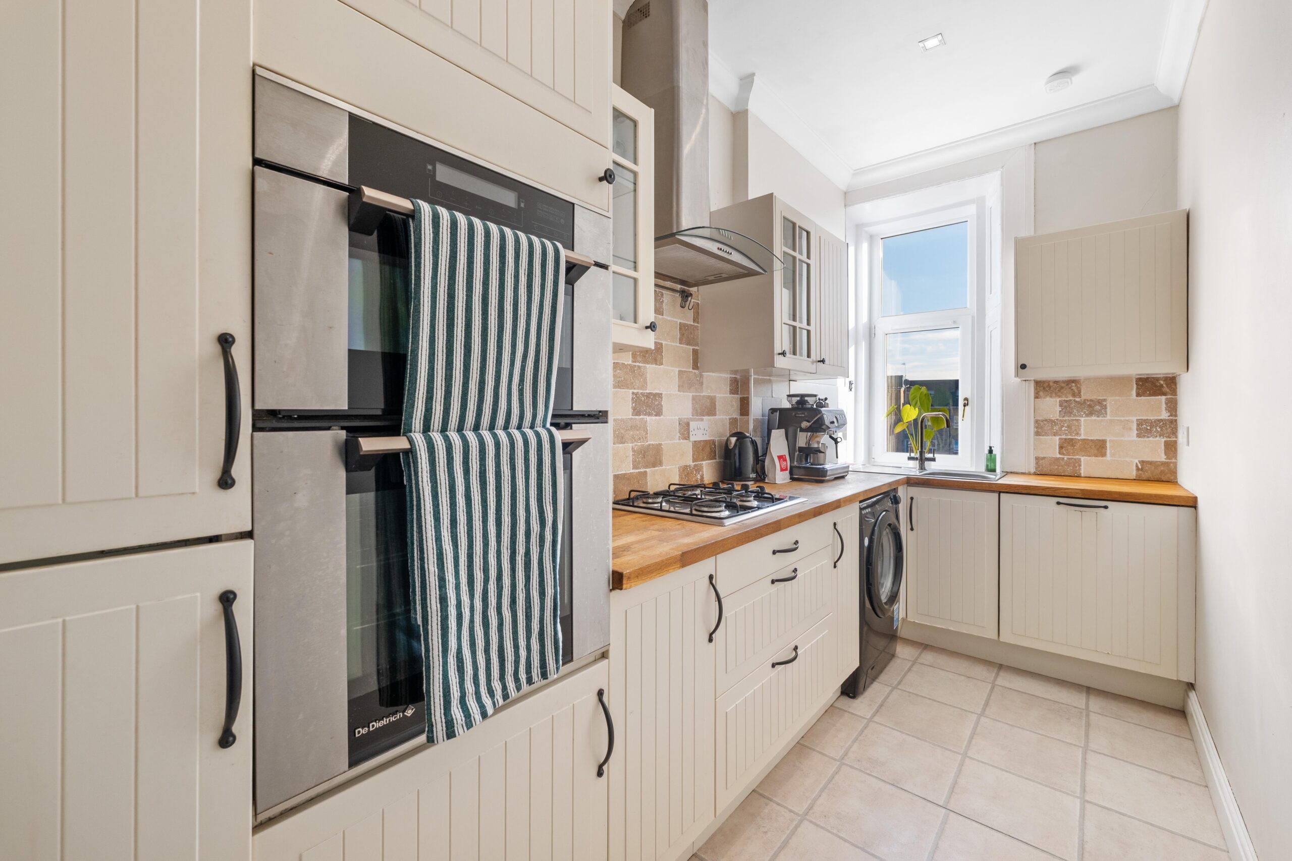 71 Deanston Drive is in very close proximity to thriving shops, bars, coffee houses, bakeries and restaurants. Sainsburys, Tesco, Co-op and M&S stores are all within half a mile of the property. Queens Park is at the end of the road, providing recreational space, tennis courts and football pitches. Transport links are also close by with bus and rail options.