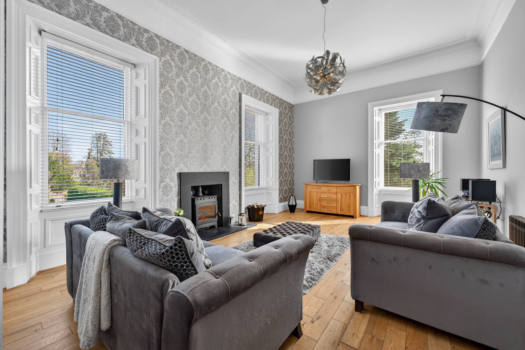 This beautifully presented home effortlessly blends ornate period character with modern comfort and tasteful décor throughout. The property retains a wealth of original charm including decorative panelling, soaring high ceilings and numerous windows that flood the accommodation with natural light, while contemporary fixtures and a neutral palette create a bright and welcoming living environment.