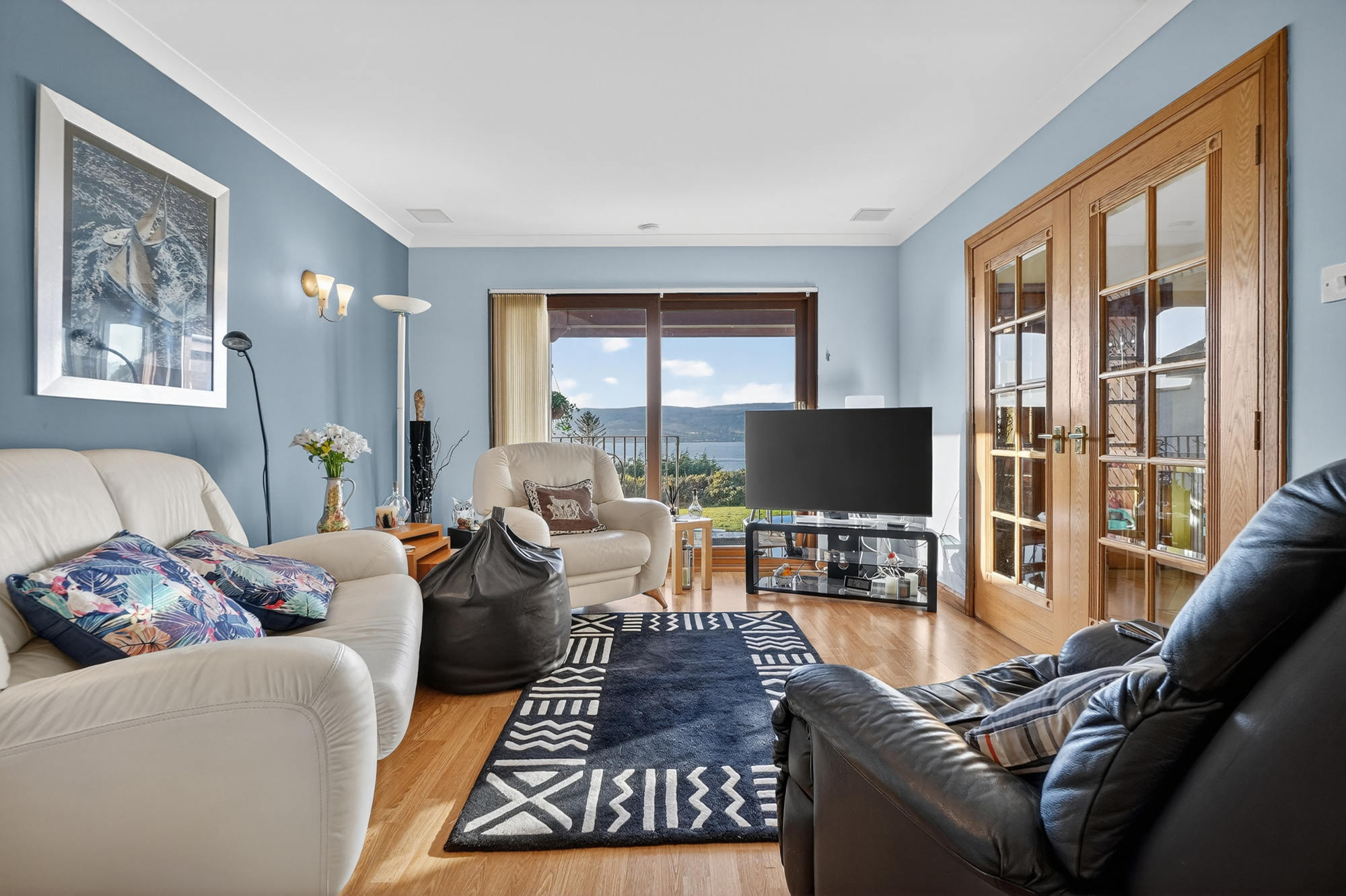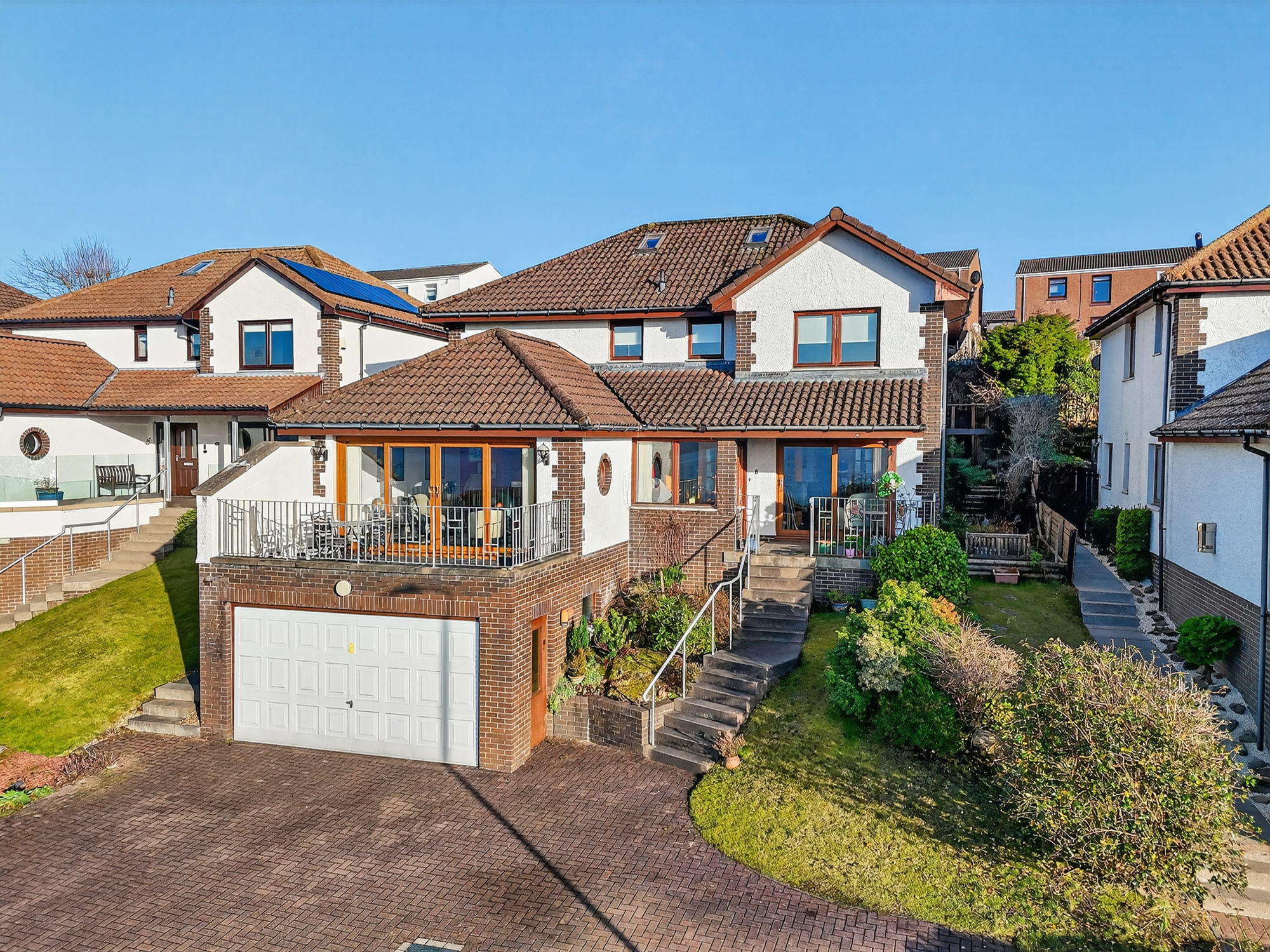 8 Burns Drive is a beautiful modern detached villa with panoramic views out over the Firth of Clyde along with being a short distance form the shorefront. The village of Wemyss Bay is a great village with schooling, ferry access to the Isle of Bute, rail access to Inverclyde up to Glasgow and local shopping facilities. Overall, a really nice home with flexible accommodation, excellent private garden grounds and a balcony offering the perfect estuary views.