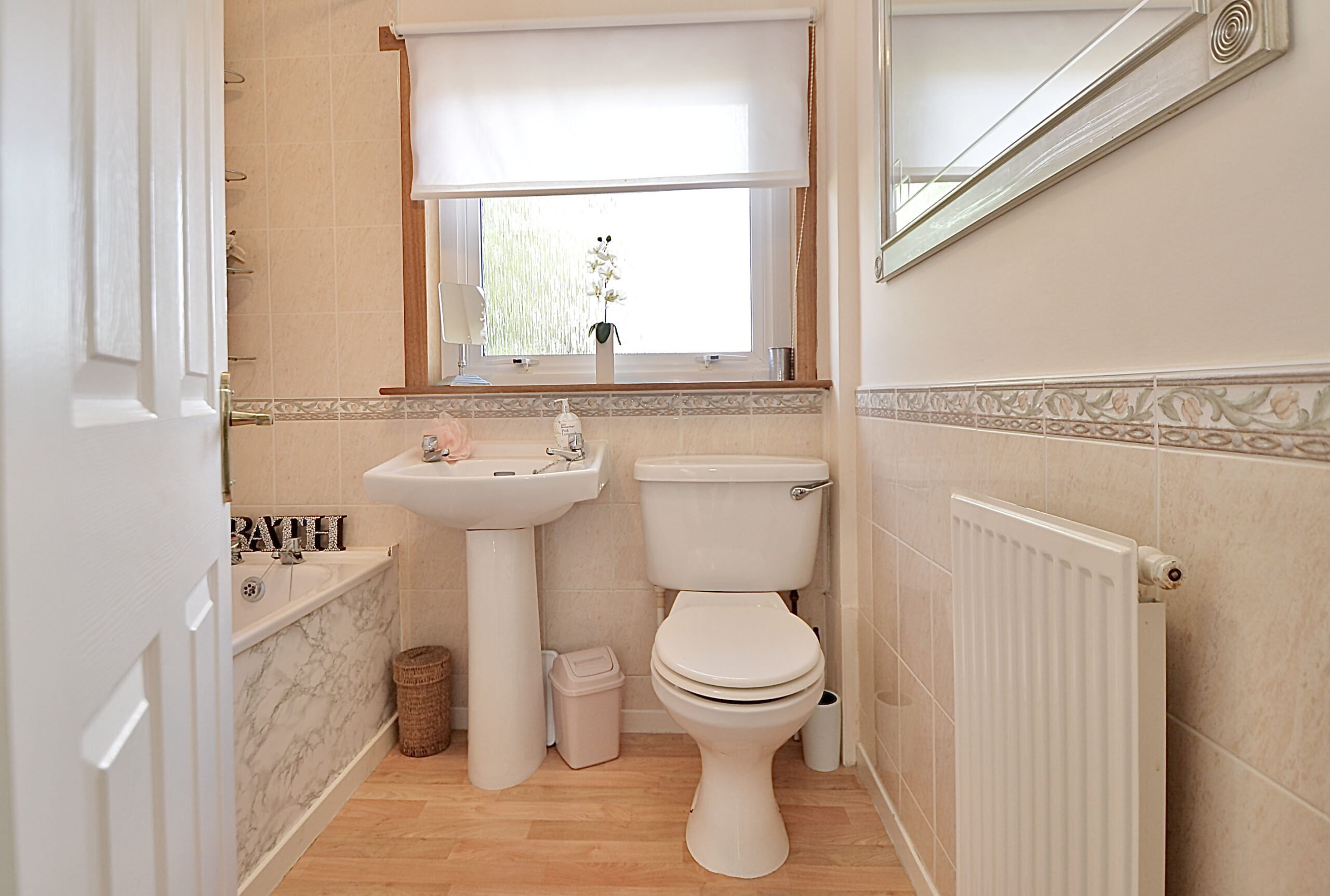 A family bathroom with a three-piece suite and electric shower over the bath completes the upper level.