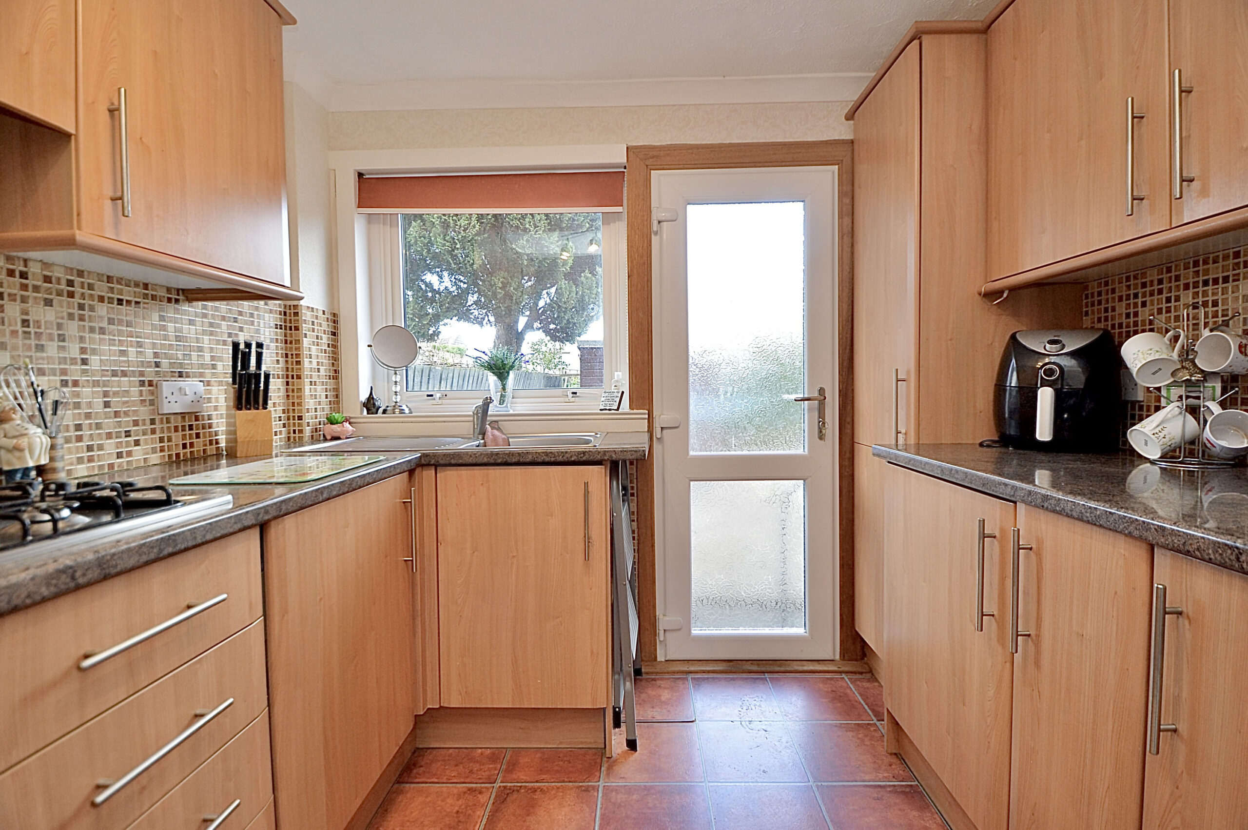 The fitted kitchen offers excellent functionality and direct access to the rear garden.
