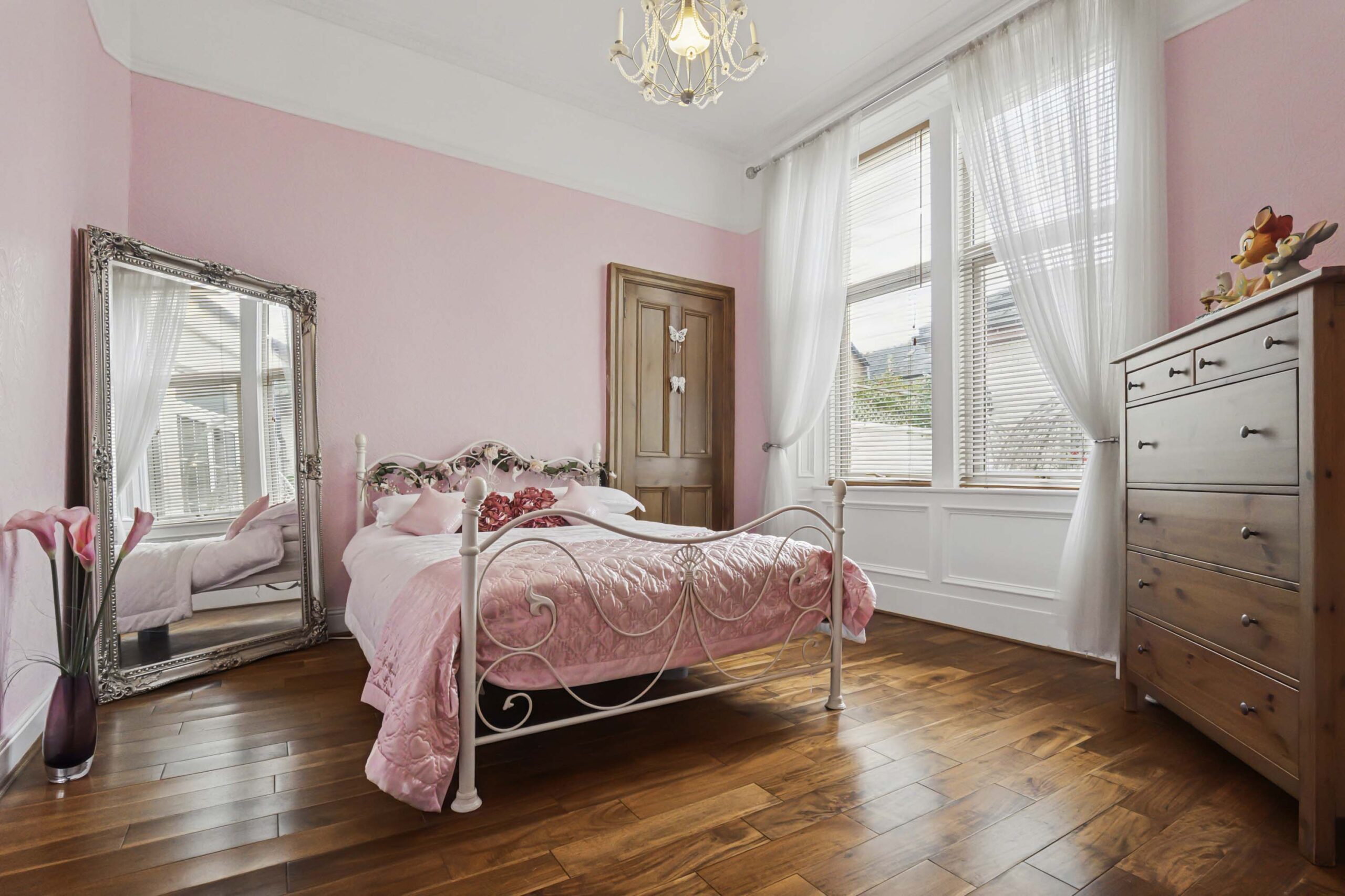 The lovely original staircase guides you to a large and bright central landing, providing access to the remaining bedrooms and the main bathroom. The principal bedroom is a particularly gorgeous room, flooded with light from a large bay window formation and further enhanced by a spacious walk-in wardrobe. Bedroom two is also a very comfortable and sizable double room. The main family bathroom is finished to a contemporary standard and features a three-piece white suite with an over-bath shower and a heated towel rail.