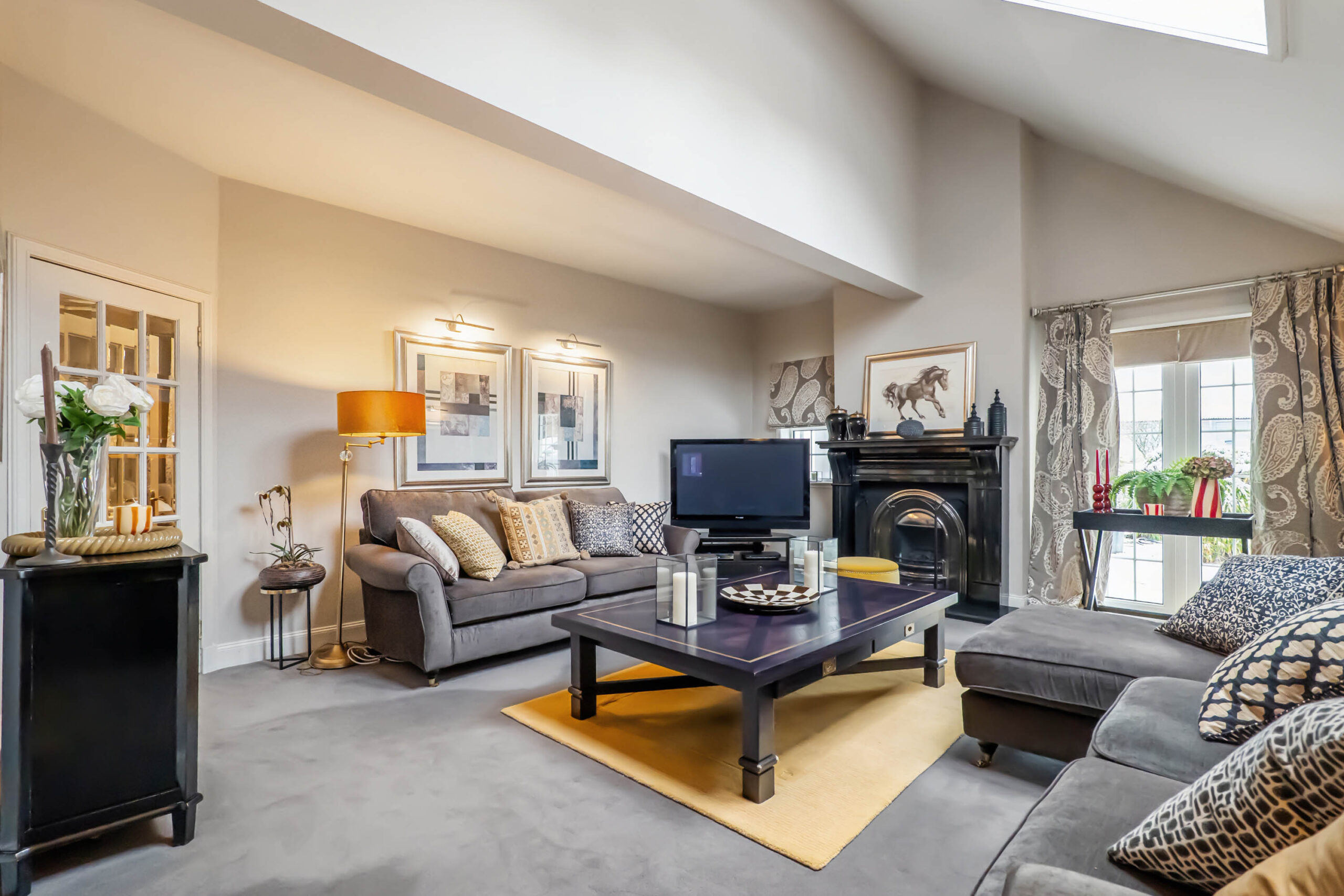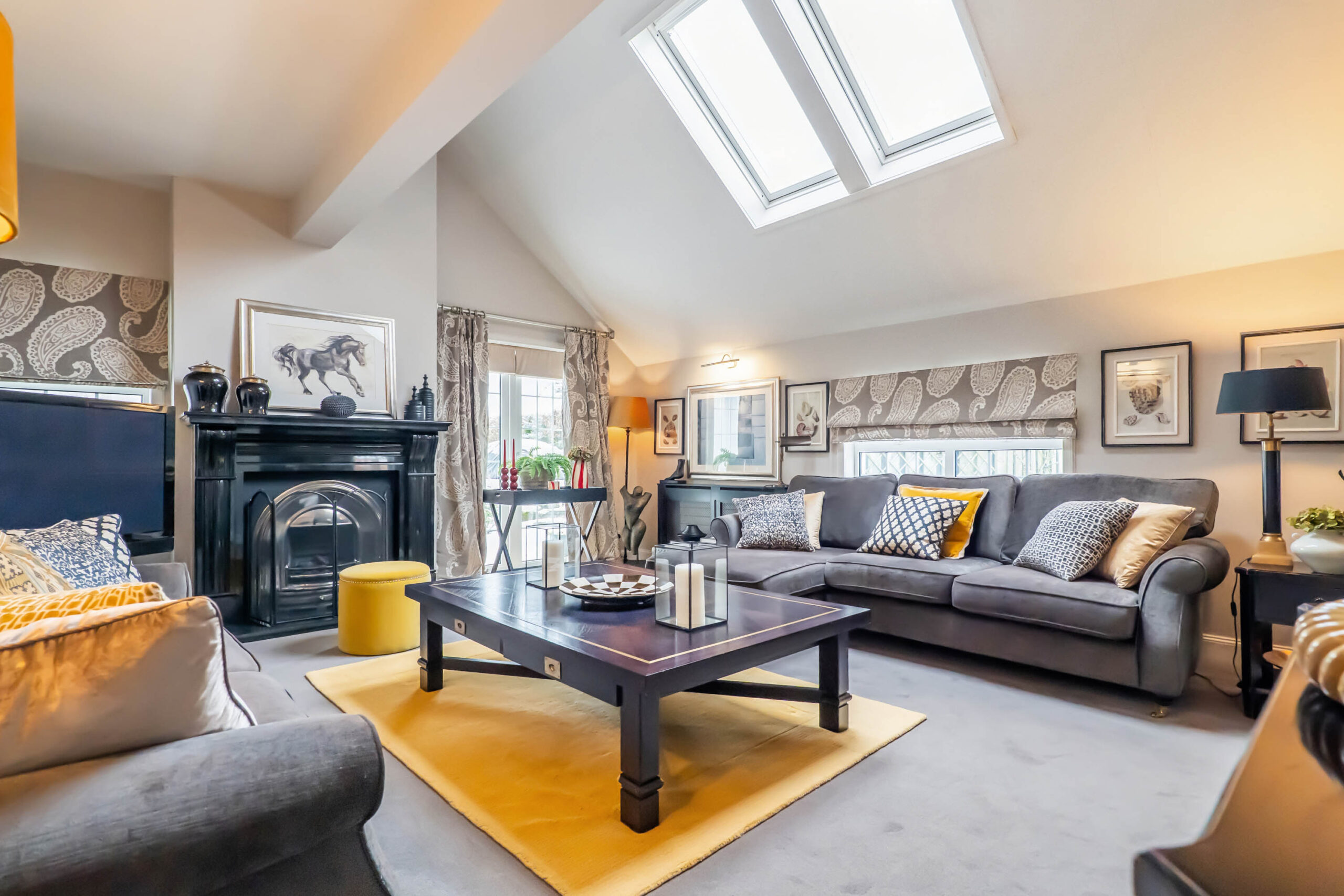 To the right of the entrance hall, on the ground floor, is the real heart of the home, comprised of a formal dining room, adjacent family room, with striking vaulted ceilings and focal point fireplace, and a wonderfully appointed modern kitchen, fitted with a range of quality units, integrated appliances, range cooker and a central island. The kitchen is complemented by a separate utility room, with direct access outside, which is a particularly useful and practical feature given the superb rural setting.