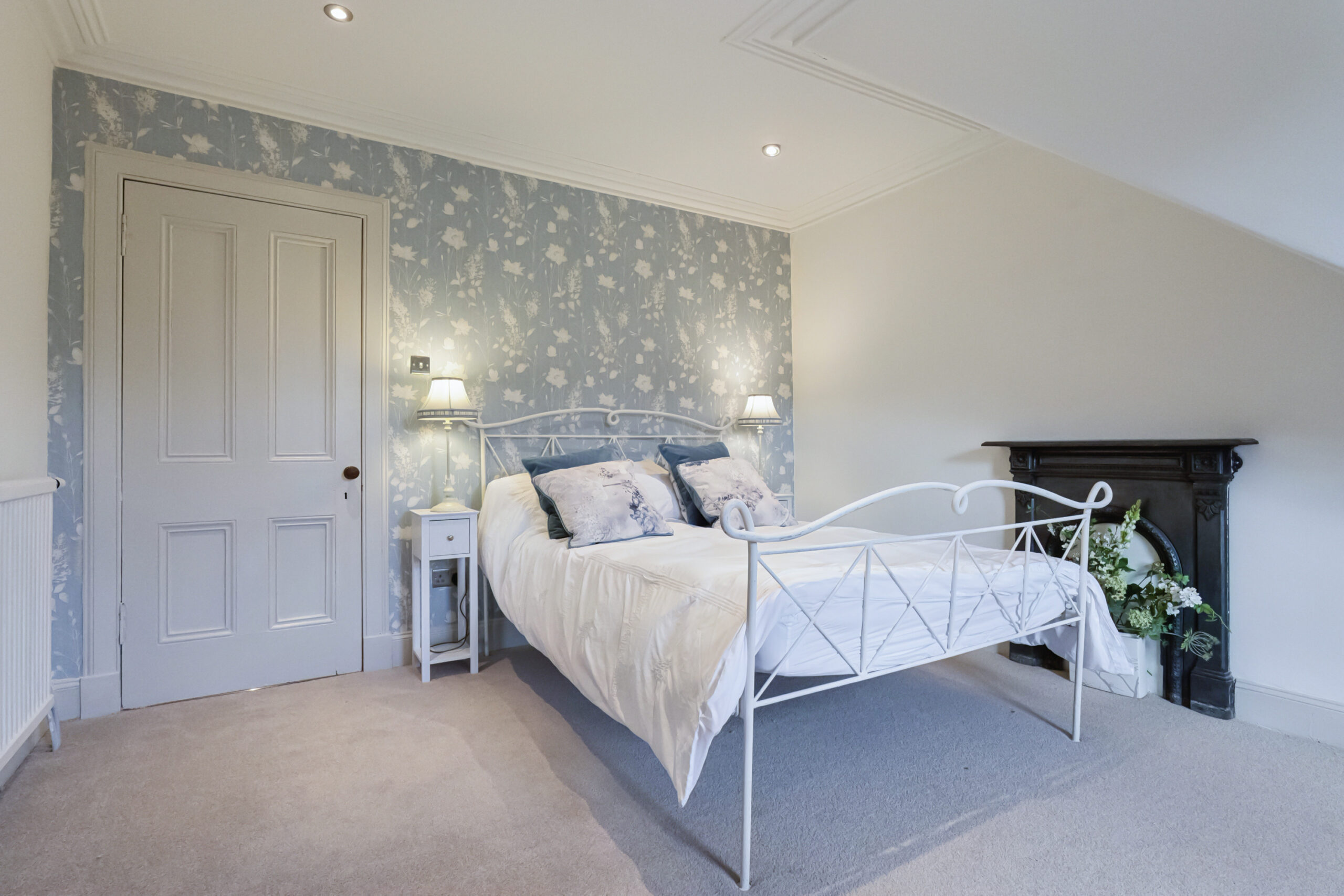 Externally, the property boasts substantial and beautifully maintained grounds. To the front, a sizeable blonde stone chip driveway provides ample off-road parking, sided by a laid lawn garden bordered by mature shrubs. Secure, gated access via a traditional stone wall leads to the impressive rear garden. This substantial, private space features a patio area ideal for alfresco dining, opening onto masses of laid lawn, mature trees, and established hedging. A unique and intriguing stone structure in the garden, once a gardener’s cottage from the 1800s presents a fantastic opportunity for further development, potentially as a home office, studio, or outhouse, subject to the necessary consents.
