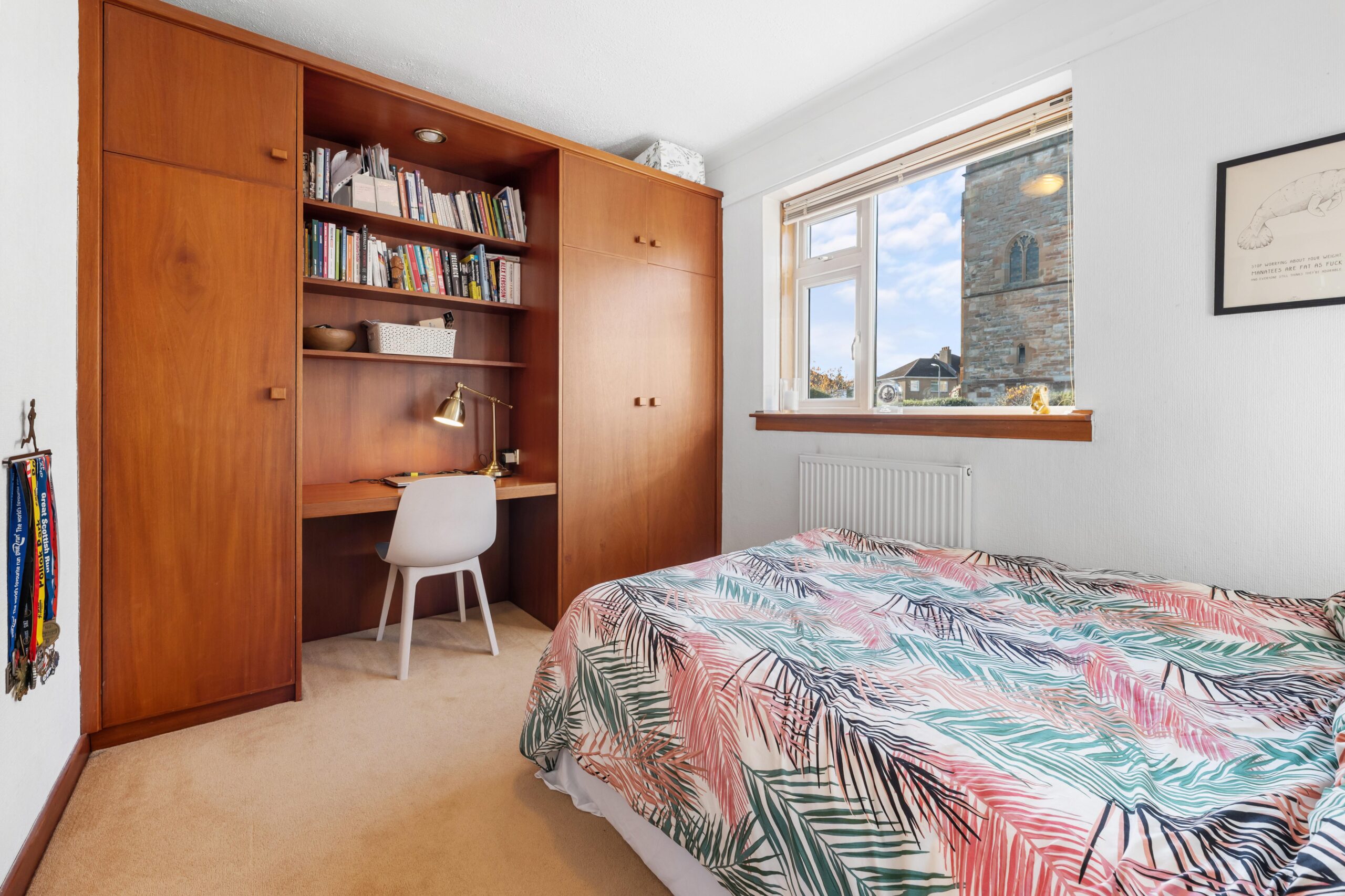 Internally, the property has been well cared for and presents bright, comfortable accommodation, with generous room sizes and a versatile layout, ideal for couples and families alike. The accommodation comprises:- an entrance porch, leading into a welcoming reception hallway, with staircase to the upper floor, a front facing lounge, with a lovely outlook over Cairns Church, and a spacious main bedroom, to the rear, with pleasant outlook over the rear gardens. The fitted kitchen includes a range of wall and base-mounted units, with space for appliances, and there is an additional bedroom, or home office located on the ground floor. Completing the lower accommodation, there is a well-appointed family bathroom, with a white suite and over bath shower.  Upstairs, there are two further bedrooms and a particularly useful walk-in storage room, off the landing, offering potential to be converted into an additional bathroom, if desired.