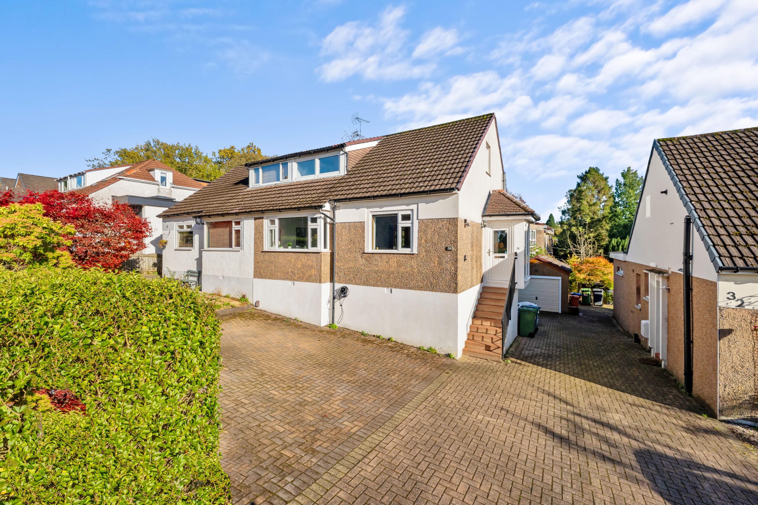 Attractive and well maintained three of four bedroom chalet style semi detached villa, occuping an elevated position and offering bright, adaptable accommodation, a detached garage and beatifully private, professionally landscaped gardens, including a large, timber garden room, conveniently located for access to Milngavie village centre and railway station.