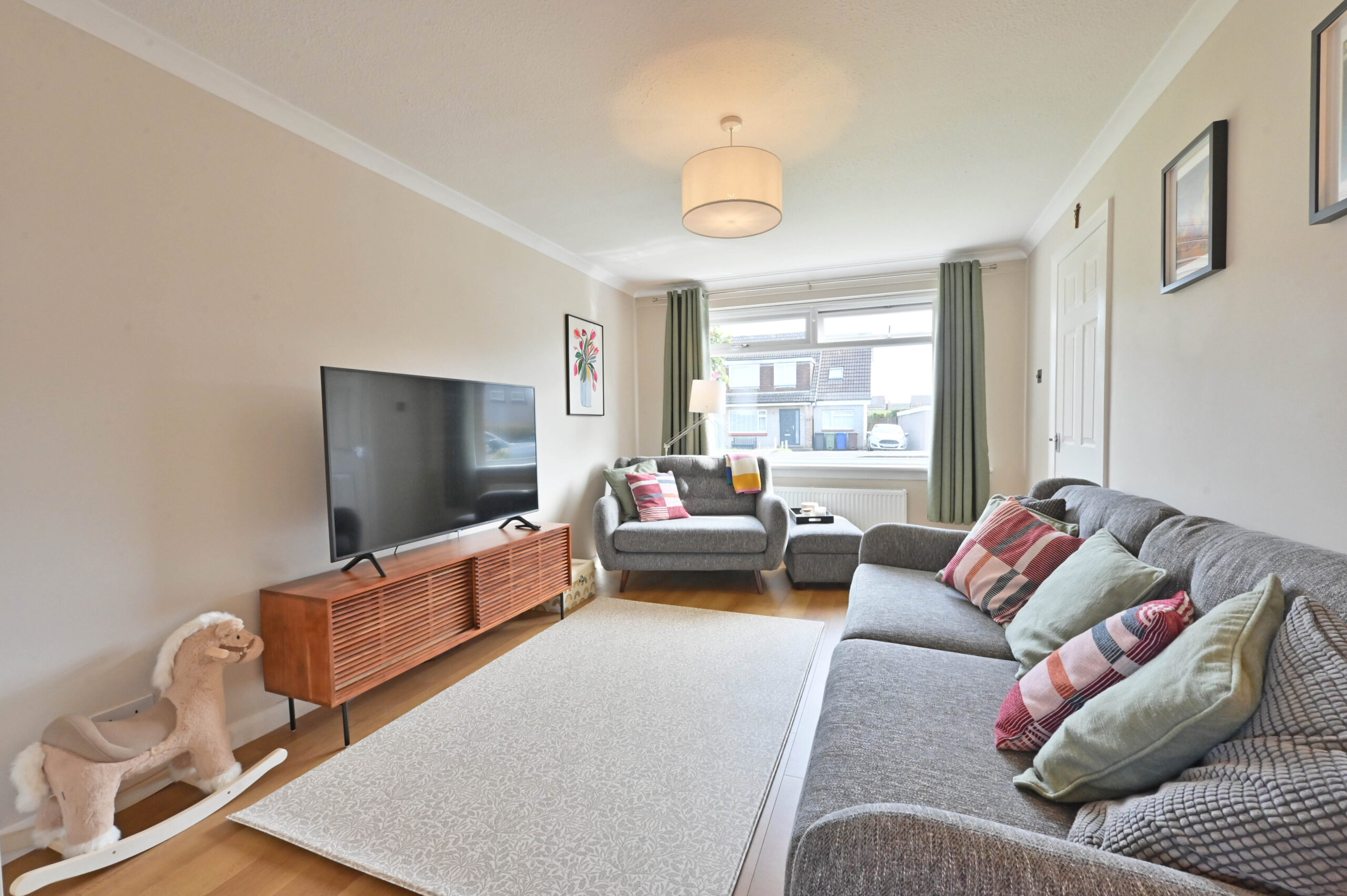 A beautifully presented two-bedroom semi-detached home on the ever-popular Cameron Avenue in Bishopton, offering versatile living spaces and a wonderful sense of light and flow.