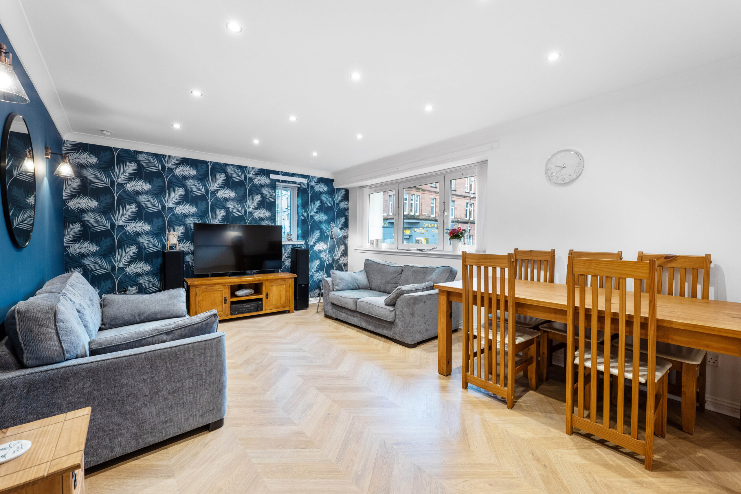 140 Deanston Drive is nearby local shops and amenities in Shawlands where restaurants, bars, coffee houses and delicatessens can be found. More extensive facilities are available at the Morrison store at Crossmyloof, the Marks & Spencer store at Queens Park or the Silverburn shopping centre at Pollok. Queens Park provides nature walks, football pitches and tennis courts as well as a fortnightly farmers market. Crossmyloof and Pollokshaws East train stations are close by and frequent bus routes are available on Kilmarnock Road.