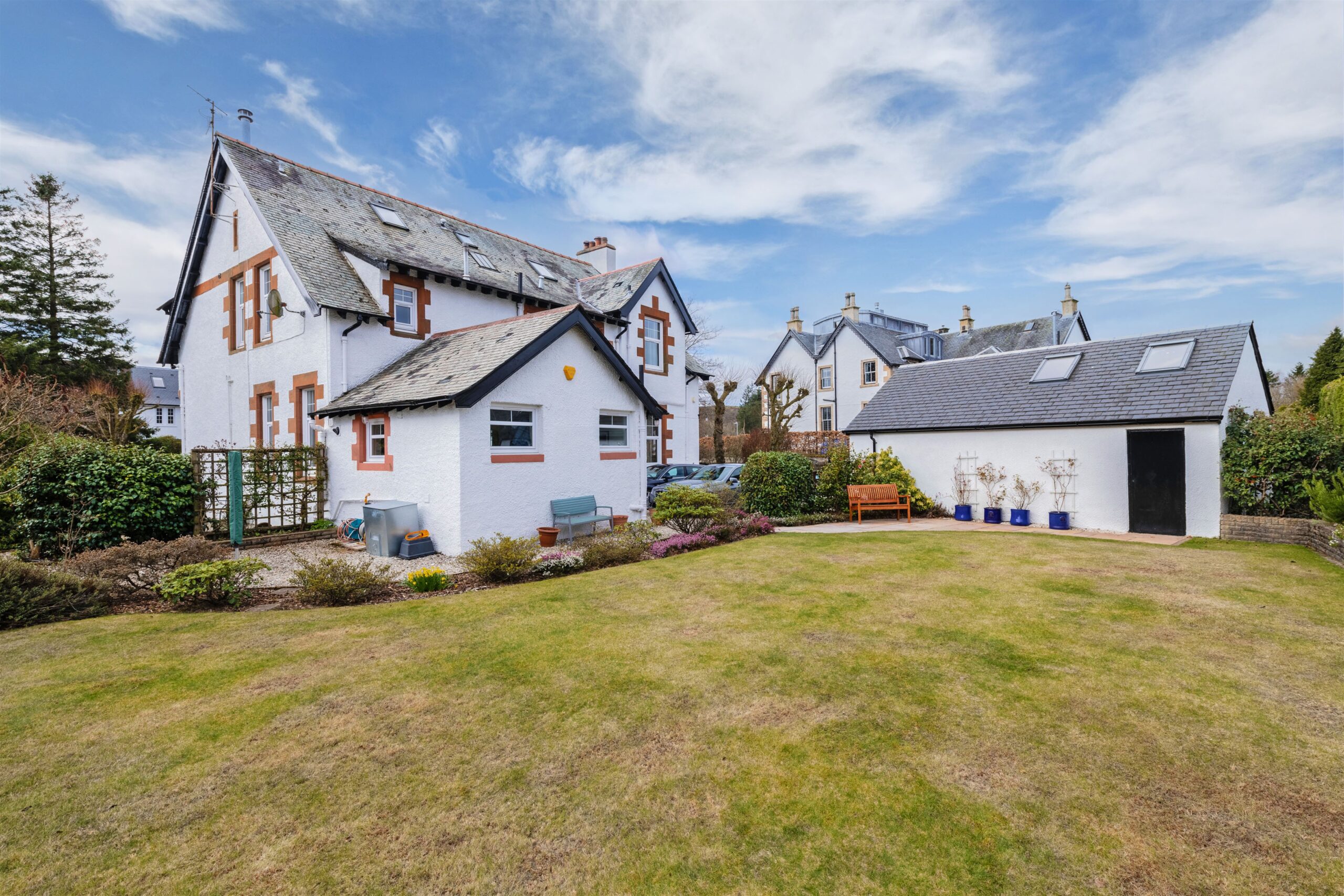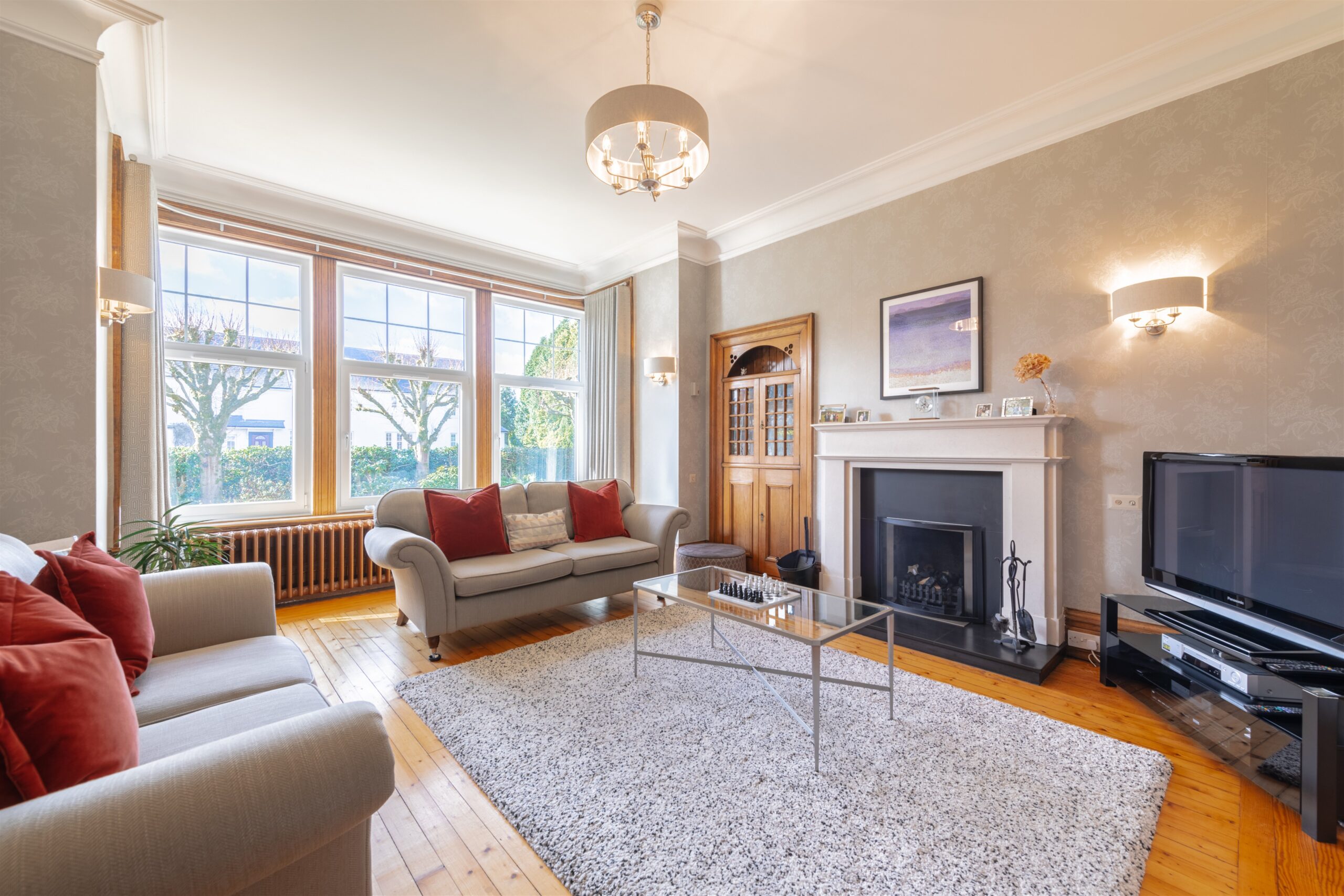 ‘Dunyveg’ is an impressive traditional home positioned in mature gardens close to Birkmyre Park in the beautiful village of Kilmacolm. There is an excellent range of local shops, good schooling, leisure and sporting facilities. The village is surrounded by attractive countryside with good local walks, access to Clyde Muirshiel Regional Park and the Clyde Coast.