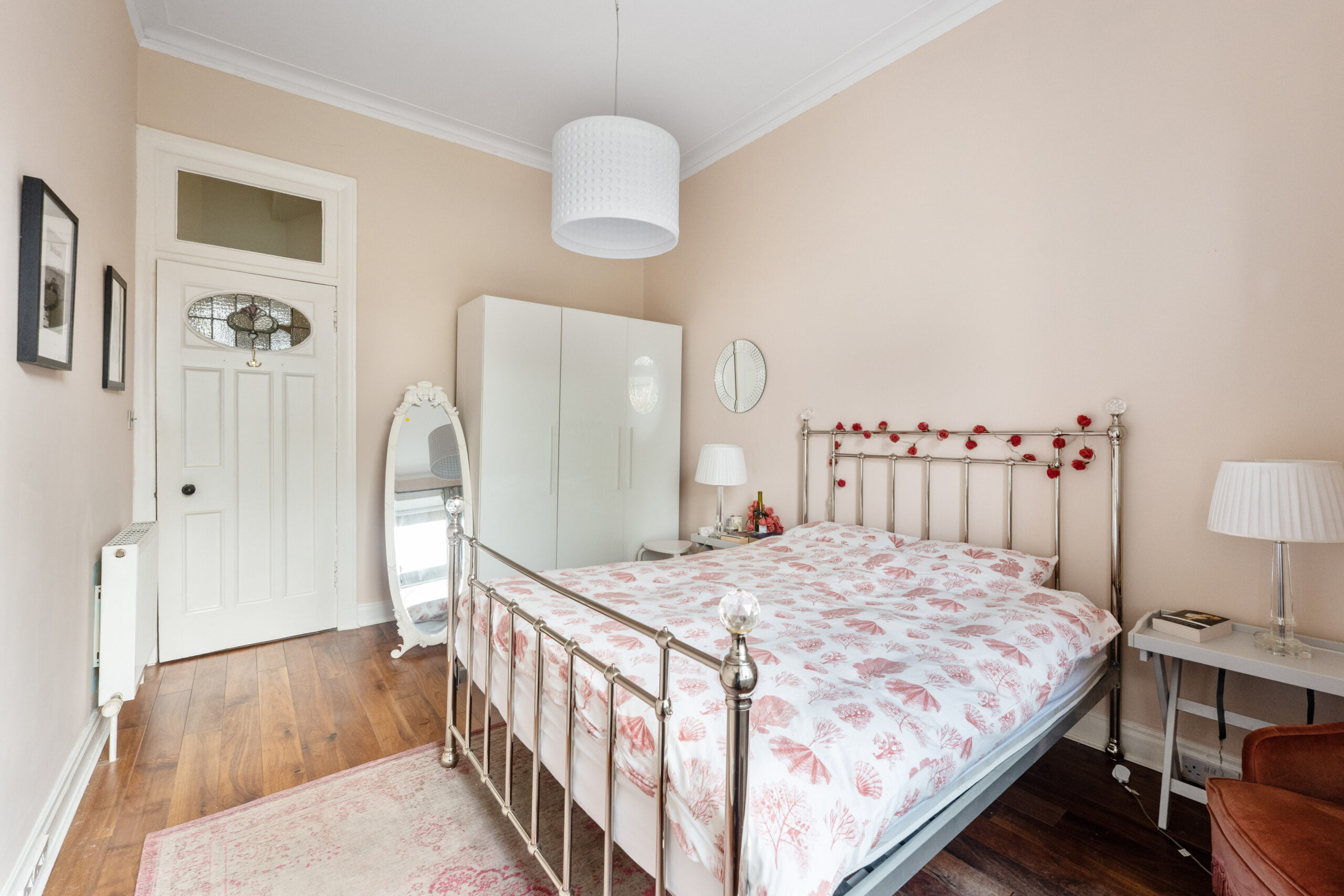The property has gas central heating, double glazed windows to the side and rear and an audio door entry system. Our client has been careful to preserve the features inherent within a home of this age such as stained glass, detailed ceiling plasterwork, picture rails and door architraves. A smart rear garden is shared with the five other properties in the building including a bin storage area adjacent to a lane beside the terrace. The maintenance of the building is managed by Redpath Bruce of 152 West Regent Street in Glasgow.
