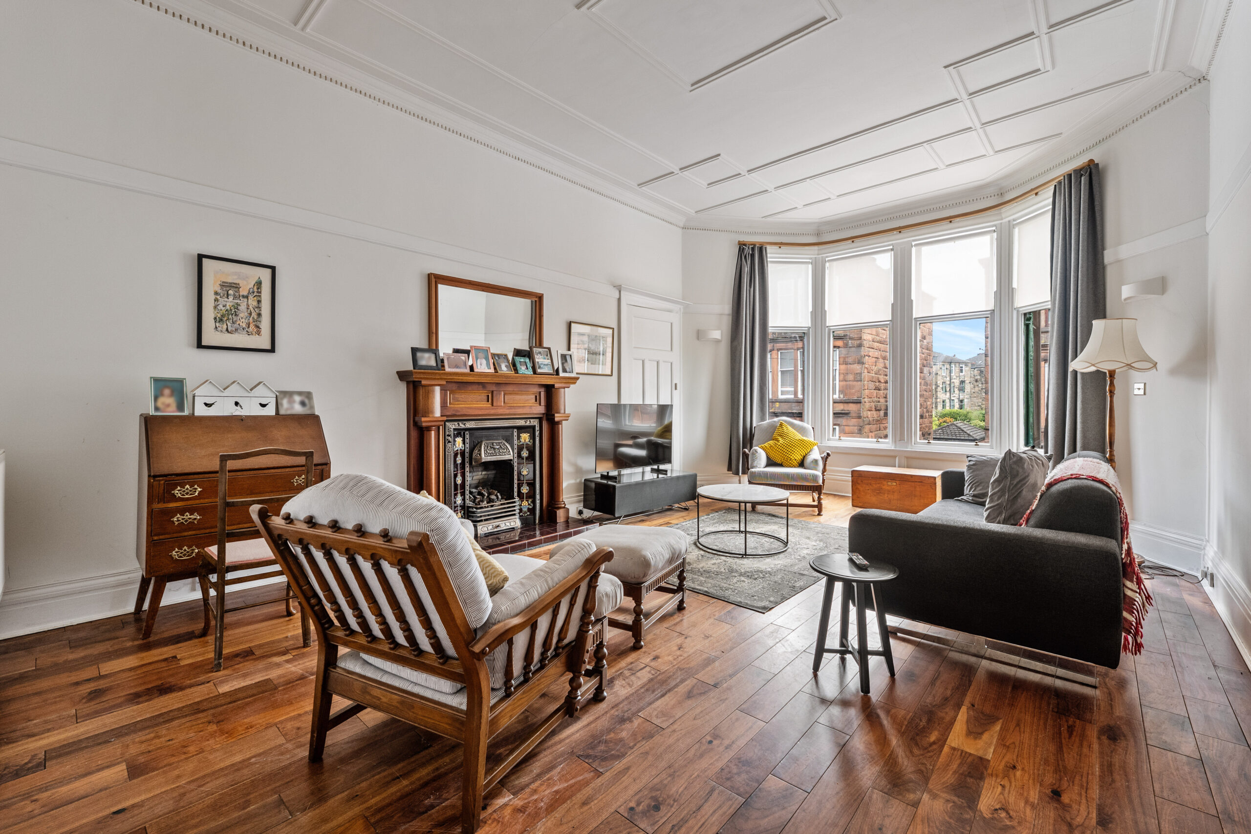 Occupying a bright first floor position in an attractive stone terrace, this commodious home is found in the East Pollokshields conservation area. The property retains some striking traditional features sympathetically combined with modern fittings.