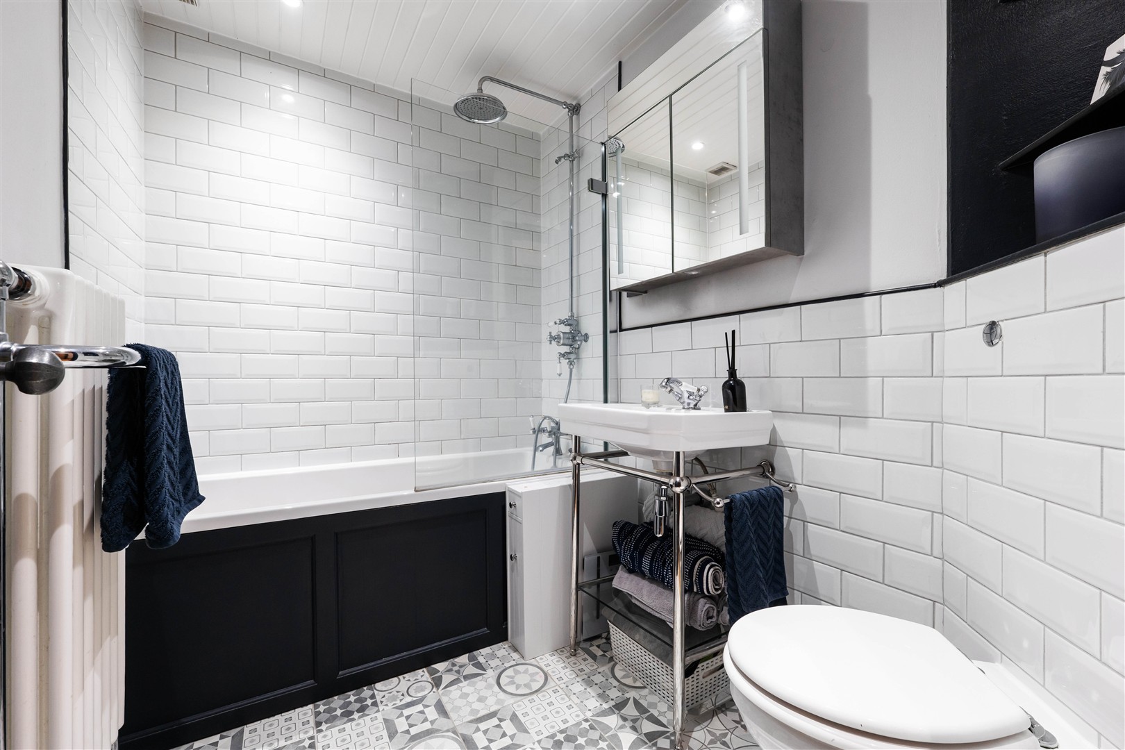 To the rear, the property offers two well-proportioned double bedrooms, providing a calm and private retreat away from the main living area. A cool, design-led bathroom adds a boutique hotel feel, while herringbone flooring flows throughout, enhancing the sense of quality and cohesion.