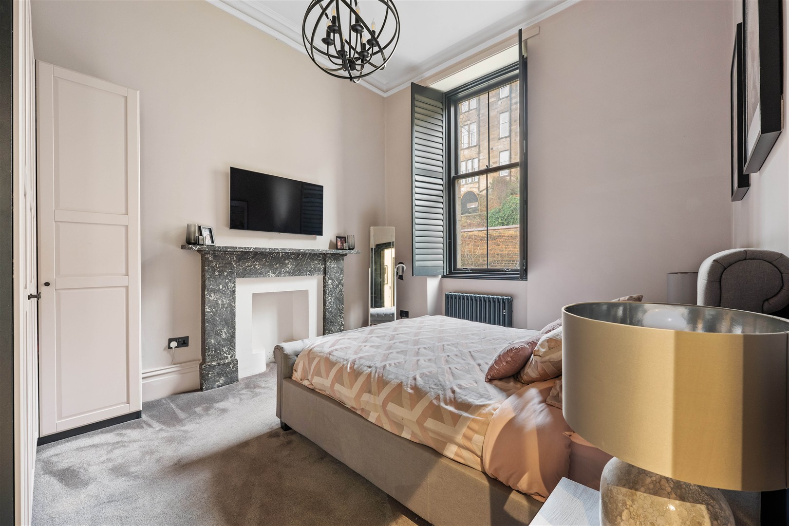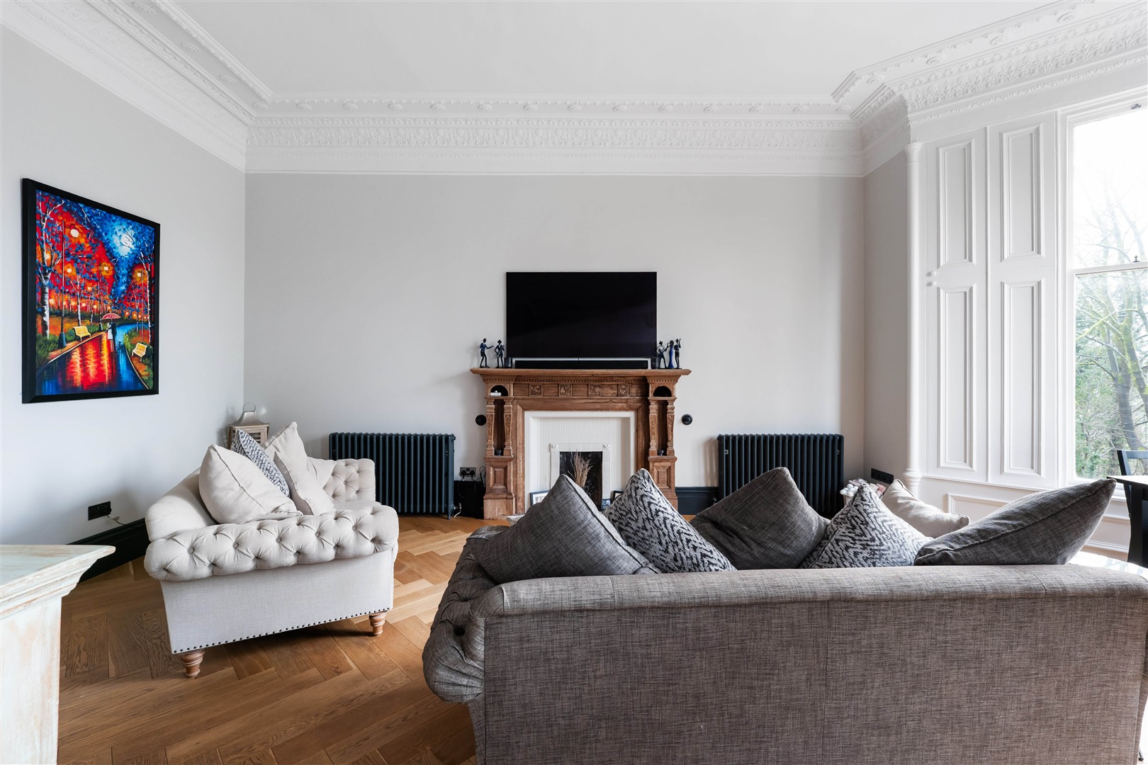 A beautifully styled two-bedroom first-floor drawing room conversion set within an elegant blonde sandstone townhouse in North Kelvinside. This exceptional home blends period charm with contemporary design, featuring a stunning open-plan kitchen and lounge within the former drawing room, creating a bright and sociable living space with enviable uninterrupted views over the Kelvin Walkway.