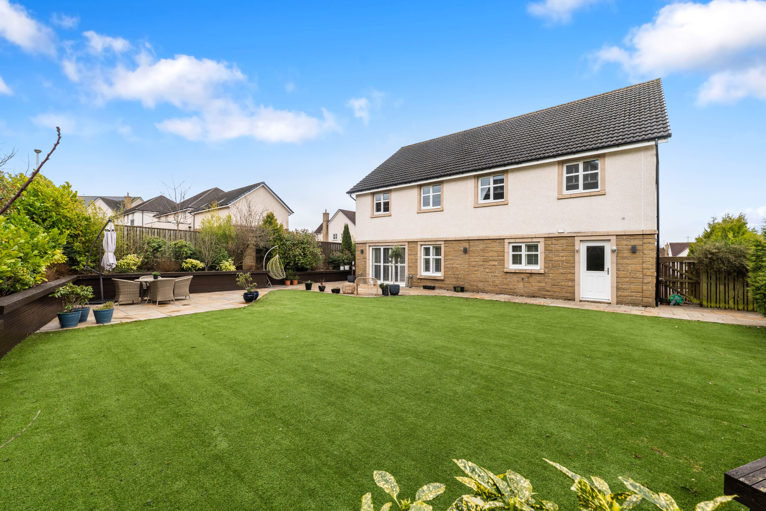 An exceptional detached family residence positioned within one of Thorntonhall’s most prestigious residential developments. This substantial Cala-built home extends to around 2,840 square feet across two beautifully balanced levels, offering generous living space, refined finishes, and a wonderful sense of privacy. With open aspects to the front and an elegant interior specification throughout, the property blends expansive public rooms with versatile family areas and well proportioned bedrooms to create an outstanding modern home.