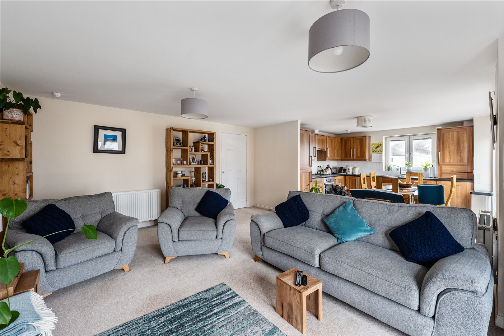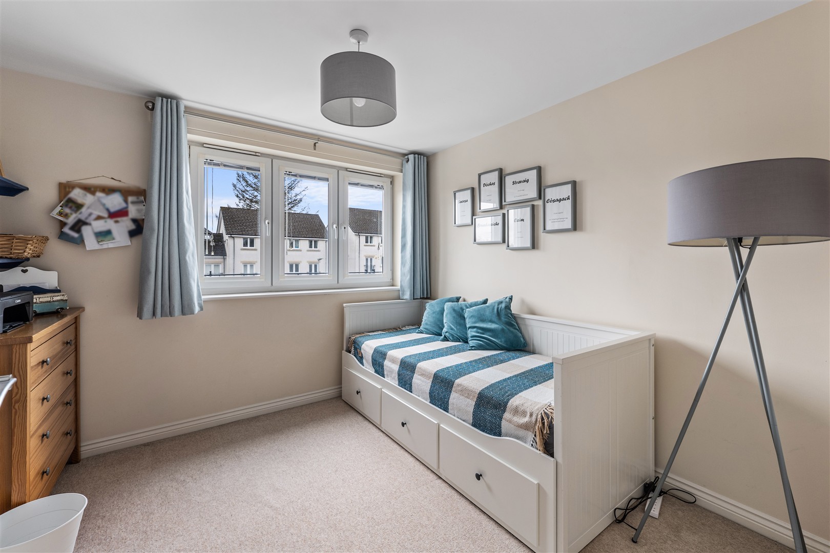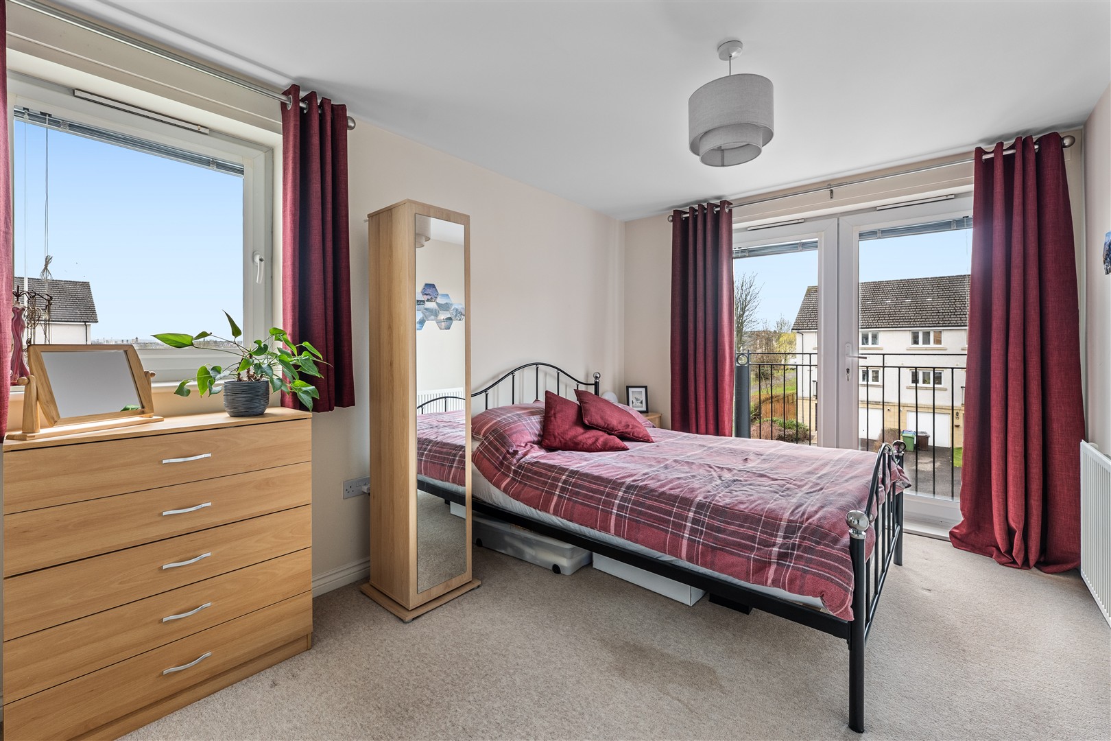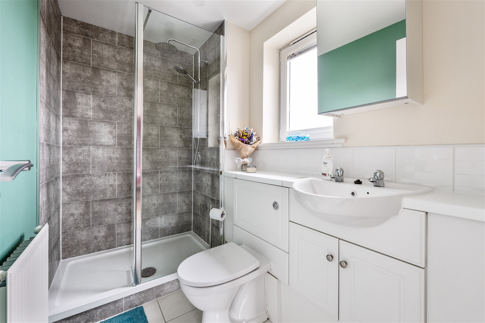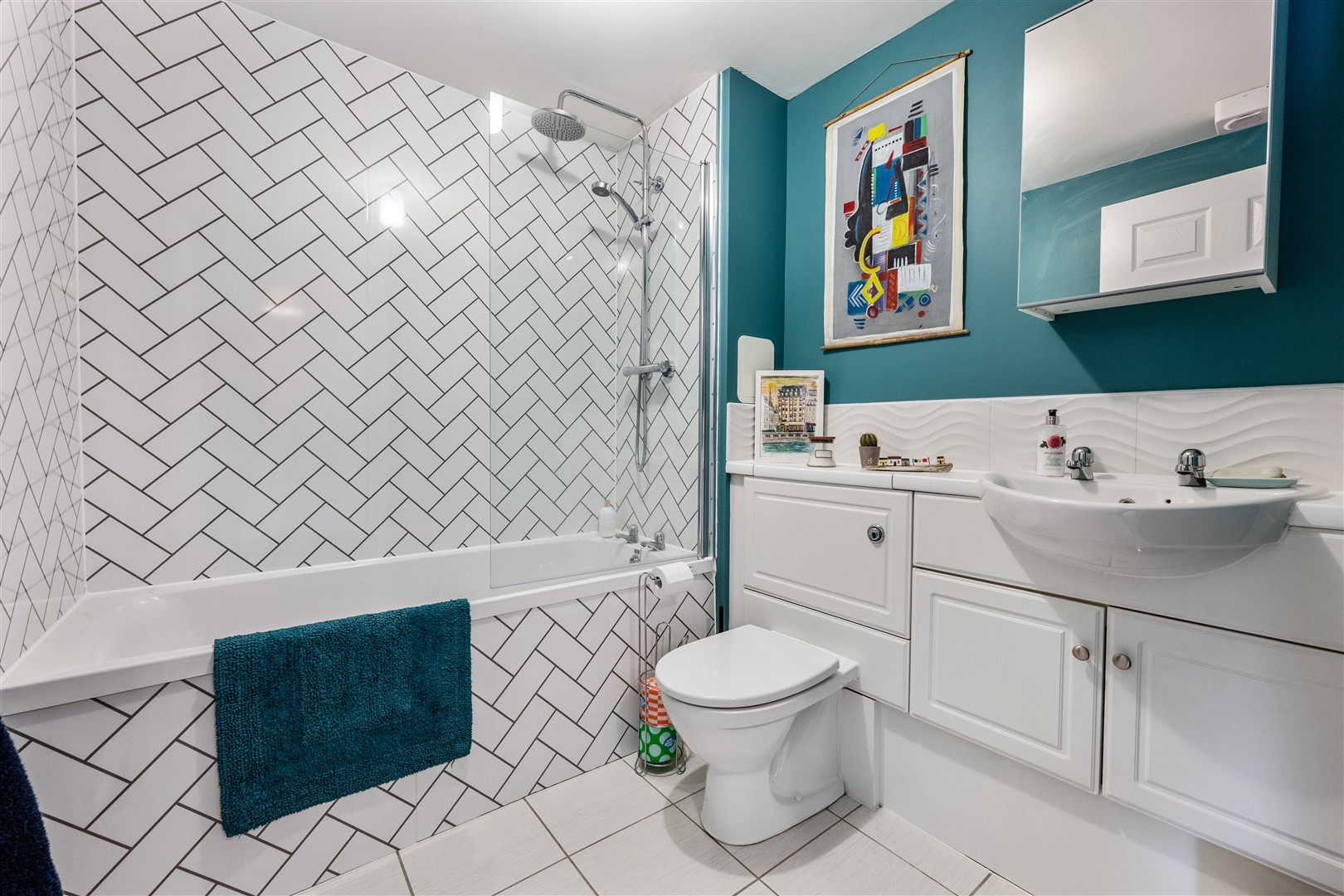 There are two generous double bedrooms, with the principal bedroom further enhanced by built-in wardrobes, a stylish en-suite shower room, and open aspects across the development. A well-appointed family bathroom with over-bath shower completes the accommodation.