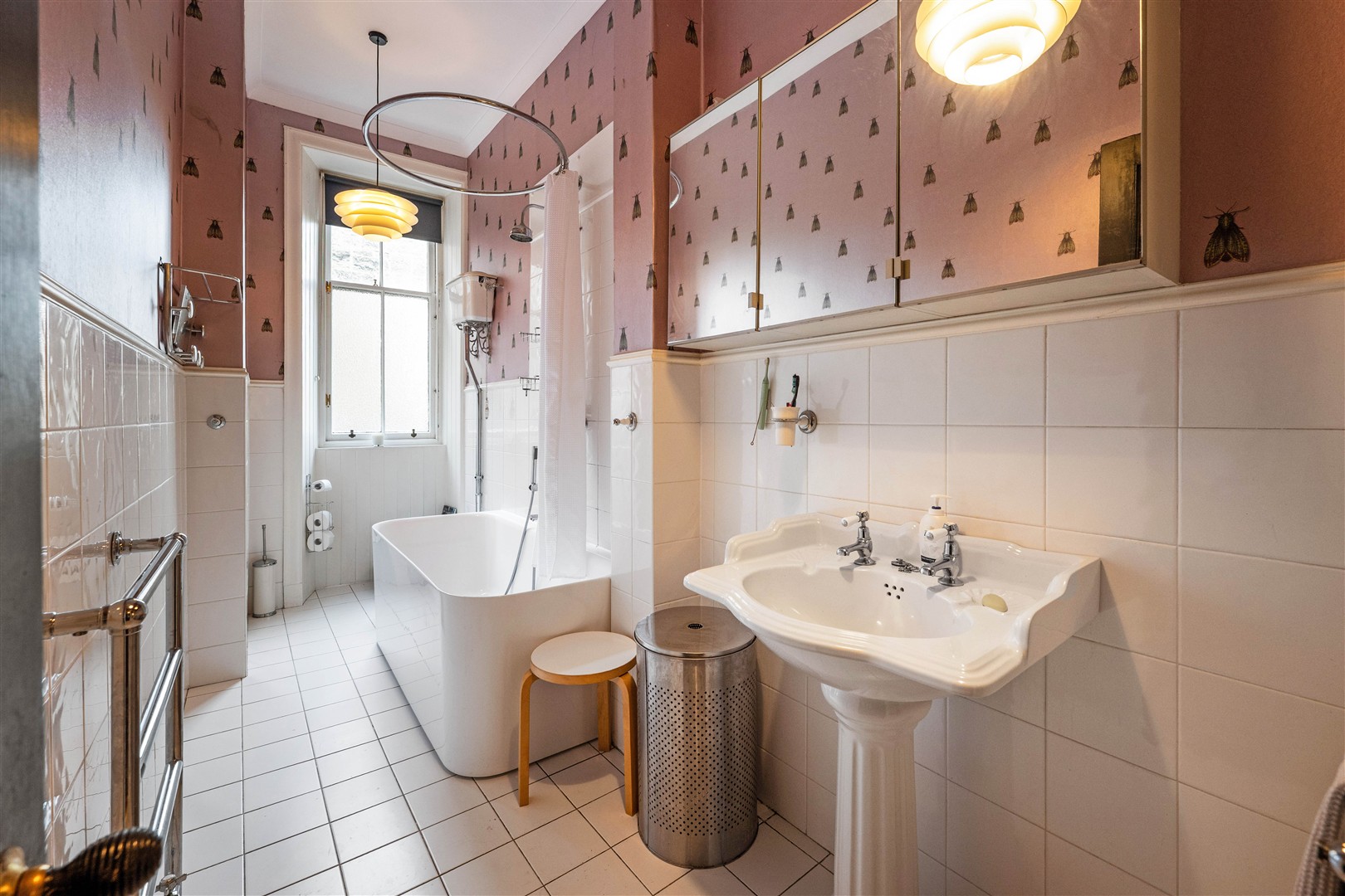 2/1 8 Lauderdale Gardens is an exceptional three-bedroom, second-floor tenement flat situated in the heart of Hyndland, offering rarity of open aspects to the front and rear of the building, in this peaceful cul de sac and further boasting a double fronted bay windowed formation.