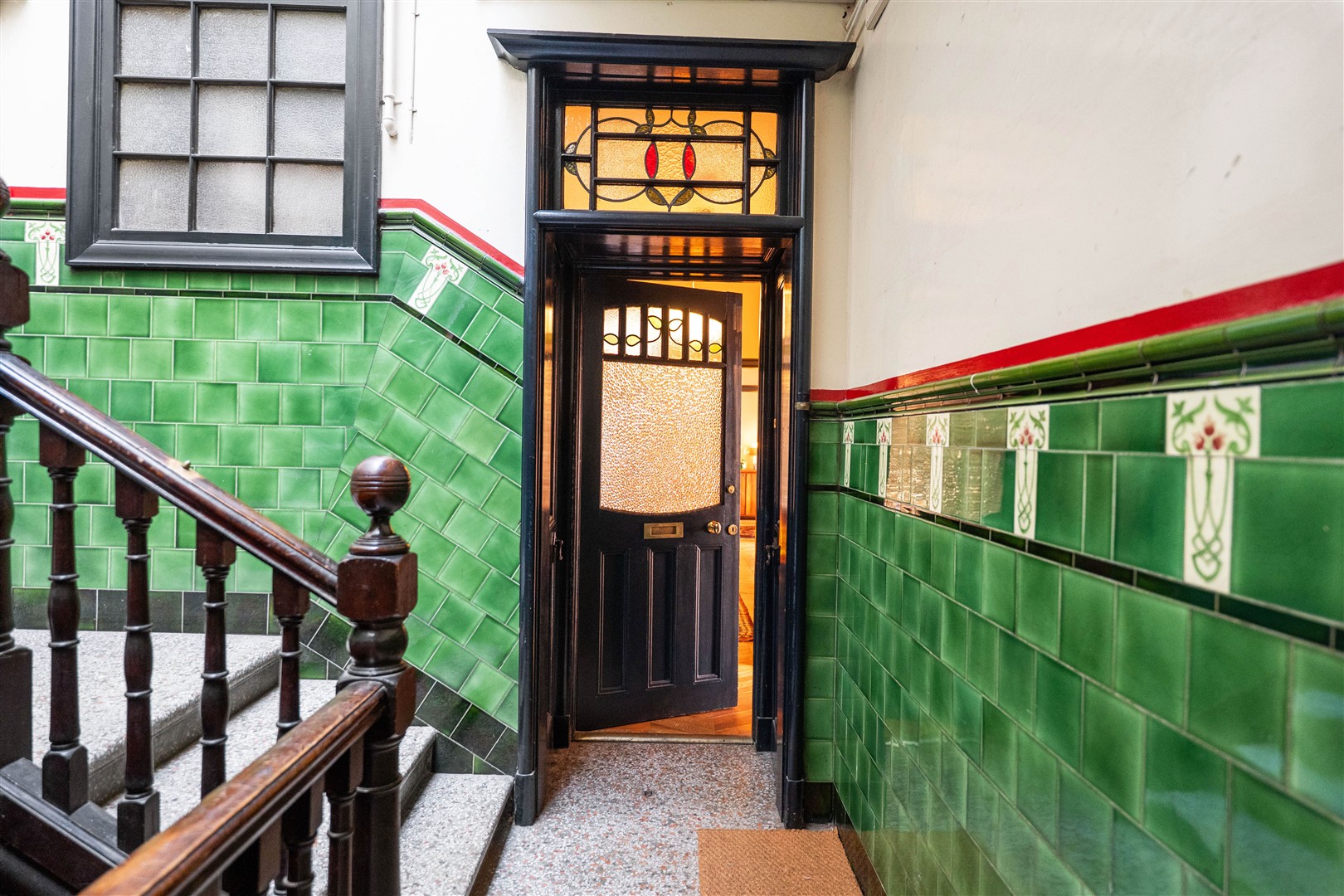 The building is accessed via a secure door entry system into a beautifully maintained communal close with original tiling, access to the well-maintained communal rear gardens and original staircase leading to the upper levels.