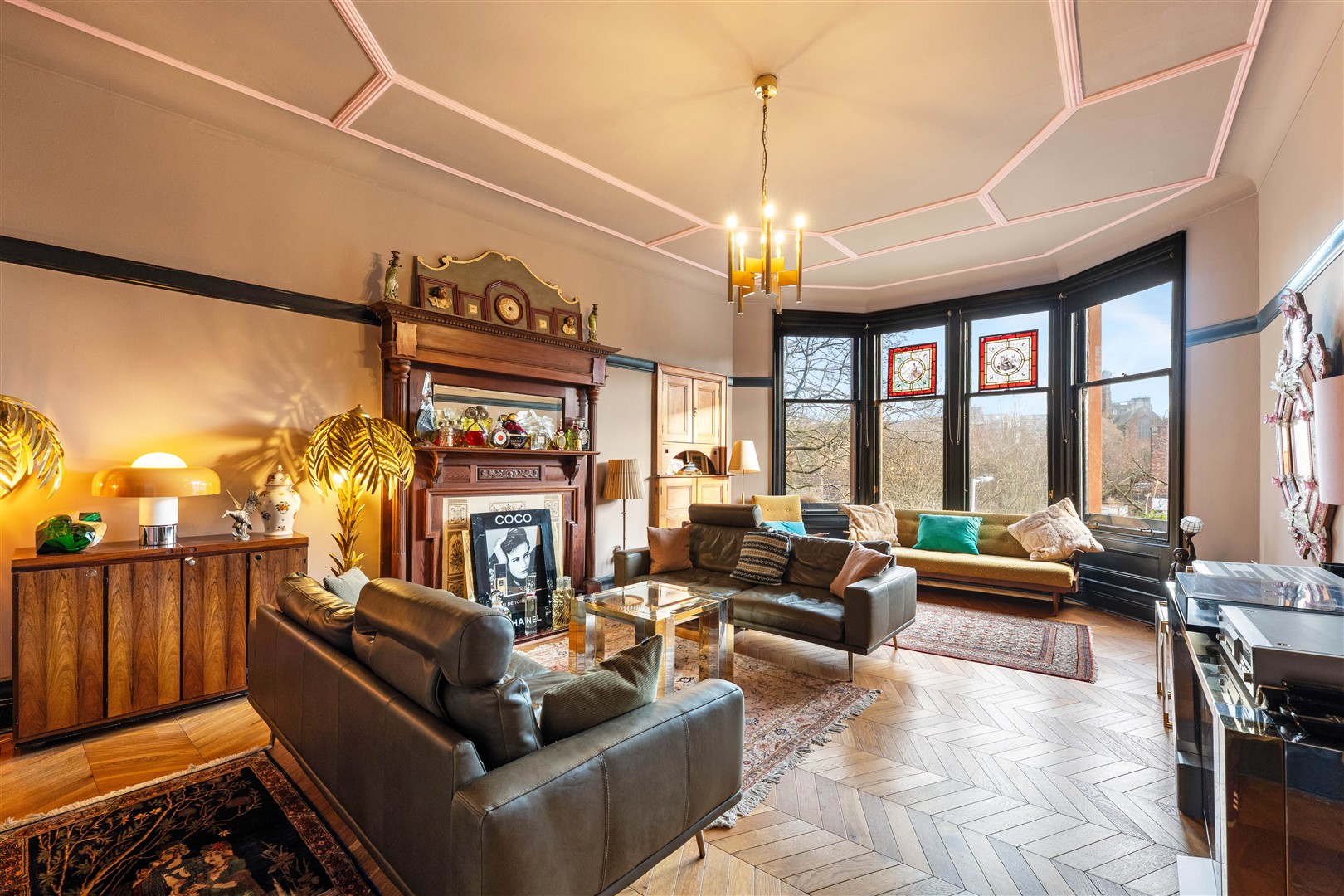 A striking, three bedroom double fronted tenement apartment, located in the heart of Hyndland.